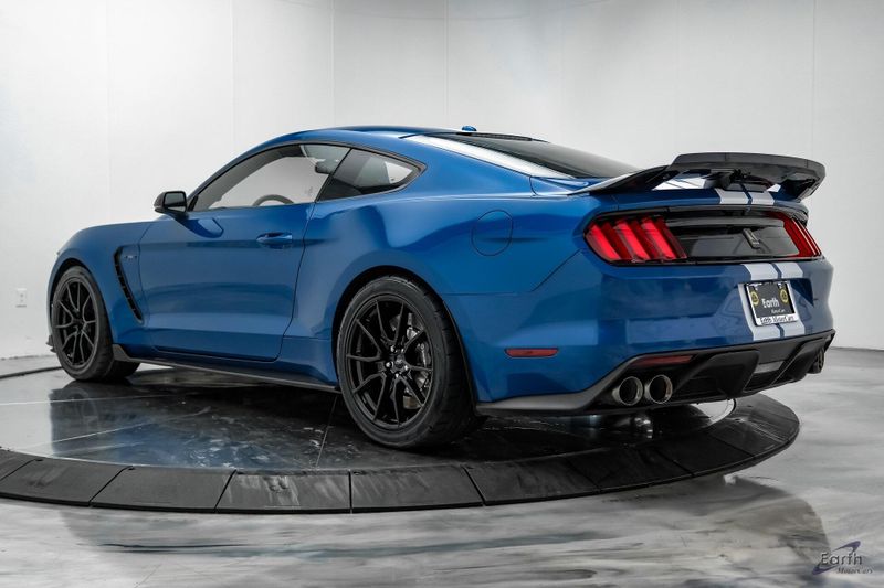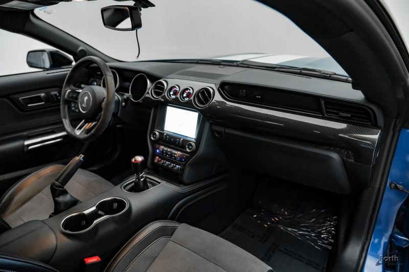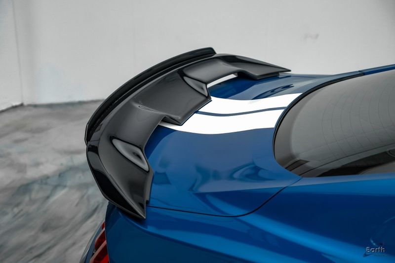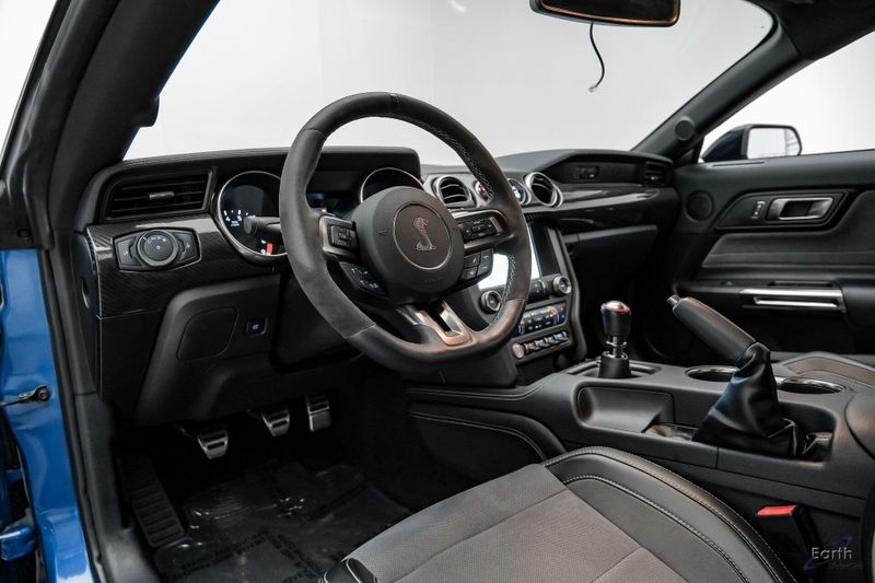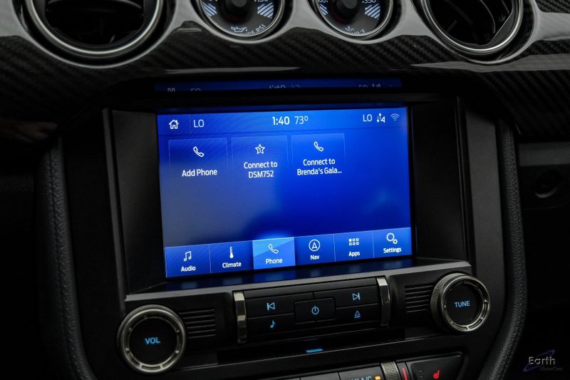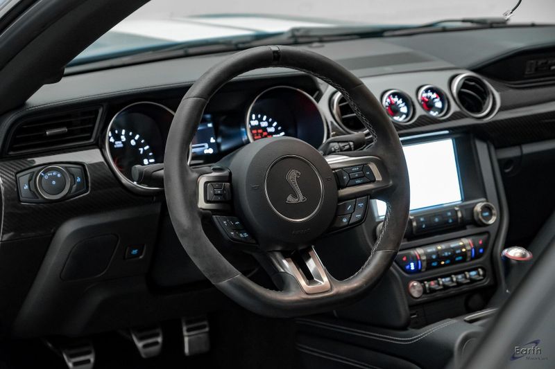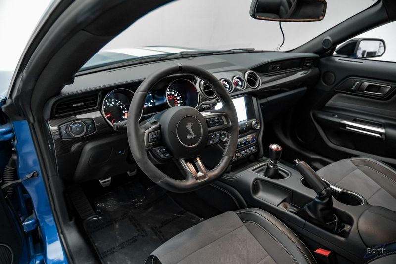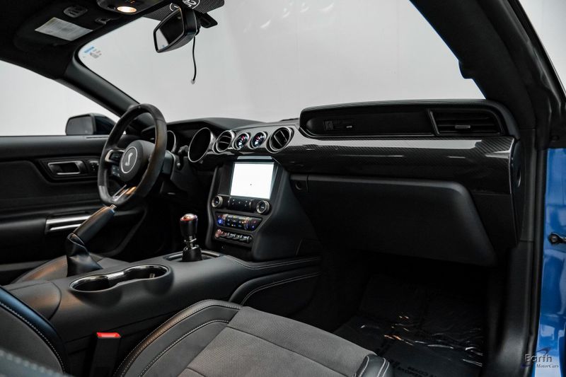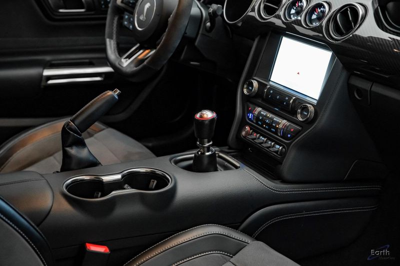 Earth MotorCars is Proud to offer this amazing: 2020 Ford Mustang Shelby GT350 Tech Package Exposed Carbon Fiber Leather CARFAX One-Owner. LEATHER-TRIMMED SPORT SEATS, 4-Wheel Disc Brakes, ABS brakes, Air Conditioning, AM/FM Stereo, Auto-dimming Rear-View mirror, Automatic temperature control, BLIS Blind Spot Information System, Bumpers: body-color, Delay-off headlights, Driver vanity mirror, Dual front impact airbags, Dual front side impact airbags, Exposed Carbon Fiber Instrument Panel, Exterior Parking Camera Rear, Front Bucket Seats, Front Center Armrest, Fully automatic headlights, GT350 Equipment Group 900A, Heated Mirrors, Illuminated entry, Navigation System, Outside temperature display, Passenger vanity mirror, Radio: B&O Sound System by Bang & Olufsen, Security system, SiriusXM Radio, Speed control, Speed-Sensitive Wipers, Spoiler, Steering wheel mounted audio controls, SYNC 3 Communications & Entertainment System, Tachometer, Technology Package, Telescoping steering wheel, Traction control, Trip computer, Variably intermittent wipers, Vinyl Over-the-Top Racing Stripe, Voice-Activated Touch-Screen Navigation System, Wheels: 19'' x 10.5'' Fr/19'' x 11'' Rr Ebony Black.