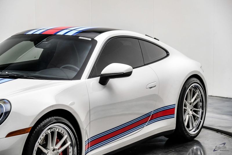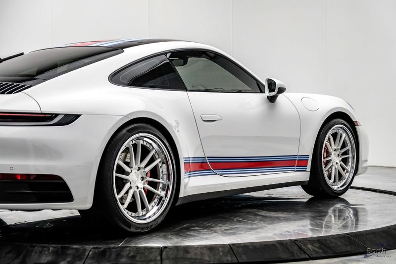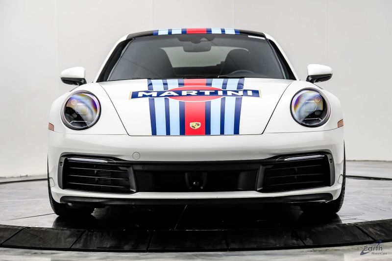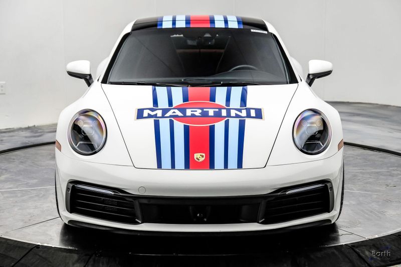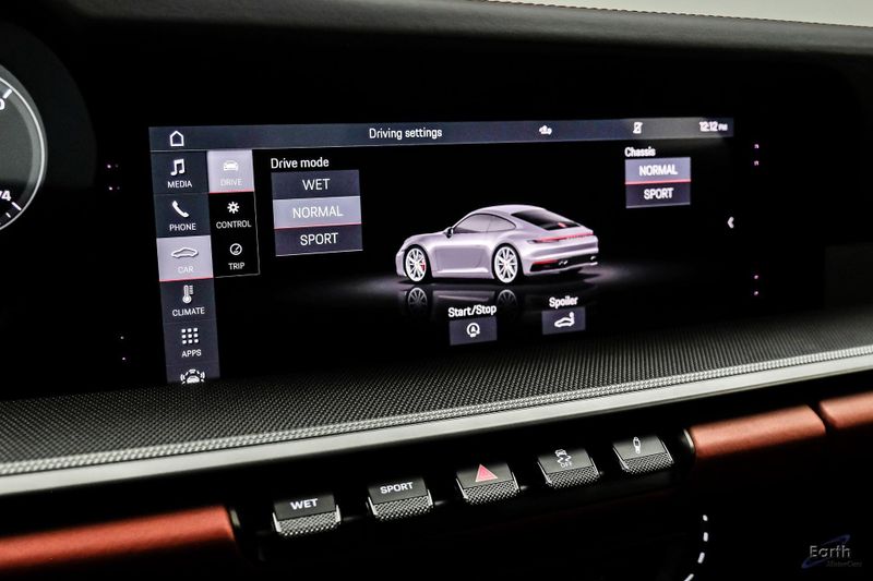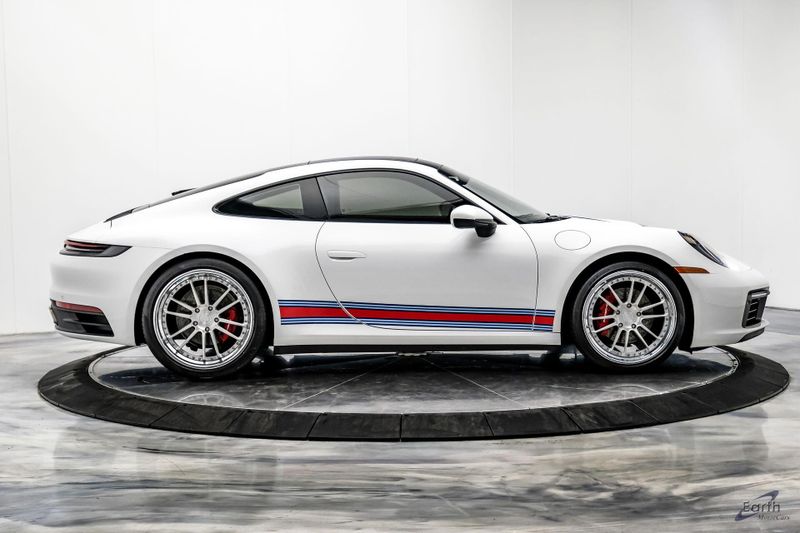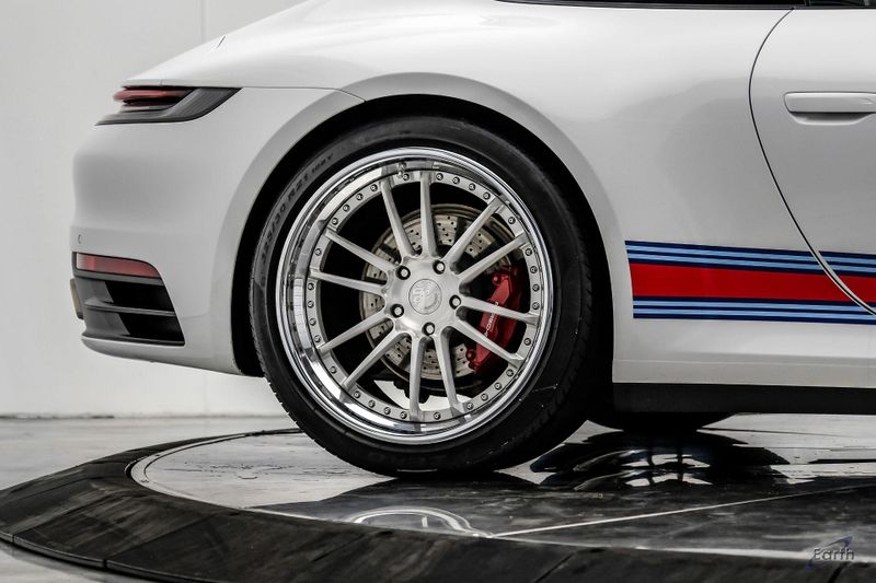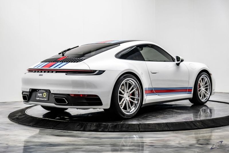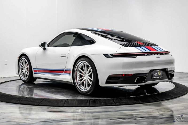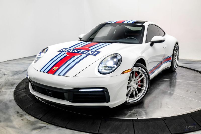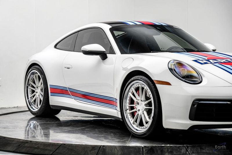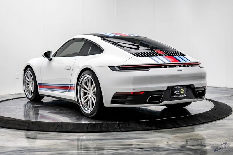 Earth MotorCars is Proud to offer this amazing: 2020 Porsche 911 Carrera Martini Package Custom Wheels, 4-Wheel Disc Brakes, 8 Speakers, 911 Logo in High Gloss Black, ABS brakes, Adaptive Cruise Control, Adaptive suspension, Air Conditioning, Alloy wheels, Apple CarPlay, Auto-dimming door mirrors, Auto-dimming Rear-View mirror, Automatic temperature control, BOSE Surround Sound System, Comfort Access, Driver door bin, Driver vanity mirror, Electric Slide/Tilt Sunroof in Glass, Electronic Stability Control, Exterior Parking Camera Rear, Four wheel independent suspension, Front Center Armrest, Front reading lights, Garage door transmitter: HomeLink, Heated door mirrors, Heated front seats, Illuminated entry, Lane Keep Assist (LKA) w/Traffic Sign Recognition, Light Design Package, Navigation system: Porsche Communication Management (PCM), Outside temperature display, Overhead console, Partial Leather Seat Trim, Passenger door bin, Passenger vanity mirror, Porsche Communication Management, Porsche Crest on Headrests, Porsche Dynamic Light System Plus (PDLS+), Power door mirrors, Power driver seat, Power passenger seat, Premium Package, Rear fog lights, Seat Ventilation, Security system, Spoiler, Sport steering wheel, Tachometer, Tilt steering wheel, Traction control, Tri-Zone A/C, Variably intermittent wipers.
