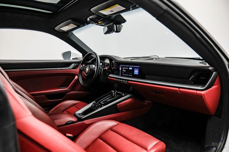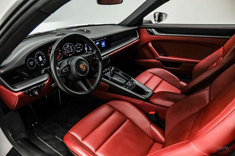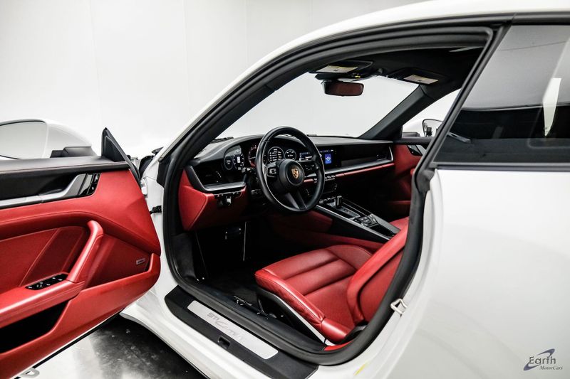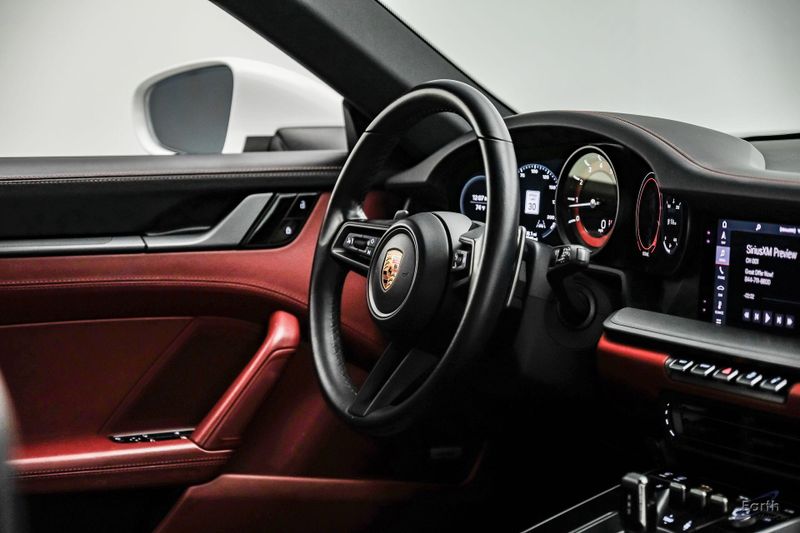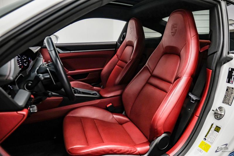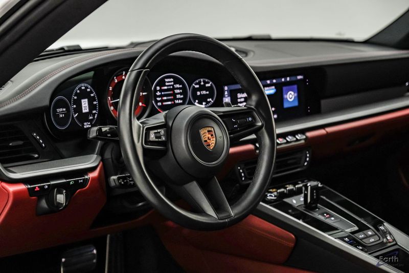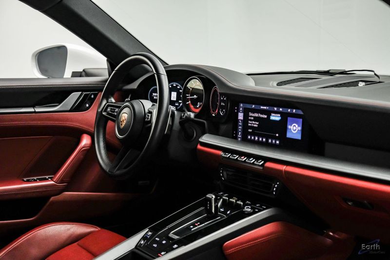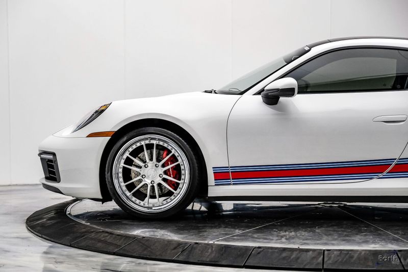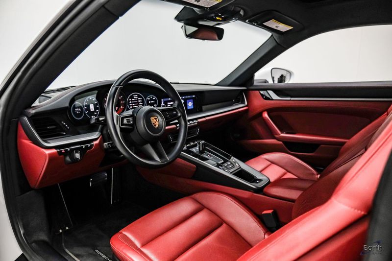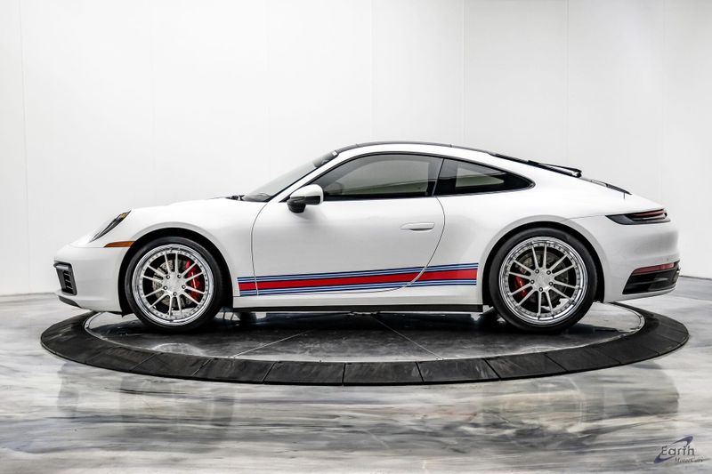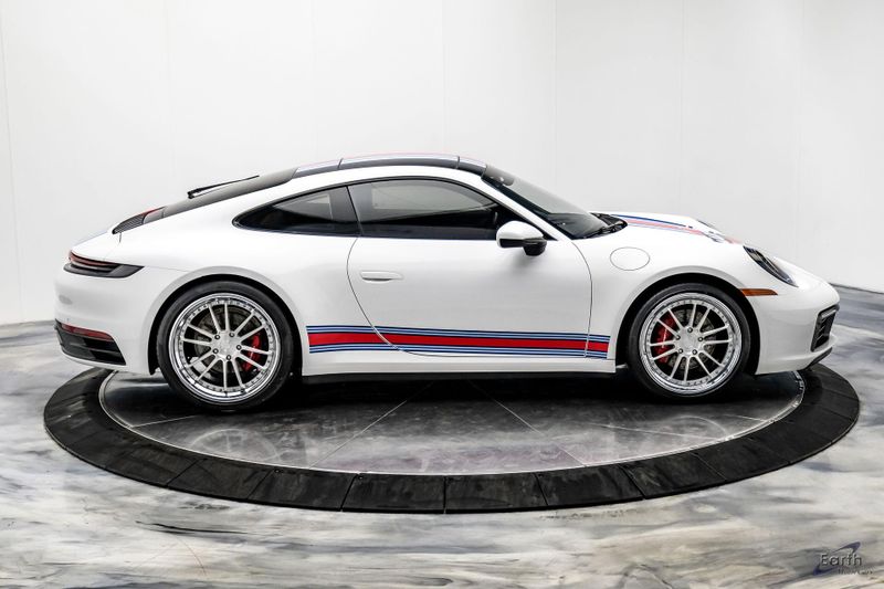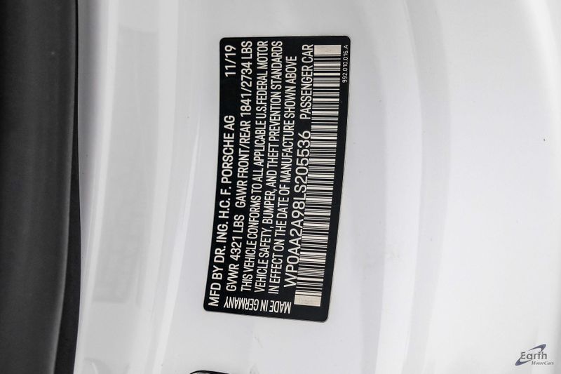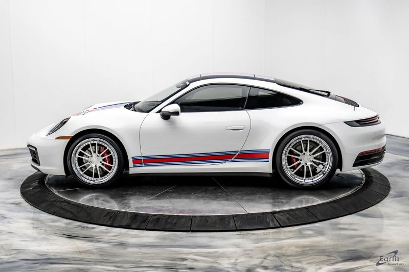 Earth MotorCars is Proud to offer this amazing: 2020 Porsche 911 Carrera Martini Package Custom Wheels, 4-Wheel Disc Brakes, 8 Speakers, 911 Logo in High Gloss Black, ABS brakes, Adaptive Cruise Control, Adaptive suspension, Air Conditioning, Alloy wheels, Apple CarPlay, Auto-dimming door mirrors, Auto-dimming Rear-View mirror, Automatic temperature control, BOSE Surround Sound System, Comfort Access, Driver door bin, Driver vanity mirror, Electric Slide/Tilt Sunroof in Glass, Electronic Stability Control, Exterior Parking Camera Rear, Four wheel independent suspension, Front Center Armrest, Front reading lights, Garage door transmitter: HomeLink, Heated door mirrors, Heated front seats, Illuminated entry, Lane Keep Assist (LKA) w/Traffic Sign Recognition, Light Design Package, Navigation system: Porsche Communication Management (PCM), Outside temperature display, Overhead console, Partial Leather Seat Trim, Passenger door bin, Passenger vanity mirror, Porsche Communication Management, Porsche Crest on Headrests, Porsche Dynamic Light System Plus (PDLS+), Power door mirrors, Power driver seat, Power passenger seat, Premium Package, Rear fog lights, Seat Ventilation, Security system, Spoiler, Sport steering wheel, Tachometer, Tilt steering wheel, Traction control, Tri-Zone A/C, Variably intermittent wipers.