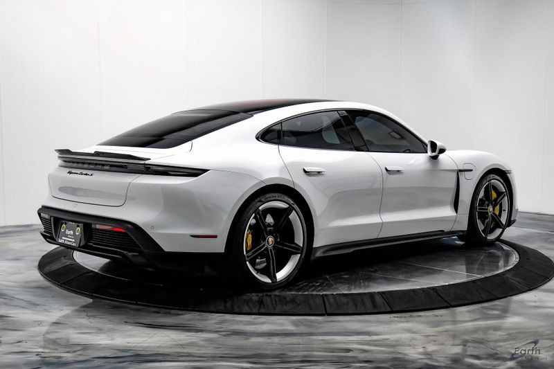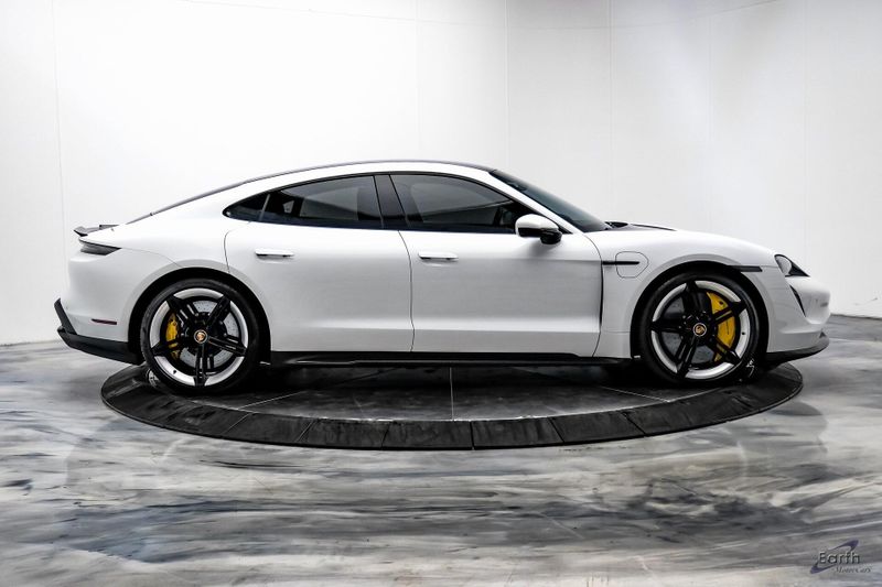Earth MotorCars is Proud to offer this amazing: 2020 Porsche Taycan Turbo S Pano Roof Mobile Charger Connect $189k MSRP! 25 Ft Charging Cable, 4-Wheel Disc Brakes, ABS brakes, Adaptive suspension, Air Conditioning, Apple CarPlay, Audio memory, Auto High-beam Headlights, Auto tilt-away steering wheel, Auto-dimming door mirrors, Auto-dimming Rear-View mirror, Automatic temperature control, Bumpers: body-color, Compass, Driver vanity mirror, Dual front impact airbags, Dual front side impact airbags, Exterior Parking Camera Rear, Fixed Panoramic Roof in Glass, Four wheel independent suspension, Front anti-roll bar, Front Bucket Seats, Front Center Armrest, Heated door mirrors, Illuminated entry, Knee airbag, Low tire pressure warning, Mobile Charger Connect, On-Board 150 kW/400V DC Charger, Outside temperature display, Overhead console, Passenger vanity mirror, Race-Tex Seat Trim, Radio data system, Rain sensing wipers, Rear window defroster, Remote keyless entry, Security system, Speed control, Speed-sensing steering, Spoiler, Sport steering wheel, Steering wheel memory, Steering wheel mounted audio controls, Traction control, Wheels: 21'' Mission E Design.