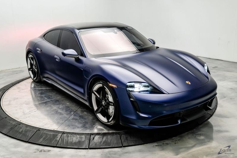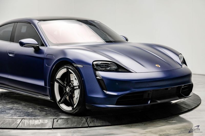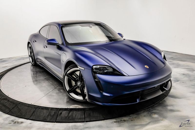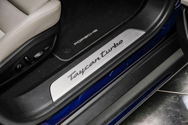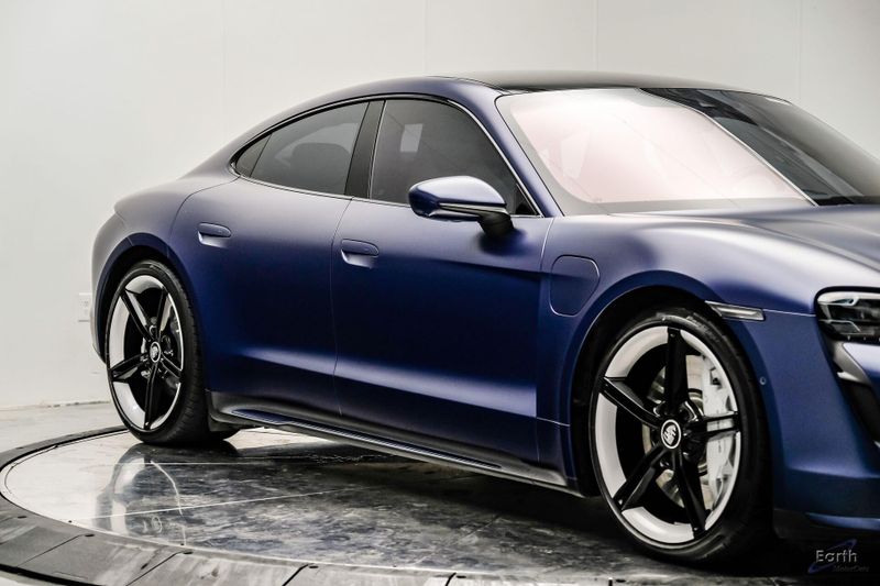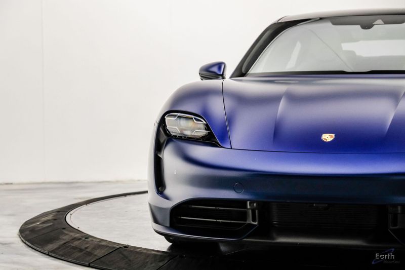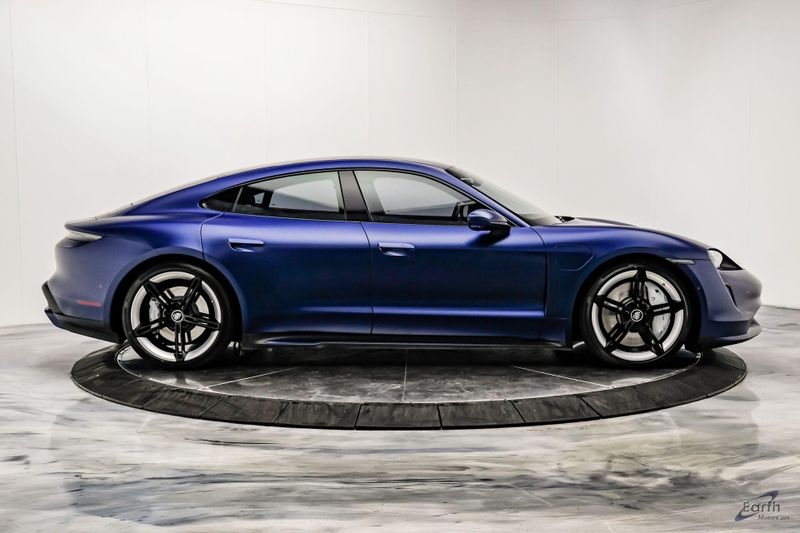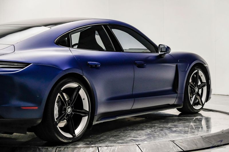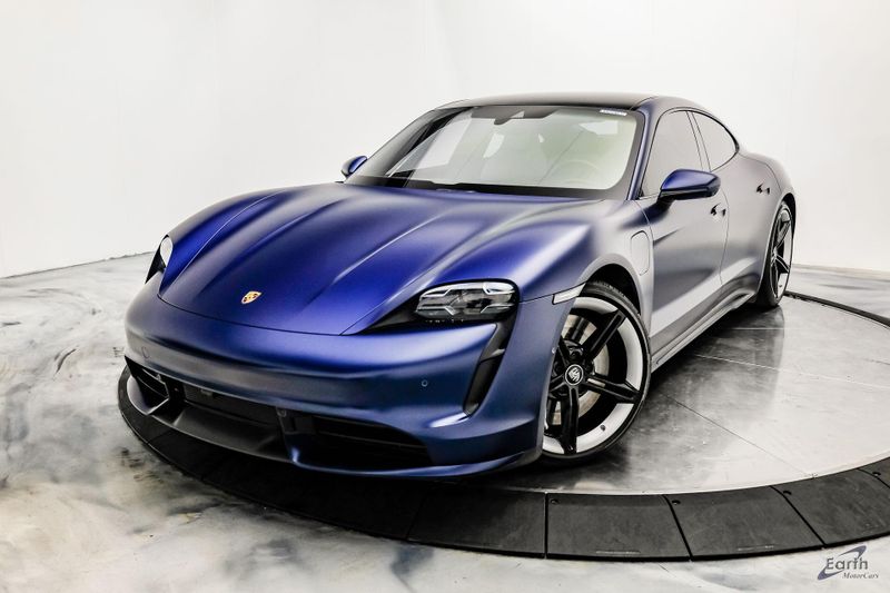 Earth MotorCars is Proud to offer this amazing: 2020 Porsche Taycan Turbo $170K MSRP Premium Pkg Carbon Interior Interior Trim in Carbon Fiber $2,460.00, Porsche Electric Sport Sound $500.00, Full Stealth PPF, 14 Speakers, 25 Ft Charging Cable, 4-Wheel Disc Brakes, ABS brakes, Adaptive suspension, Air Conditioning, Auto-dimming door mirrors, Auto-dimming Rear-View mirror, Auto-leveling suspension, Automatic temperature control, Brake assist, Bumpers: body-color, Dual front impact airbags, Dual front side impact airbags, Electronic Stability Control, Exterior Parking Camera Rear, Fixed Panoramic Roof in Glass, Four wheel independent suspension, Front & Rear ParkAssist w/Surround View, Front Bucket Seats, Fully automatic headlights, Heated rear seats, Illuminated entry, Ionizer, Lane Change Assist (LCA), Leather Seat Trim, LED-Matrix Design Headlights in Glacier Blue, Mobile Charger Connect, Navigation system: Porsche Communication Management (PCM), On-Board 150 kW/400V DC Charger, Porsche Electric Sport Sound, Premium Package, Rear window defroster, Speed control, Storage Package, Thermally & Noise Insulated Glass, Variably intermittent wipers, Wheels: 21'' Mission E Design.