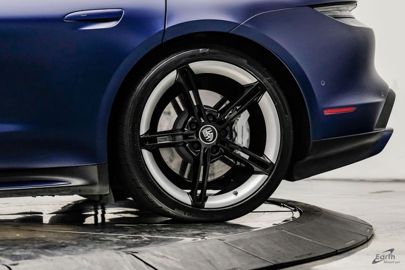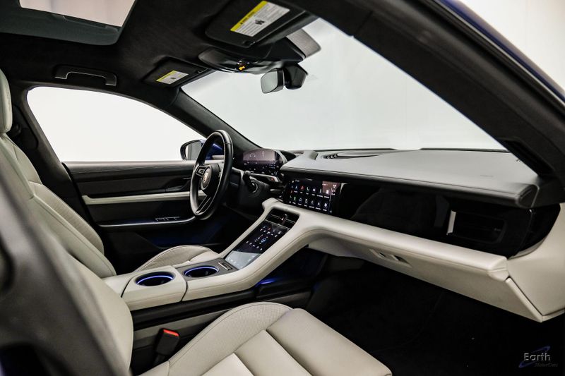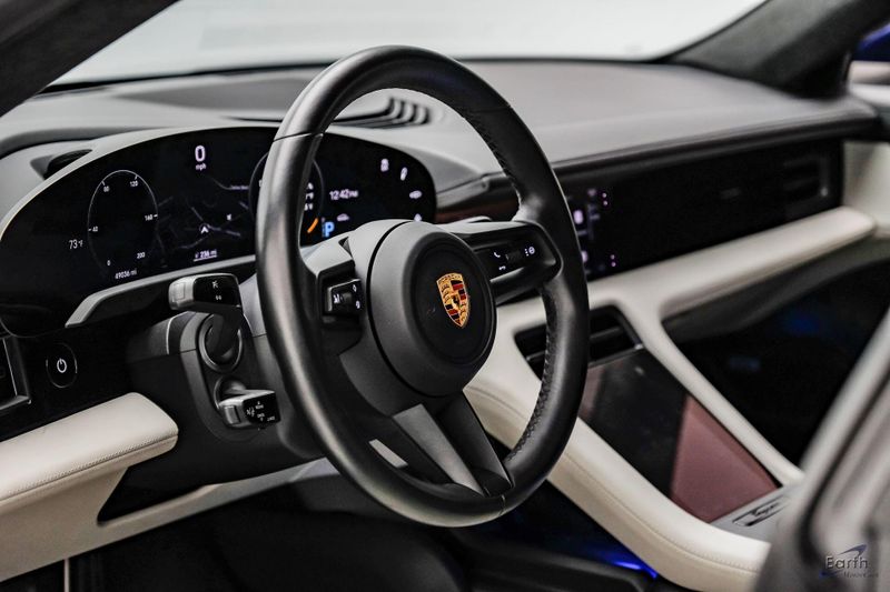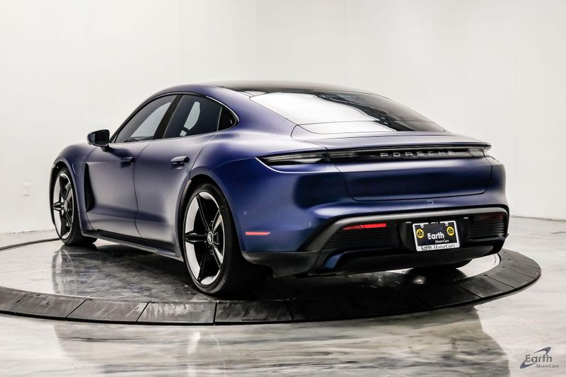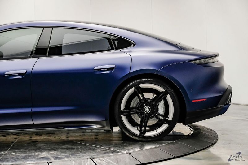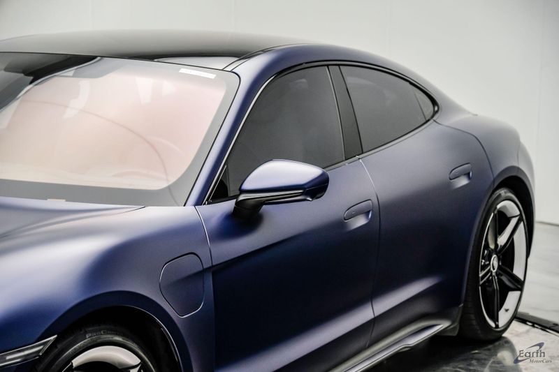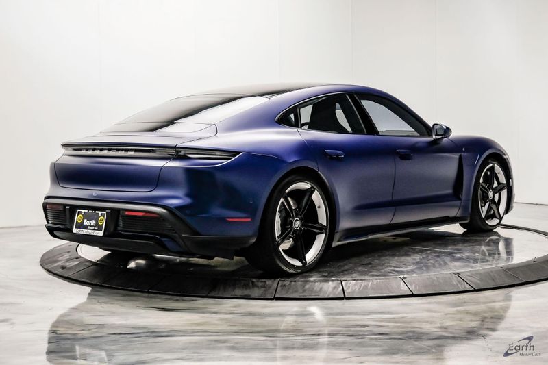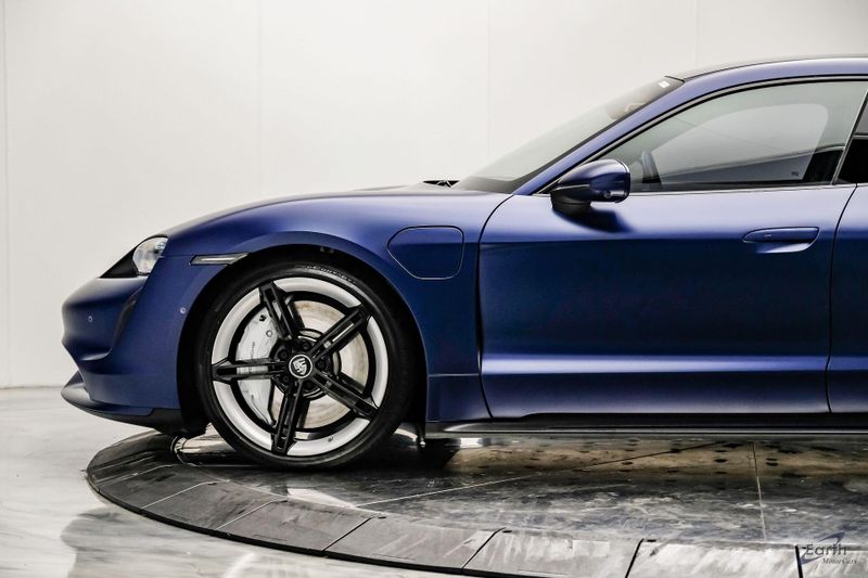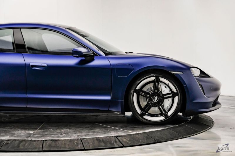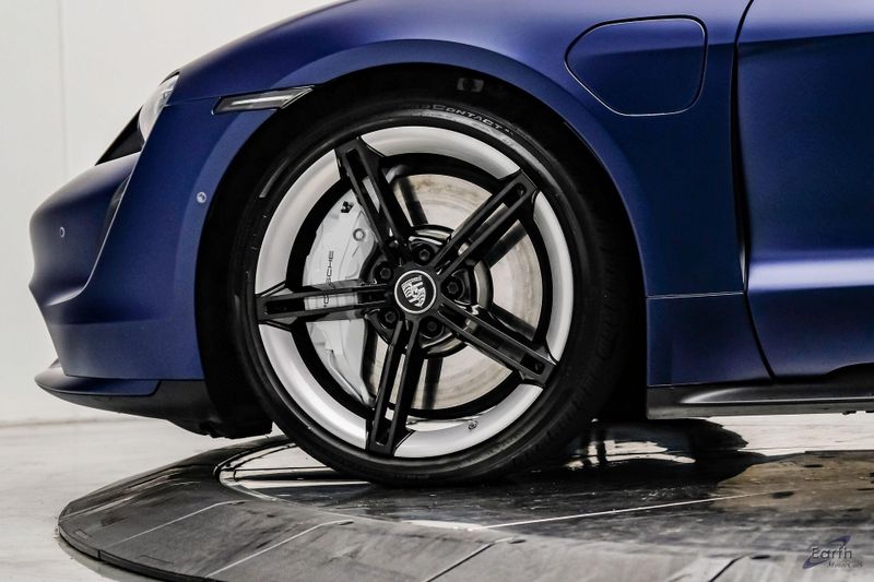 Earth MotorCars is Proud to offer this amazing: 2020 Porsche Taycan Turbo $170K MSRP Premium Pkg Carbon Interior Interior Trim in Carbon Fiber $2,460.00, Porsche Electric Sport Sound $500.00, Full Stealth PPF, 14 Speakers, 25 Ft Charging Cable, 4-Wheel Disc Brakes, ABS brakes, Adaptive suspension, Air Conditioning, Auto-dimming door mirrors, Auto-dimming Rear-View mirror, Auto-leveling suspension, Automatic temperature control, Brake assist, Bumpers: body-color, Dual front impact airbags, Dual front side impact airbags, Electronic Stability Control, Exterior Parking Camera Rear, Fixed Panoramic Roof in Glass, Four wheel independent suspension, Front & Rear ParkAssist w/Surround View, Front Bucket Seats, Fully automatic headlights, Heated rear seats, Illuminated entry, Ionizer, Lane Change Assist (LCA), Leather Seat Trim, LED-Matrix Design Headlights in Glacier Blue, Mobile Charger Connect, Navigation system: Porsche Communication Management (PCM), On-Board 150 kW/400V DC Charger, Porsche Electric Sport Sound, Premium Package, Rear window defroster, Speed control, Storage Package, Thermally & Noise Insulated Glass, Variably intermittent wipers, Wheels: 21'' Mission E Design.