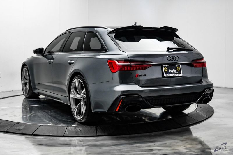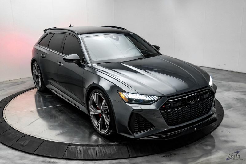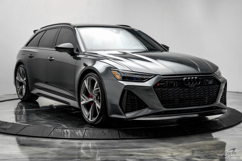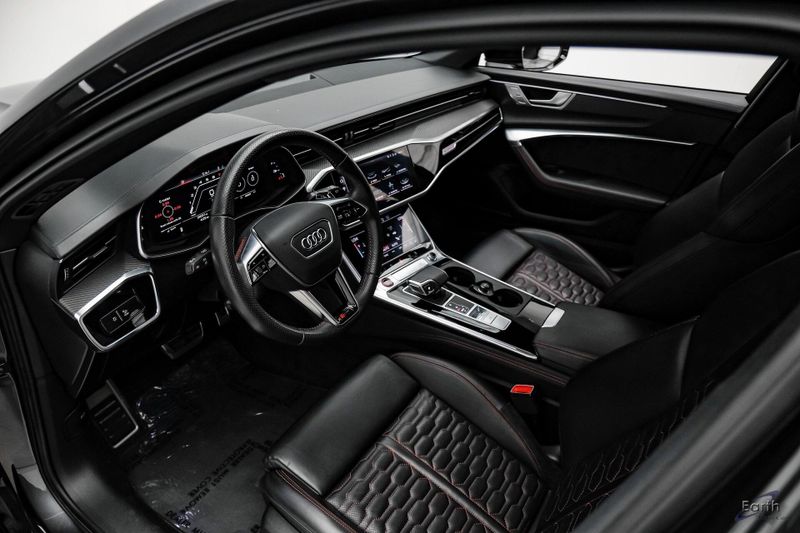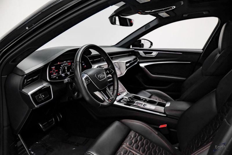 Earth MotorCars is Proud to offer this amazing: 2021 Audi RS 6 4.2 quattro Executive Black Optic Driver Assist Sport Exhaust Clean CARFAX. Sport Exhaust, 4-Wheel Disc Brakes, ABS brakes, Air Conditioning, Audi Active Lane Departure Warning, Audi Adaptive Cruise Assist, Audi Side Assist, Auto High-beam Headlights, Auto-dimming door mirrors, Automatic temperature control, Bang & Olufsen 3D Premium Sound System, Black Exterior Mirror Housings, Black Optic Exterior Package, Black Optic Package, Black Roof Rails, Brake assist, Carbon Twill Structure Inlay, Delay-off headlights, Driver Assistance Package, Dual front impact airbags, Dual front side impact airbags, Executive Package, Extended Leather Package, Exterior Parking Camera Rear, Four wheel independent suspension, Front Bucket Seats, Front Center Armrest, Head-Up Display, Heated front seats, Heated Rear Seats, Illuminated entry, Intersection Assist, Low tire pressure warning, Navigation system: MMI Navigation plus, Power Liftgate, Power moonroof, Power Soft-Closing Doors, Radio: MMI Navigation Plus w/MMI Touch Response, Rain sensing wipers, Rear window defroster, Rear window wiper, Remote keyless entry, Security system, Speed control, Speed-sensing steering, Speed-Sensitive Wipers, Sport steering wheel, Steering wheel mounted audio controls, Tachometer, Telescoping steering wheel, Traction control, Traffic Sign Recognition, Variably intermittent wipers, Ventilated front seats, Wheels: 22'' 5-V-Spoke Trapezoid Design Titanium.