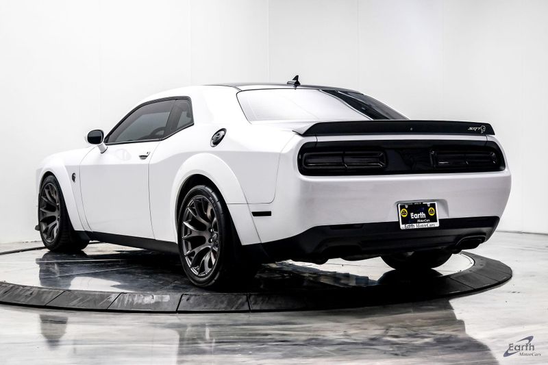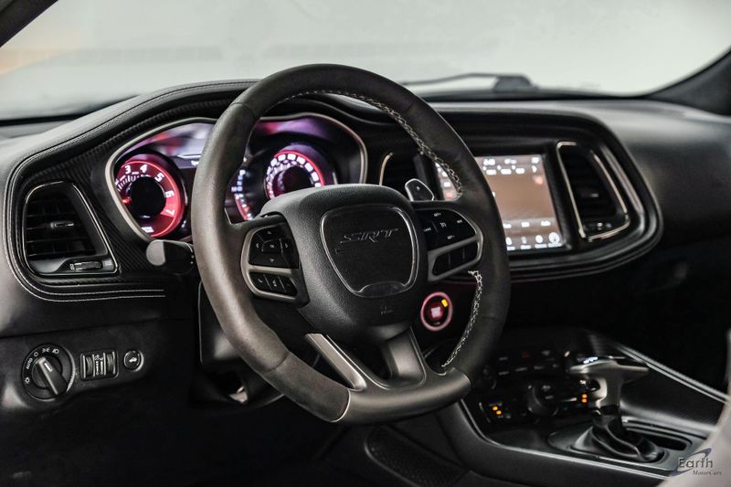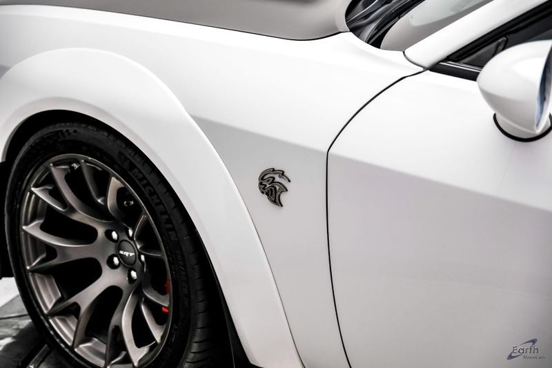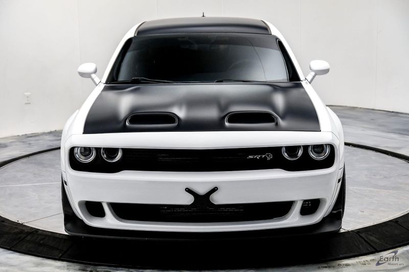 Earth MotorCars is Proud to offer this amazing: 2021 Dodge Challenger SRT Hellcat Redeye Widebody Painted Satin Black Graphics Pkg Clean CARFAX. 1-Yr SiriusXM Guardian Trial, 2.62 Rear Axle Ratio, 220 MPH Primary Speedometer, 4-Wheel Disc Brakes, 4G LTE Wi-Fi Hot Spot, 5-Year SiriusXM Traffic Service, 5-Year SiriusXM Travel Link Service, 8.4'' Touchscreen Display, Air Conditioning, Alcantara Appearance Package, Alcantara/Laguna Seats w/Logo, Apple CarPlay, Auto-dimming Rear-View mirror, Automatic temperature control, Blind Spot & Cross Path Detection, Carbon/Suede Interior Package, Dark Engine Turn Interior Accents, Demonic Red Seat Belts, Driver Convenience Group, Dual front impact airbags, Dual front side impact airbags, For Details, Visit DriveUconnect.com, Front Bucket Seats, Front Center Armrest, Fully automatic headlights, Google Android Auto, GPS Antenna Input, GPS Navigation, HD Radio, Heated front seats, Hellcat Logo Nappa/Alcantara Seat, High-Intensity Discharge Headlamps, Illuminated entry, Integrated Center Stack Radio, Integrated Voice Command w/Bluetooth, Media Hub (2 USB, AUX), Painted Black Satin Graphics Package, Plus Package, Power Multi-Function Foldaway Mirrors, Power Tilt/Telescope Steering Column, Premium-Stitched Dash Panel, Quick Order Package 27Q SRT Hellcat Redeye Widebody, Radio: Uconnect 4C Nav w/8.4'' Display, Radio/Driver Seat/Mirrors Memory, Real Carbon Fiber Interior Accents, Rear window defroster, Redeye Badging, Shark Fin Antenna, SiriusXM Satellite Radio, SiriusXM Traffic Plus, SiriusXM Travel Link, Speed control, SRT Power Chiller, Suede Door Trim Panel w/Map Pocket, Suede Headliner, Tachometer, Telescoping steering wheel, Tilt steering wheel, Trip computer, USB Host Flip, Ventilated Front Seats, Wheels: 20'' x 11'' Warp Speed Granite, Widebody Competition Suspension, Widebody Fender Flares, Wildwheel Alcantara Steering Wheel.
