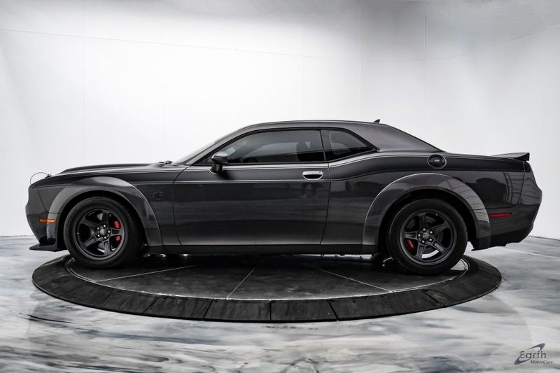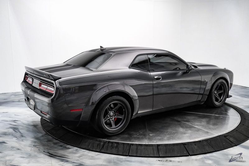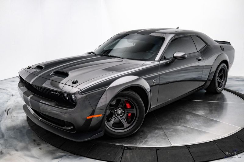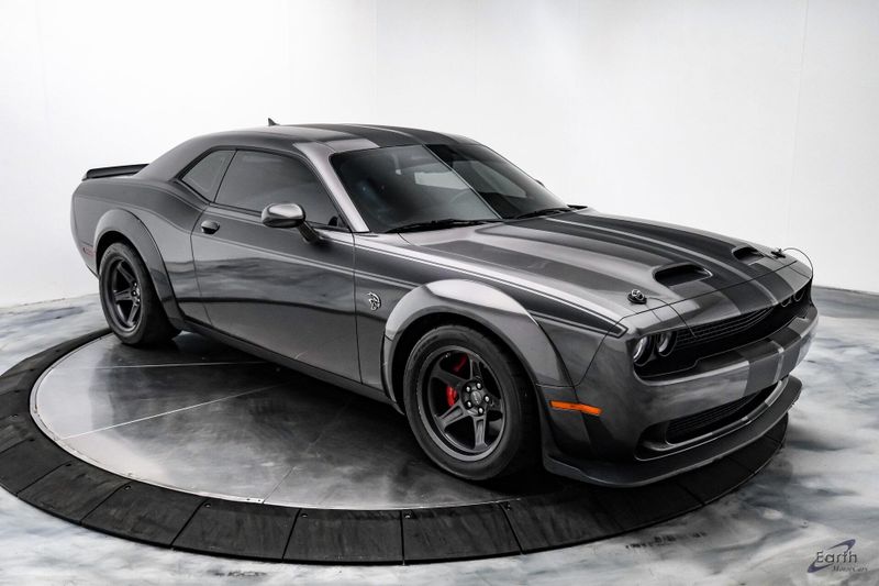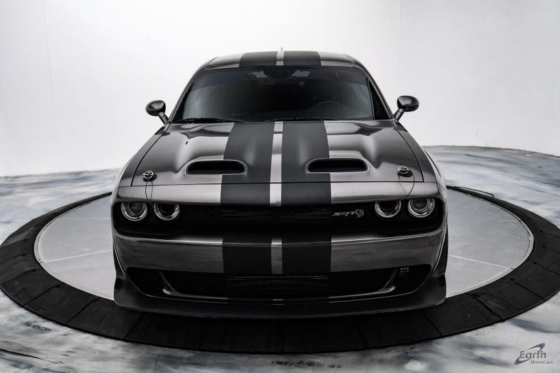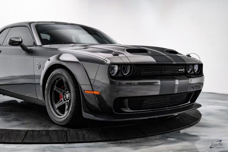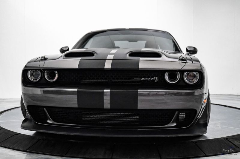 Earth MotorCars is Proud to offer this amazing: 2021 Dodge Challenger SRT Super Stock HK Sound Driver Conv Package Dual Carbon Stripes Clean CARFAX. Black Hood Pin Kit, 1 Year NMCA/NHRA Membership, 18 Speakers Premium Audio System, 220 MPH Primary Speedometer, 3.09 Rear Axle Ratio, Air Conditioning, Apple CarPlay/Android Auto, Auto-dimming Rear-View mirror, Automatic temperature control, Blind Spot & Cross Path Detection, Brembo 4-Piston Fixed Caliper Brakes, Bumpers: body-color, Demonic Red Seat Belts, Driver Convenience Group, Dual front impact airbags, Dual front side impact airbags, Dual Stripe - Carbon, Front Bucket Seats, harman/kardon Audio Group w/Subwoofer, harman/kardon GreenEdge Amp, High Performance Engine Controller, High-Intensity Discharge Headlamps, Illuminated entry, Panic alarm, ParkView Rear Back-Up Camera, Power Multi-Function Foldaway Mirrors, Quick Order Package 27S SRT Super Stock, Rear window defroster, Redeye Badging, Speed control, Spoiler, SRT Power Chiller, Steering wheel mounted audio controls, Super Stock Suspension, Surround Sound, Trunk Mounted Subwoofer, Variably intermittent wipers, Wheels: 20'' x 9.5'' SRT Lowgloss Black Performance, Widebody Fender Flares.
