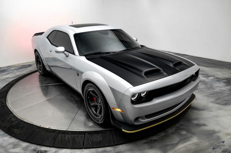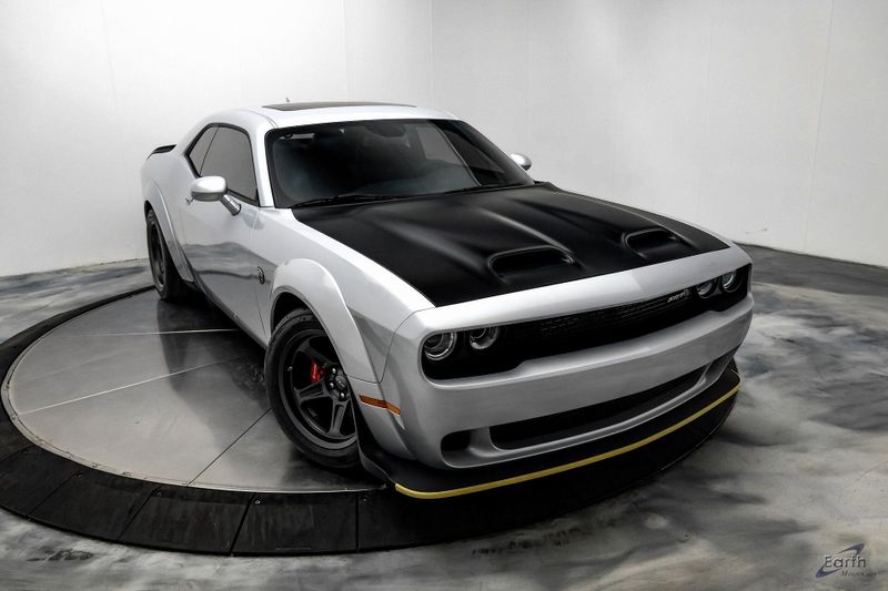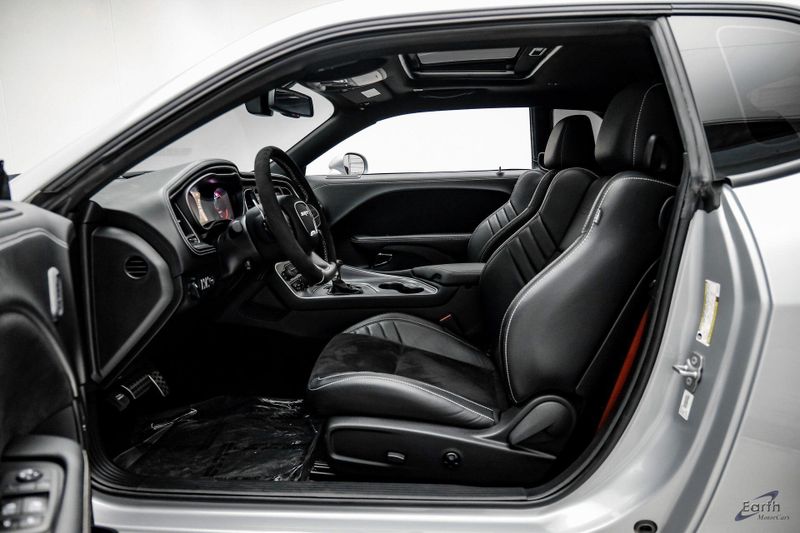 Earth MotorCars is Proud to offer this amazing: 2021 Dodge Challenger SRT Super Stock Leather Power Sunroof HK Audio Navigation CARFAX One-Owner. Clean CARFAX. 1 Year NMCA/NHRA Membership, 1-Yr SiriusXM Guardian Trial, 18 Speakers Premium Audio System, 220 MPH Primary Speedometer, 3.09 Rear Axle Ratio, 4-Wheel Disc Brakes, 4G LTE Wi-Fi Hot Spot, 5-Year SiriusXM Traffic Service, 5-Year SiriusXM Travel Link Service, 8.4'' Touchscreen Display, ABS brakes, Air Conditioning, Alcantara Appearance Package, Alcantara/Laguna Seats w/Logo, Apple CarPlay, Automatic temperature control, Blind Spot & Cross Path Detection, Brembo 4-Piston Fixed Caliper Brakes, Dark Engine Turn Interior Accents, Demonic Red Seat Belts, Driver Convenience Group, Dual front impact airbags, Dual front side impact airbags, For Details, Visit DriveUconnect.com, Front Bucket Seats, Front Center Armrest, Google Android Auto, GPS Antenna Input, GPS Navigation, harman/kardon Audio Group w/Subwoofer, harman/kardon GreenEdge Amp, HD Radio, Hellcat Logo Nappa/Alcantara Seat, High Performance Engine Controller, High-Intensity Discharge Headlamps, Integrated Center Stack Radio, Integrated Voice Command w/Bluetooth, Media Hub (2 USB, AUX), Painted Black Satin Hood, ParkView Rear Back-Up Camera, Plus Package, Power Multi-Function Foldaway Mirrors, Power Sunroof, Power Tilt/Telescope Steering Column, Premium-Stitched Dash Panel, Quick Order Package 27S SRT Super Stock, Radio: Uconnect 4C Nav w/8.4'' Display, Radio: Uconnect 4C w/8.4'' Display, Radio/Driver Seat/Mirrors Memory, Redeye Badging, Shark Fin Antenna, SiriusXM Satellite Radio, SiriusXM Traffic Plus, SiriusXM Travel Link, SRT Performance Spoiler, SRT Power Chiller, Suede Door Trim Panel w/Map Pocket, Super Stock Suspension, Surround Sound, Trunk Mounted Subwoofer, USB Host Flip, Ventilated Front Seats, Wheels: 18'' x 11'' Aluminum, Wheels: 20'' x 9.5'' SRT Lowgloss Black Performance, Widebody Fender Flares, Wildwheel Alcantara Steering Wheel.