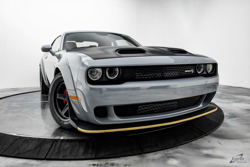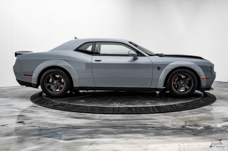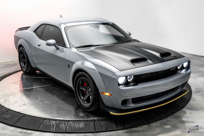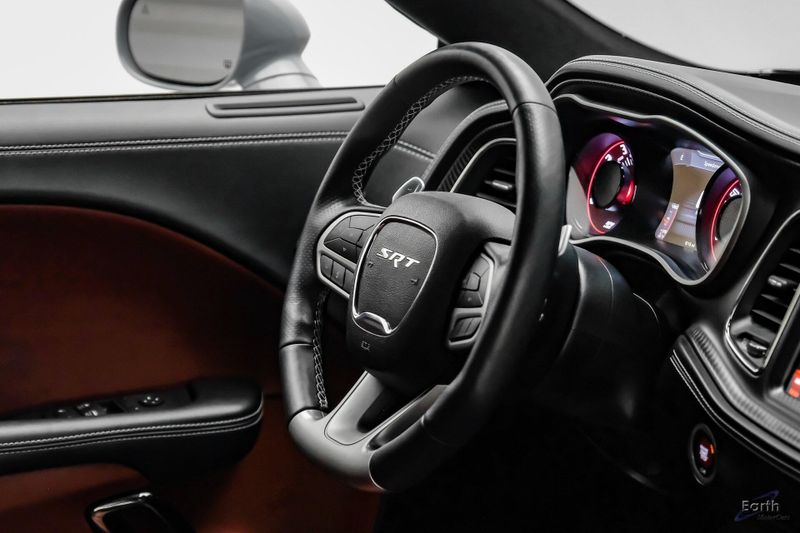 Earth MotorCars is Proud to offer this amazing: 2021 Dodge Challenger SRT Super Stock Laguna Leather Carbon/Suede Interior Clean CARFAX. 1 Year NMCA/NHRA Membership, 1-Yr SiriusXM Guardian Trial, 18 Speakers Premium Audio System, 220 MPH Primary Speedometer, 3.09 Rear Axle Ratio, 4-Wheel Disc Brakes, 4G LTE Wi-Fi Hot Spot, 5-Year SiriusXM Traffic Service, 5-Year SiriusXM Travel Link Service, 8.4'' Touchscreen Display, ABS brakes, Air Conditioning, Apple CarPlay, Automatic temperature control, Black/Demonic Red Seats, Blind Spot & Cross Path Detection, Brembo 4-Piston Fixed Caliper Brakes, Carbon/Suede Interior Package, Dark Engine Turn Interior Accents, Driver Convenience Group, Dual front impact airbags, Dual front side impact airbags, For Details, Visit DriveUconnect.com, Front Bucket Seats, Front Center Armrest, Google Android Auto, GPS Antenna Input, GPS Navigation, harman/kardon Audio Group w/Subwoofer, harman/kardon GreenEdge Amp, HD Radio, Hellcat Logo Laguna Leather Seat, Hellcat Logo Nappa/Alcantara Seat, High Performance Engine Controller, High-Intensity Discharge Headlamps, Integrated Center Stack Radio, Integrated Voice Command w/Bluetooth, Laguna Leather Package, Media Hub (2 USB, AUX), Painted Black Satin Hood, Plus Package, Power Multi-Function Foldaway Mirrors, Power Tilt/Telescope Steering Column, Premium Laguna Door Trim Panel, Premium-Stitched Dash Panel, Quick Order Package 27S SRT Super Stock, Radio: Uconnect 4C Nav w/8.4'' Display, Radio/Driver Seat/Mirrors Memory, Real Carbon Fiber Interior Accents, Redeye Badging, Shark Fin Antenna, SiriusXM Satellite Radio, SiriusXM Traffic Plus, SiriusXM Travel Link, SRT Performance Spoiler, SRT Power Chiller, Suede Door Trim Panel w/Map Pocket, Suede Headliner, Super Stock Suspension, Surround Sound, Trunk Mounted Subwoofer, USB Host Flip, Ventilated Front Seats, Wheels: 18'' x 11'' Aluminum, Widebody Fender Flares.