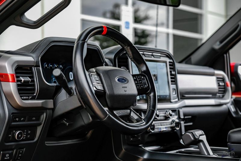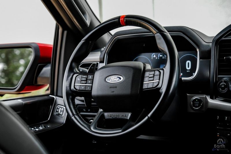 Earth MotorCars is Proud to offer this amazing: 2021 Ford F-150 Raptor Forged Wheels - Graphics 4WD, 17'' Forged Aluminum Bead-Lock Capable Wheels, 360 Degree Camera, 4-Wheel Disc Brakes, 7 Speakers, Adaptive suspension, Air Conditioning, AM/FM radio: SiriusXM with 360L, Auto Start-Stop Removal, Automatic temperature control, Connected Built-In Navigation, Convenience Package, Electronic Locking w/4.10 Axle Ratio, Electronic Stability Control, Emergency communication system: SYNC 4 911 Assist, Equipment Group 800A Base, Exterior Parking Camera Rear, Front Bucket Seats, Front-Axle w/Torsen Differential, Fully automatic headlights, GVWR: 7,050 lbs Payload Package, Heated door mirrors, Heated front seats, Integrated Trailer Brake Controller, Interior Work Surface, Navigation system: Connected Navigation (90-Day Trial), Partitioned Lockable Fold-Flat Storage, Passenger vanity mirror, Power door mirrors, Pro Trailer Backup Assist, Rear reading lights, Rear step bumper, Rigid LED Fog Lamp, Security system, Speed control, Speed-sensing steering, Tachometer, Telescoping steering wheel, Torsen Package, Tow Technology Package, Traction control, Turn signal indicator mirrors.