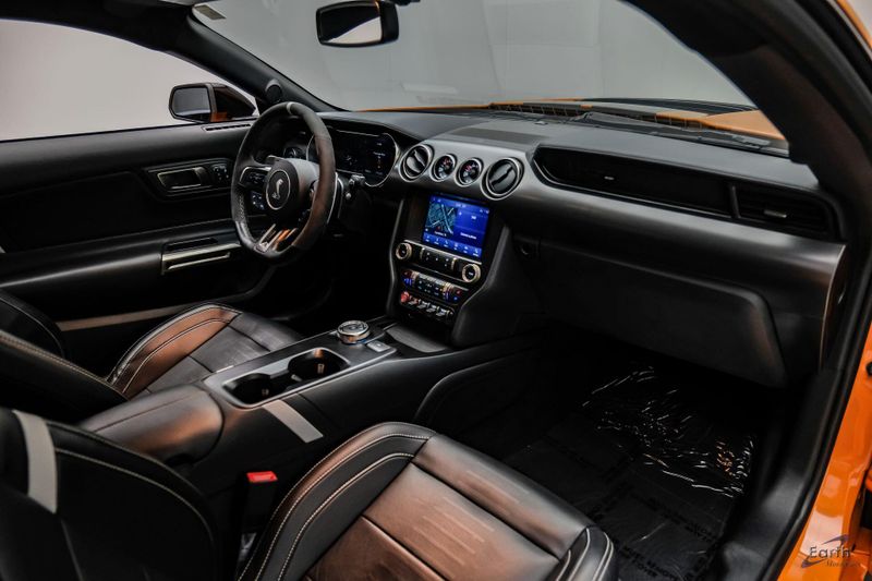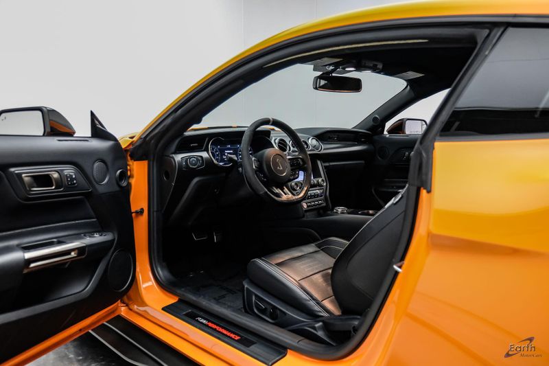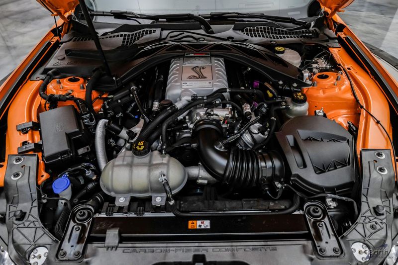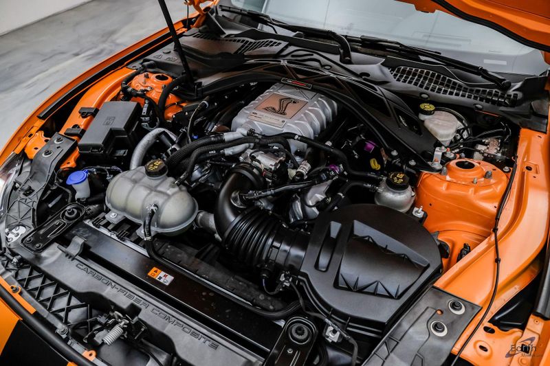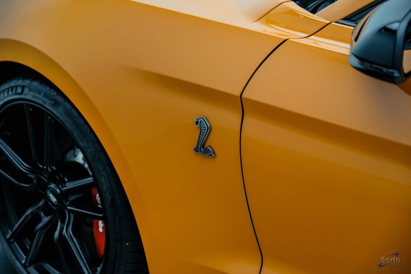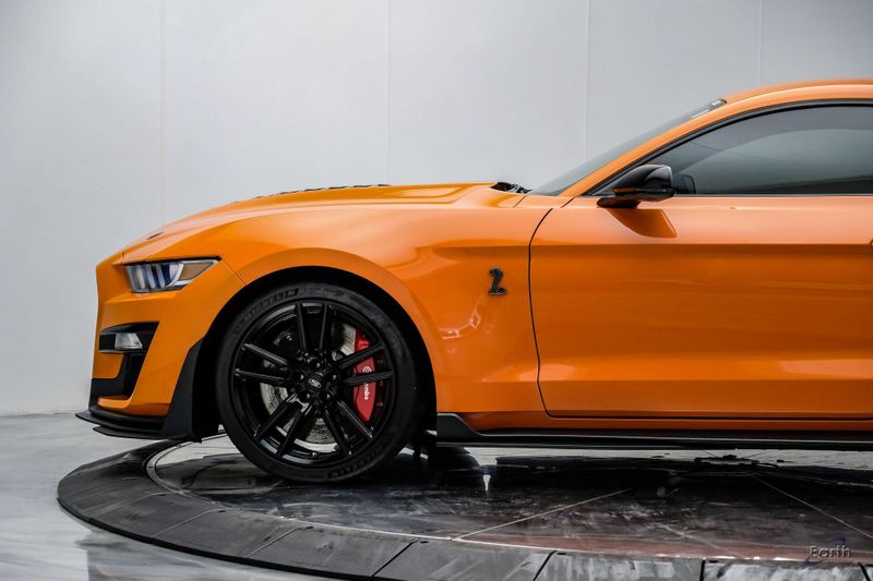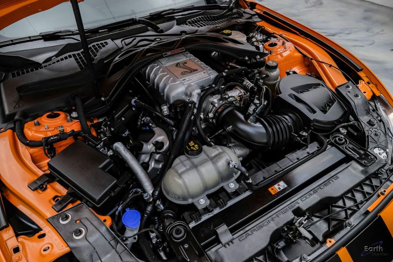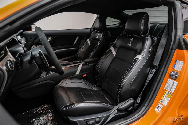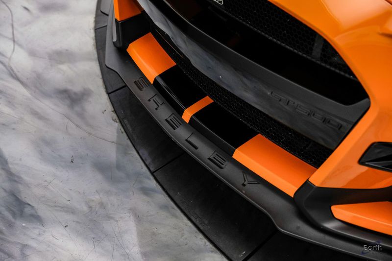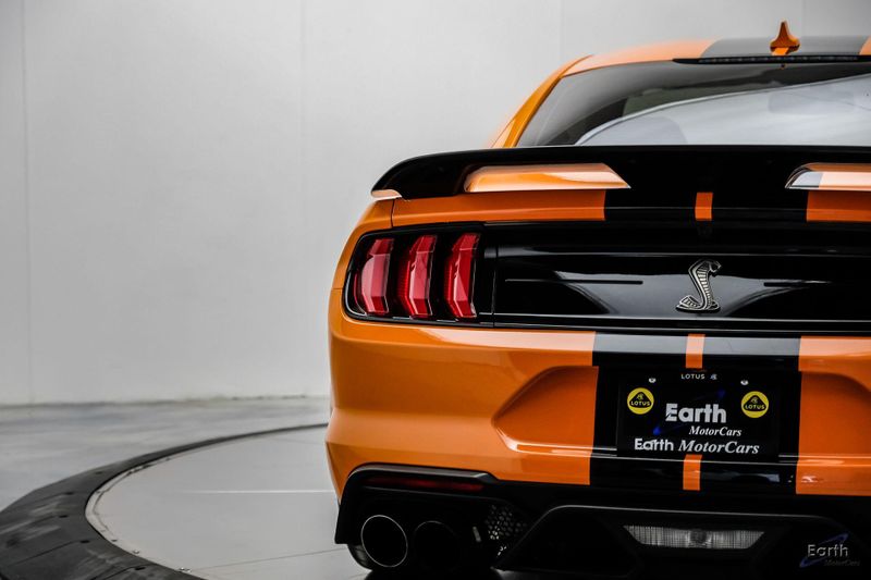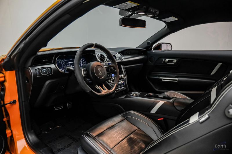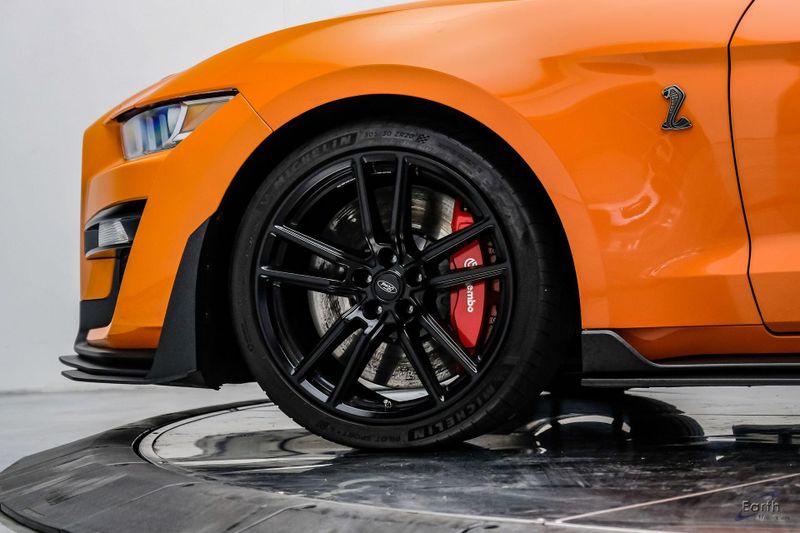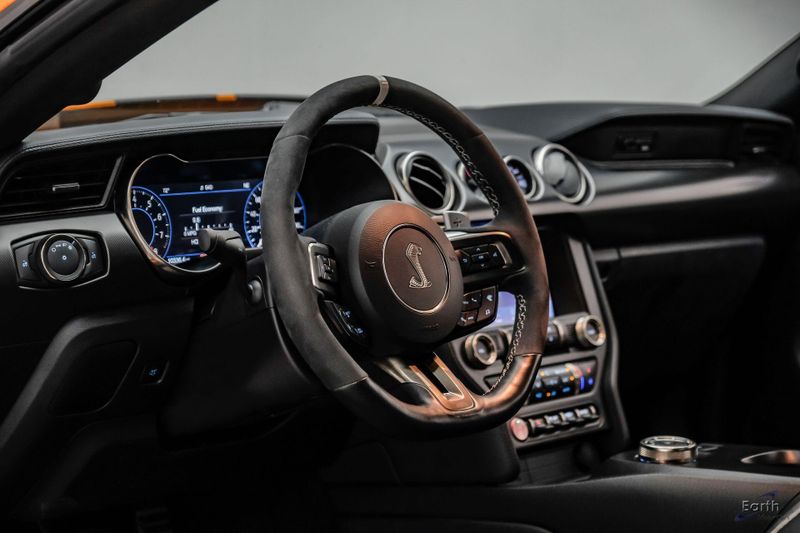 Earth MotorCars is Proud to offer this amazing: 2021 Ford Mustang Shelby GT500 Painted-Over-The-Top-Stripe Tech & Handling Pack CARFAX One-Owner. CLEAN AUTOCHECK REPORT, TWISTER ORANGE TRI-COAT 495.00, 4-Wheel Disc Brakes, ABS brakes, Air Conditioning, AM/FM Stereo, Auto-dimming Rear-View mirror, Automatic temperature control, BLIS Blind Spot Information System, Bumpers: body-color, Dual front impact airbags, Dual front side impact airbags, Equipment Group 950A, Exterior Parking Camera Rear, Four wheel independent suspension, Front Bucket Seats, Front Center Armrest, Fully automatic headlights, Handling Package, Heated Mirrors, Illuminated entry, Knee airbag, Painted Over-the-Top Racing Stripes, Panic alarm, Power driver seat, Power steering, Power windows, Radio: B&O Sound System by Bang & Olufsen, Rear window defroster, Remote keyless entry, Security system, SiriusXM Radio, Speed control, Speed-sensing steering, Spoiler, Steering wheel mounted audio controls, SYNC 3 Communications & Entertainment System, Tachometer, Technology Package, Traction control, Variably intermittent wipers, Voice-Activated Touch-Screen Navigation System, Voltmeter, Wheels: 20'' Flow Formed High Gloss Black Aluminum.