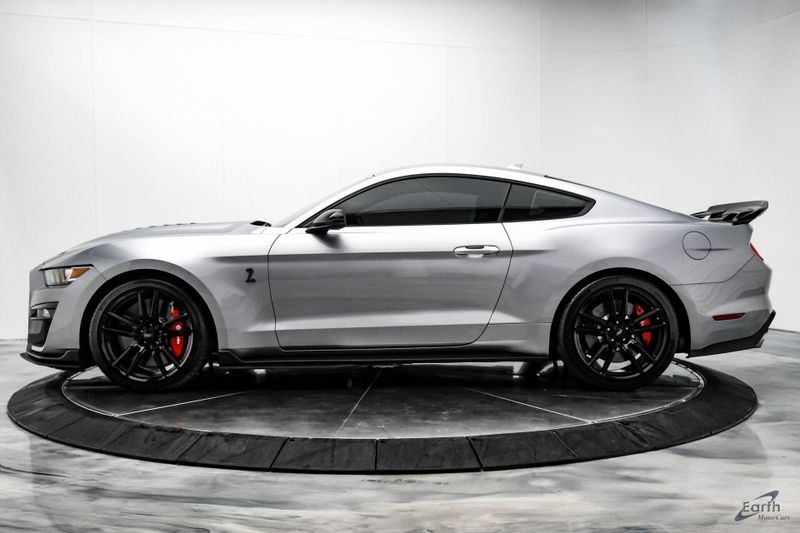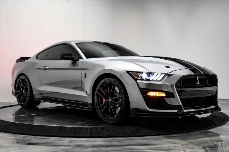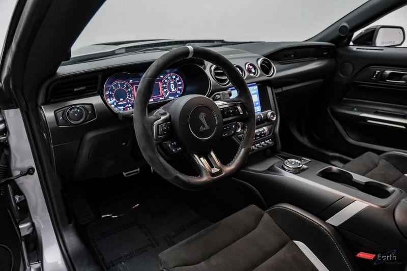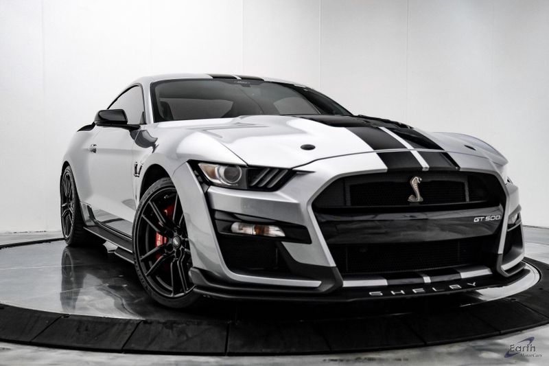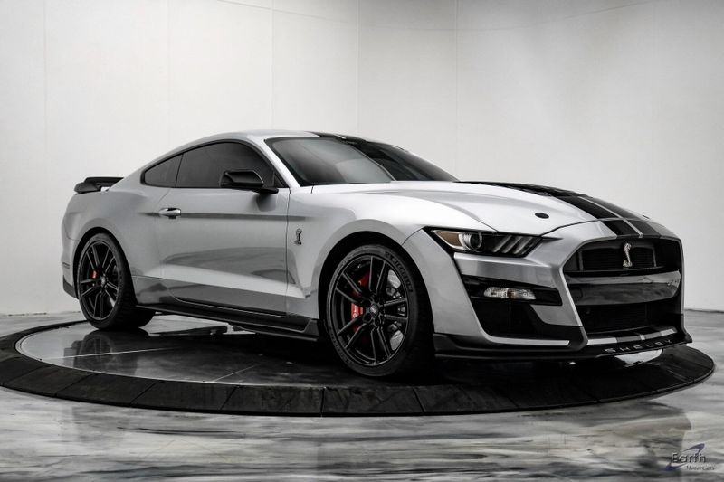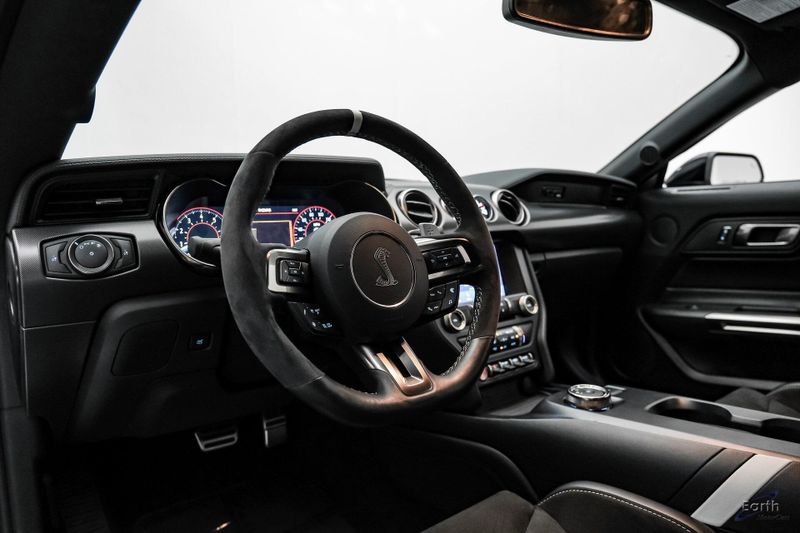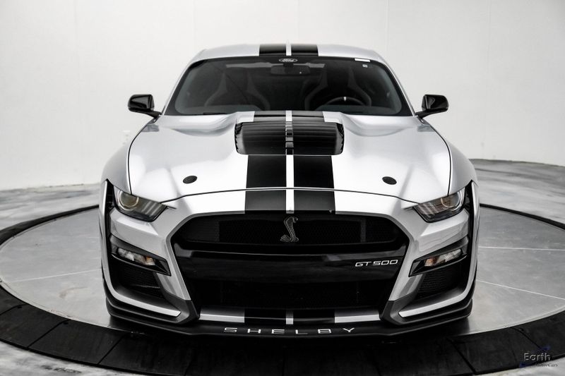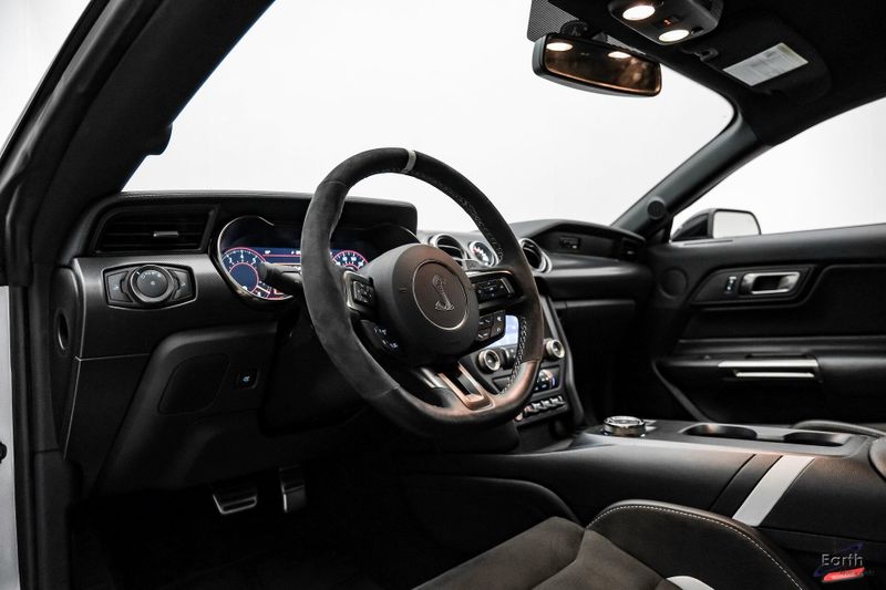 Earth MotorCars is Proud to offer this amazing: 2021 Ford Mustang Shelby GT500 Fastback Tech Pack 950A Package Leather RECARO's CARFAX One-Owner. 4-Wheel Disc Brakes, Air Conditioning, Auto-dimming Rear-View mirror, Automatic temperature control, BLIS Blind Spot Information System, Brake assist, Bumpers: body-color, Climate Controlled Front Seats, Delay-off headlights, Dual front impact airbags, Dual front side impact airbags, Electronic Stability Control, Equipment Group 950A, Exterior Parking Camera Rear, Four wheel independent suspension, Front Bucket Seats, Front Center Armrest, Fully automatic headlights, Heated Mirrors, Illuminated entry, Navigation System, Outside temperature display, Panic alarm, Passenger vanity mirror, Power driver seat, Radio: B&O Sound System by Bang & Olufsen, Rear window defroster, RECARO Leather-Trimmed Seats w/Miko Suede, Remote keyless entry, Security system, Speed control, Speed-Sensitive Wipers, Spoiler, Sport steering wheel, Steering wheel mounted audio controls, SYNC 3 Communications & Entertainment System, Tachometer, Technology Package, Telescoping steering wheel, Tilt steering wheel, Traction control, Variably intermittent wipers, Voice-Activated Touch-Screen Navigation System, Voltmeter, Wheels: 20'' Flow Formed High Gloss Black Aluminum.