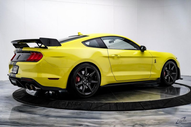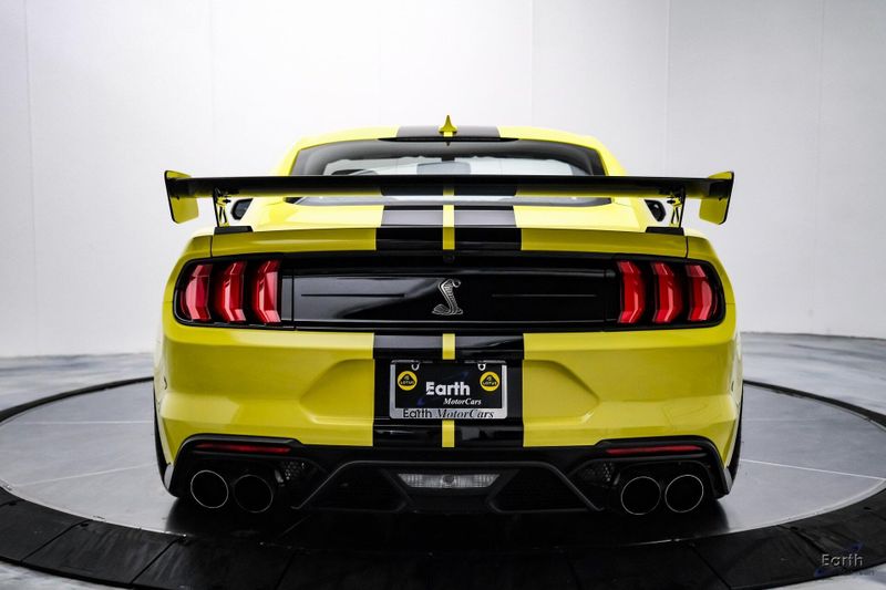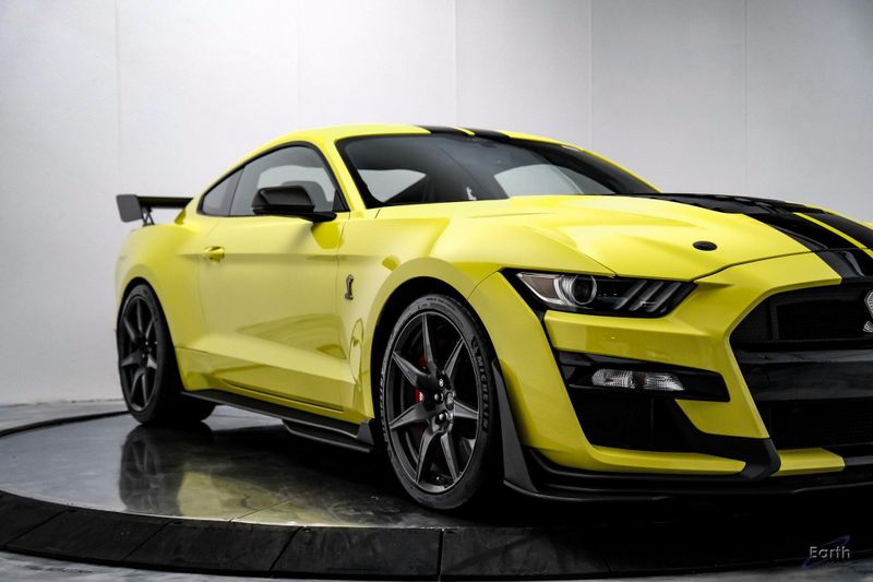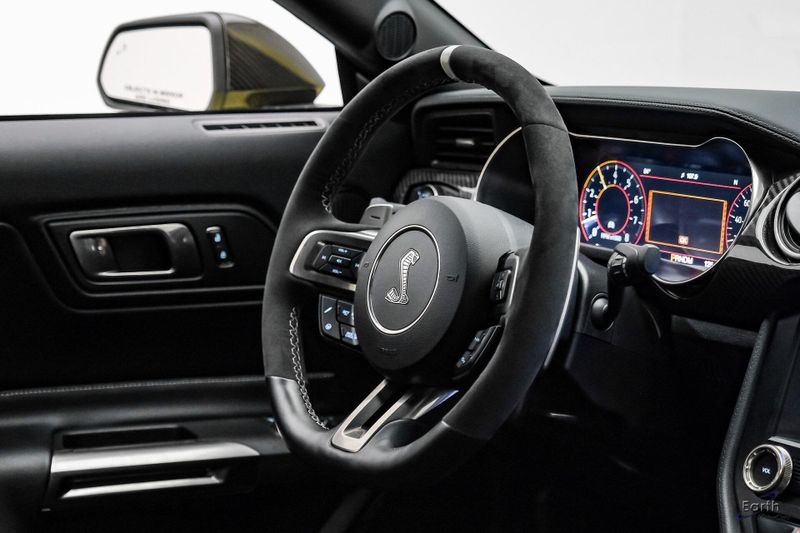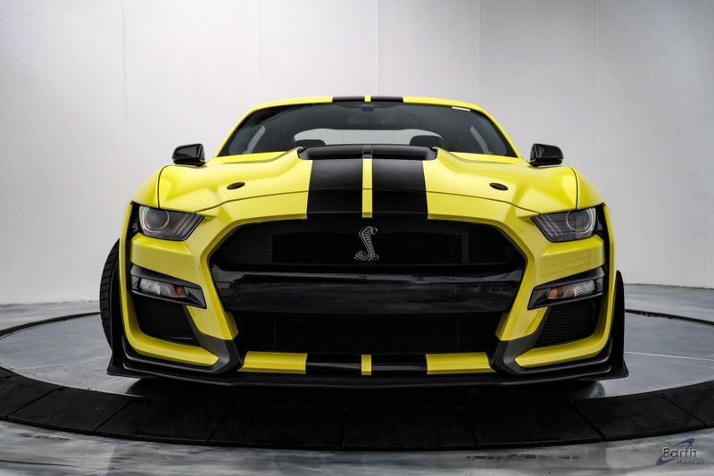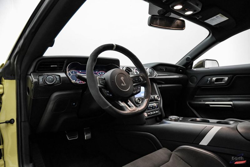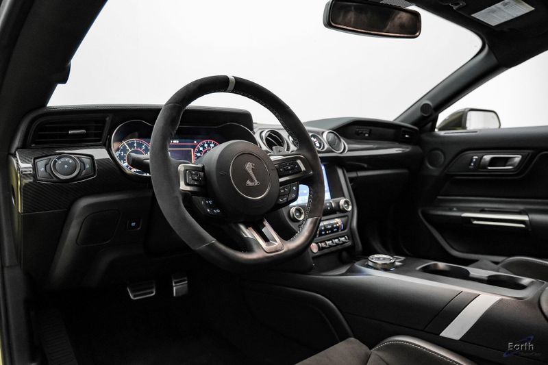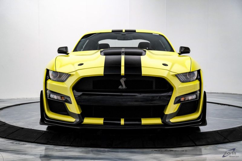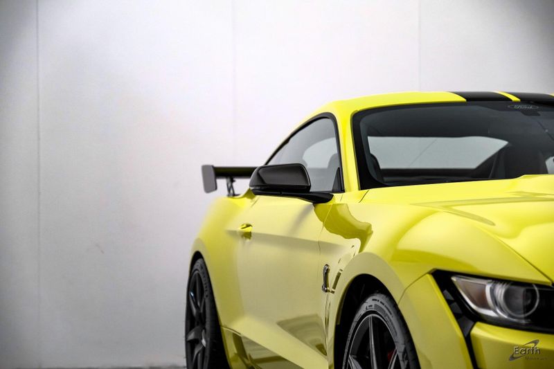 Earth MotorCars is Proud to offer this amazing: 2021 Ford Mustang Shelby GT500 Carbon Fiber Track Pack Painted Stripes Tech Pack Clean CARFAX. 4-Wheel Disc Brakes, Adjustable Strut Top Mounts, Air Conditioning, Auto-dimming Rear-View mirror, Automatic temperature control, BLIS Blind Spot Information System, Brake assist, Bumpers: body-color, Carbon Fiber Track Pack, Delay-off headlights, Dual front impact airbags, Dual front side impact airbags, Electronic Stability Control, Equipment Group 950A, Exposed Carbon Fiber GT4 Track Wing, Exposed Carbon Fiber Instrument Panel, Exterior Parking Camera Rear, Four wheel independent suspension, Front Bucket Seats, Fully automatic headlights, Heated Mirrors, High-Intensity Discharge Headlights, Illuminated entry, Knee airbag, Low tire pressure warning, Painted Over-the-Top Racing Stripes, Panic alarm, Power door mirrors, Radio: B&O Sound System by Bang & Olufsen, Rear window defroster, RECARO Leather-Trimmed Seats w/Miko Suede, Remote keyless entry, Security system, Speed control, Speed-sensing steering, Speed-Sensitive Wipers, Spoiler, Steering wheel mounted audio controls, SYNC 3 Communications & Entertainment System, Technology Package, Traction control, Variably intermittent wipers, Voice-Activated Touch-Screen Navigation System, Wheel Locking Kit, Wheels: 20'' Exposed Carbon Fiber.