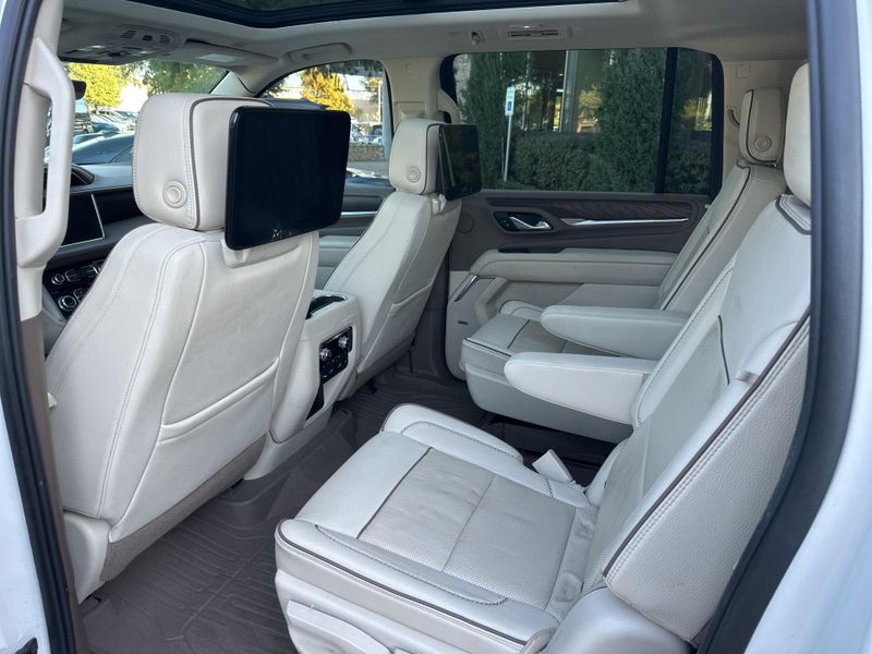 Earth MotorCars is Proud to offer this amazing: 2021 GMC Yukon XL Denali Premium Package New Tires 4WD, 12-Way Power Seat Adjusters, 14 Speakers, 15'' Diagonal Multi-Color Head-Up Display, 2 Presets For Outside Rearview Mirrors, 3rd Row 60/40 Power-Folding Split-Bench Seat, 4-Wheel Disc Brakes, Adaptive Cruise Control, Advanced Security Package, Advanced Technology Package, Air Conditioning, Auto High-beam Headlights, Auto-dimming door mirrors, Auto-dimming Rear-View mirror, Automatic temperature control, Bright Front & Rear Door Sill Plates, Chrome Door Handles w/Body-Color Strip, Denali Premium Package, Dual Exhaust System, Dual front impact airbags, Dual front side impact airbags, Dual-Pane Panoramic Power Sunroof, Electronic Stability Control, Enhanced Automatic Emergency Braking, Galvano Bodyside Moldings, Glass Breakage Sensor, Hands-Free Power Programmable Rear Liftgate, HD Surround Vision, Heated & Ventilated Driver & Front Passenger Seats, Heated 2nd Row Outboard Position Seats, Heated Automatic Steering Wheel, Heated Driver & Front Passenger Seats, Hill Descent Control, Illuminated entry, Inside Rear-View Auto-Dimming Mirror, Inside Rearview Auto-Dimming Rear Camera Mirror, Navigation System, Outside Heated Power-Adjustable Mirrors, Power Liftgate, Power Release 2nd Row Bucket Seats, Power Tilt & Telescopic Steering Column, Power-Retractable Assist Steps, Preferred Equipment Group 5SA, Rain sensing wipers, Rear air conditioning, Rear Camera Mirror Washer, Rear Pedestrian Alert, Rear window defroster, Rear window wiper, Safety Alert Seat, Speed-sensing steering, Theft-Deterrent Alarm System, Traction control, Tri-Zone A/C, Universal Home Remote, Variably intermittent wipers, Vehicle Inclination Sensor, Vehicle Interior Movement Sensor, Wheel Locks, Wheels: 22'' x 9'' Bright Machined Aluminum.