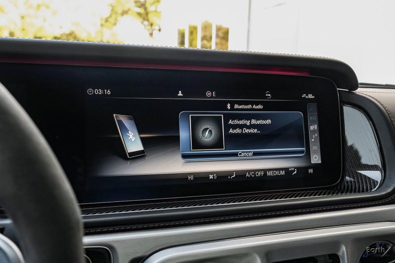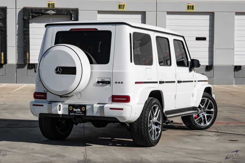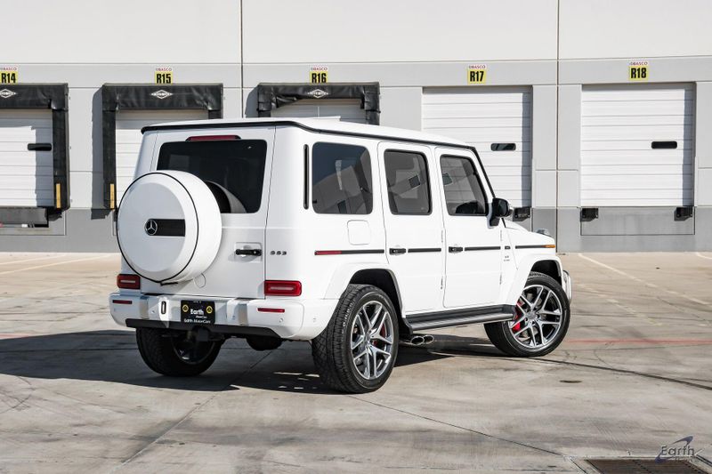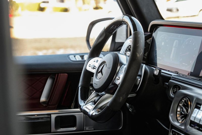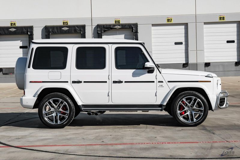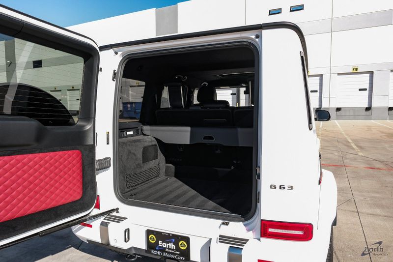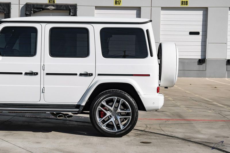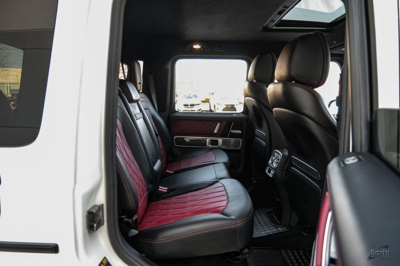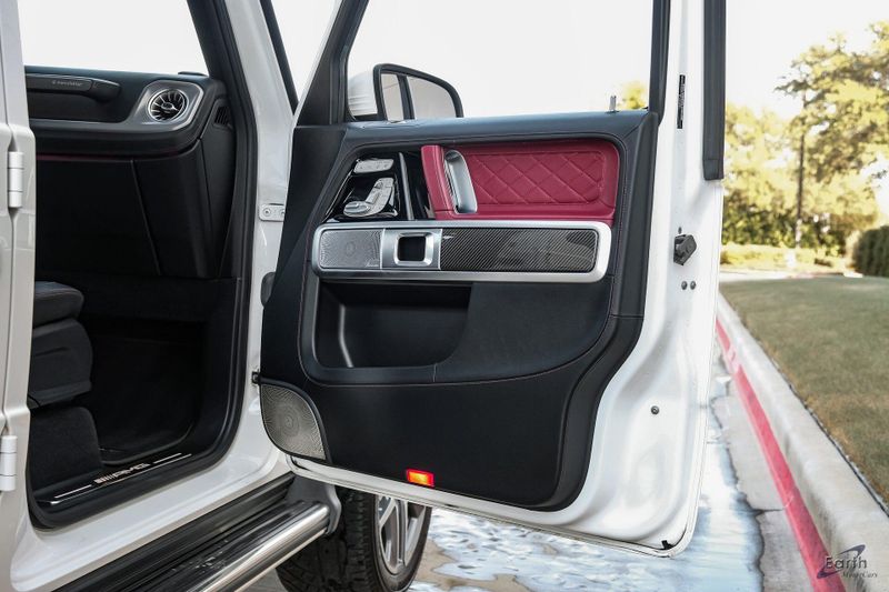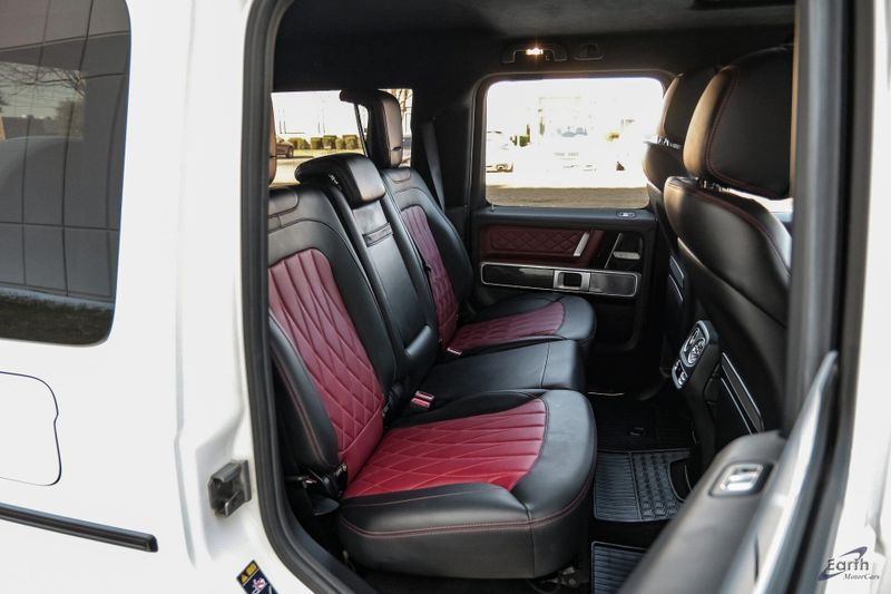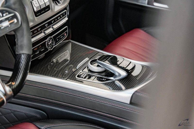 Earth MotorCars is Proud to offer this amazing: 2021 Mercedes-Benz G-Class G 63 AMG 4MATIC Interior Package Plus CARFAX One-Owner. Clean CARFAX. CLEAN AUTOCHECK REPORT, Bengal Red/Black Leather, AMG Carbon Fiber Trim, 4-Wheel Disc Brakes, ABS brakes, Air Conditioning, AMG Carbon Fiber Engine Cover, AMG DINAMICA/Carbon Fiber Steering Wheel, Android Auto, Apple CarPlay, Auto-dimming door mirrors, Auto-dimming Rear-View mirror, Automatic temperature control, Burmester Surround Sound System, Diamond Stitching, Drive-Dynamic Multicontour Front Seats w/Massage, Dual front impact airbags, Dual front side impact airbags, Free Map Data Updates for 3 Years, Front Bucket Seats, Front Ventilated Seats, G manufaktur Interior Plus, G manufaktur Interior Plus Package, Heated Steering Wheel, Live Traffic Information, Nappa Leather Dashboard, Navigation Services, Overhead airbag, Power moonroof, Radio: COMAND Online Navigation, Rapid Heating Functionality for Front Seats, Rear air conditioning, Rear window defroster, Remote keyless entry, Seat Comfort Package, SiriusXM Satellite Radio, Spare Wheel Cover in Vehicle Color, Steering wheel mounted audio controls, Tachometer, Tri-Zone A/C, Wheels: 21'' AMG Matte Black Twin 5-Spoke Alloy.