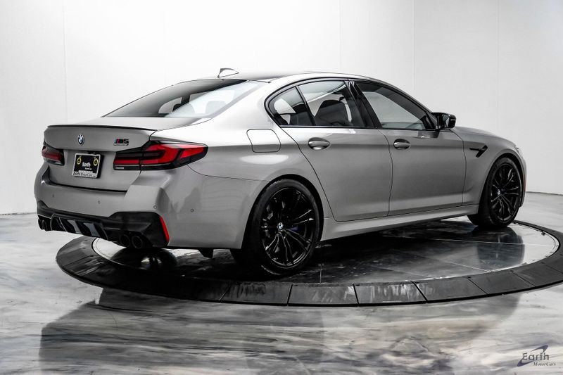 Earth MotorCars is Proud to offer this amazing: 2022 BMW M5 Competition Executive - Factory Warranty Black w/Full Merino Leather Upholstery, 16 Speakers, 4-Wheel Disc Brakes, ABS brakes, Active Park Distance Control, Adaptive suspension, Air Conditioning, Alloy wheels, AM/FM radio: SiriusXM with 360L, Apple CarPlay & Android Auto Compatibility, Auto tilt-away steering wheel, Auto-dimming door mirrors, Competition Package, Competition Package (7MA), Connected Package Pro, ConnectedDrive Services, Drive Recorder, Driver vanity mirror, Electronic Stability Control, Emergency communication system: BMW Assist eCall, Executive Package, Extended Merino Leather Upholstery, Extended Shadowline Trim, Exterior Parking Camera Rear, Front & Rear Heated Seats, Front Massaging Seats, Front reading lights, Front Ventilated Seats, Fully automatic headlights, Garage door transmitter, Gesture Control, harman/kardon Surround Sound System, harman/kardon Speakers, Heads-Up Display, Heated door mirrors, Heated Front Seats, Heated front seats, Illuminated entry, Live Cockpit Pro w/Navi, Low tire pressure warning, M Seat Belts, M Shadowline Lights, Navigation System, Parking Assistant Plus, Power door mirrors, Power Rear Sunshade & Rear Side Window Shades, Rear dual zone A/C, Rear-View Camera, Remote keyless entry, Security system, Soft-Close Automatic Doors, Speed control, Surround View w/3D View, Traction control, Tri-Zone A/C, Variably intermittent wipers, Wheels: 20'' x 9.5'' Fr & 20'' x 10.5'' Rr Black, Wheels: 20'' x 9.5'' Fr & 20'' x 10.5'' Rr M Y-Spoke.