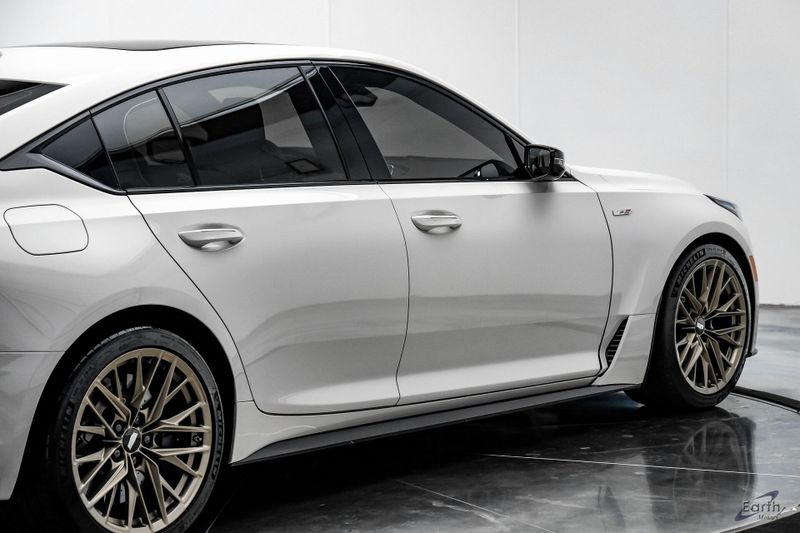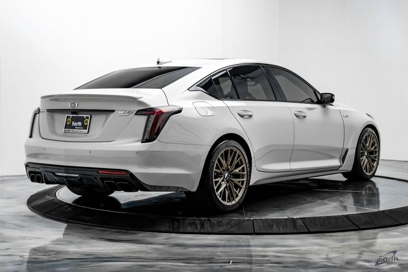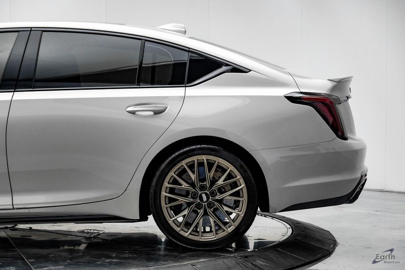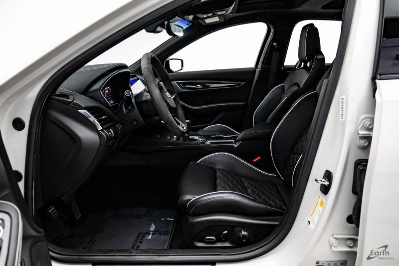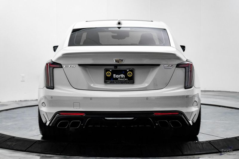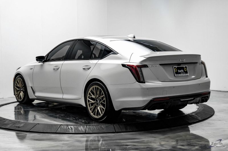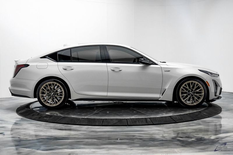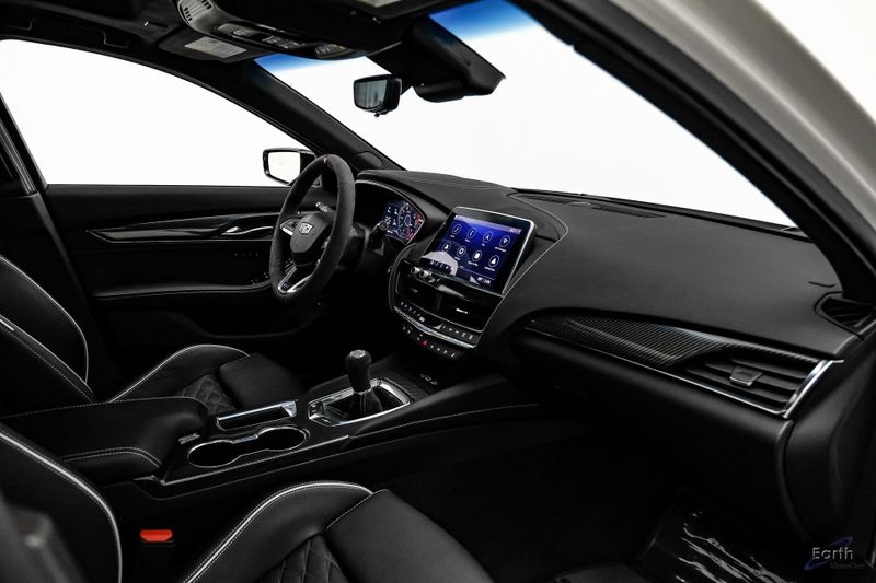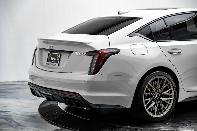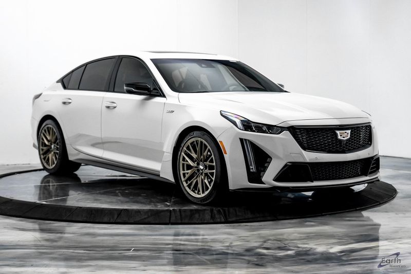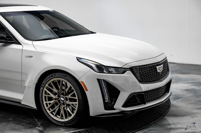 Earth MotorCars is Proud to offer this amazing: 2022 Cadillac CT5 V-Series Carbon Brakes Data & Video Recorder Ultraview Moonroof CARFAX One-Owner. Clean CARFAX. 3.73 Rear Axle Ratio, 4-Wheel Disc Brakes, ABS brakes, Air Conditioning, Air Ionizer, AKG Premium 16-Speaker System, AM/FM radio: SiriusXM with 360L, Auto High-beam Headlights, Auto-dimming door mirrors, Auto-dimming Rear-View mirror, Automatic Emergency Braking, Automatic temperature control, Black Wheel Lug Nuts (LPO), Brembo 4-Wheel Antilock Performance Disc Brakes, Bumpers: body-color, Carbon Ceramic Brakes, Dual front impact airbags, Dual front side impact airbags, Electronic Cruise Control w/Set & Resume Speed, Electronic Stability Control, Exterior Parking Camera Rear, Front & Rear Park Assist, Front 2-Way Adjustable Head Restraints, Front Bucket Seats, Hands-Free Decklid Release, Illuminated entry, Inside Rear-View Auto-Dimming Mirror, Leather Seating Surfaces w/Mini-Perforated Inserts, Parking Package, Preferred Equipment Group 1SV, Rain sensing wipers, Rear Camera Mirror, Rear Pedestrian Alert, Rear window defroster, Security system, SiriusXM w/360L, Speed control, Steering wheel mounted audio controls, Sueded Microfiber Shifter, UltraView Dual Pane Sunroof, Wheels: 19'' Aluminum Alloy w/Tech Bronze Finish.