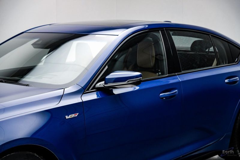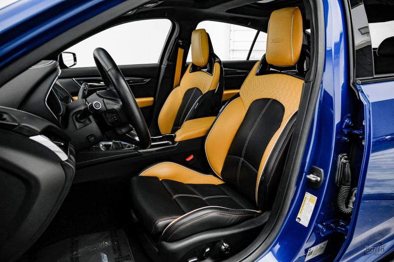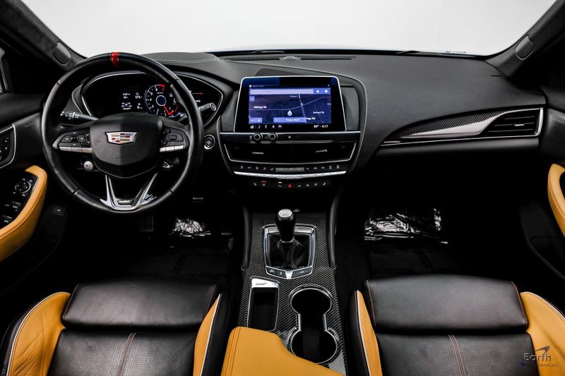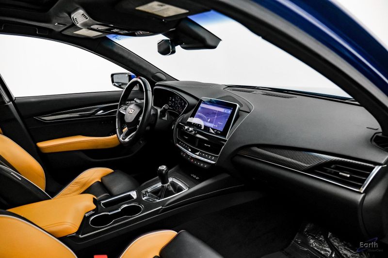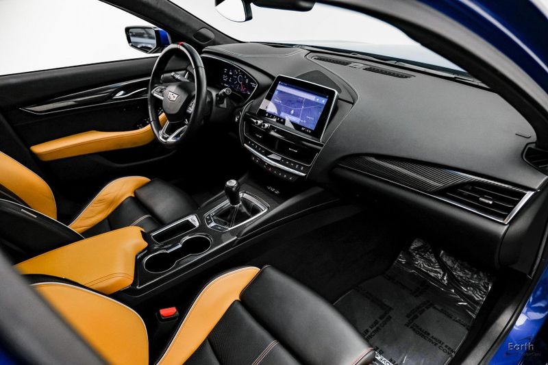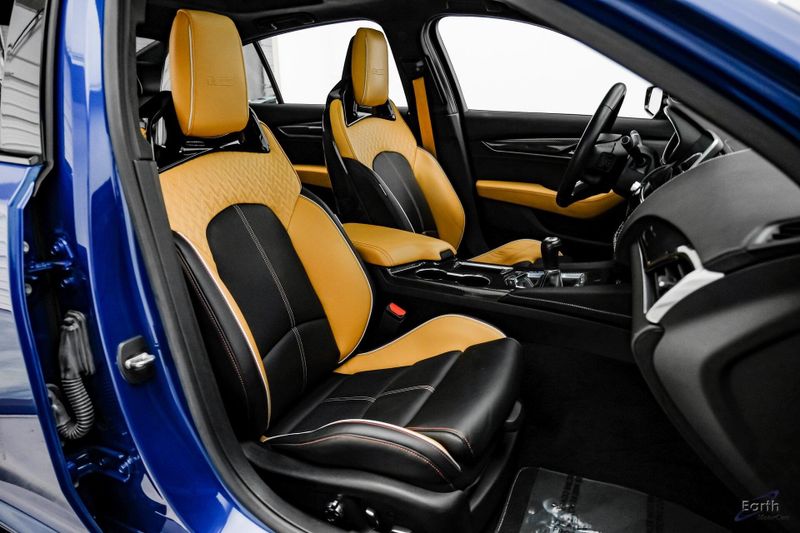 Earth MotorCars is Proud to offer this amazing: 2022 Cadillac CT5 V-Series BLACKWING Carbon Brakes Ultraview Moonroof 6-Speed Manual! Clean CARFAX. Wave Metallic $625.00, NATURAL TAN W/ JET BLACK 6,090.00 ACCENTS W/ FULL SEMI-ANILINE LEATHER SEATS W/ CUSTOM QUILTING AND CARBON FIBER FRONT SEATBACKS, Rare 6-SPEED MANUAL!, 3.73 Rear Axle Ratio, 4-Wheel Disc Brakes, ABS brakes, Air Conditioning, AKG Premium 16-Speaker System, Apple CarPlay/Android Auto, Auto High-beam Headlights, Auto-dimming door mirrors, Auto-dimming Rear-View mirror, Automatic Emergency Braking, Automatic temperature control, Brembo 4-Wheel Antilock Performance Disc Brakes, Bumpers: body-color, Carbon Ceramic Brakes, Dual front impact airbags, Dual front side impact airbags, Electronic Cruise Control w/Set & Resume Speed, Electronic Stability Control, Exterior Parking Camera Rear, Front & Rear Park Assist, Front Bucket Seats, Front Center Armrest, Full Semi-Aniline Leather Seats, Heads-Up Display, Illuminated entry, Inside Rear-View Auto-Dimming Mirror, Navigation System, Performance Data & Video Recorder, Preferred Equipment Group 1SV, Rain sensing wipers, Rear window defroster, Security system, Speed control, Steering wheel mounted audio controls, Sueded Microfiber-Wrapped Interior Trim Package, Traction control, UltraView Dual Pane Sunroof, Variably intermittent wipers, Wheels: 19'' Alum Alloy w/Polished/Dk Android Finish.