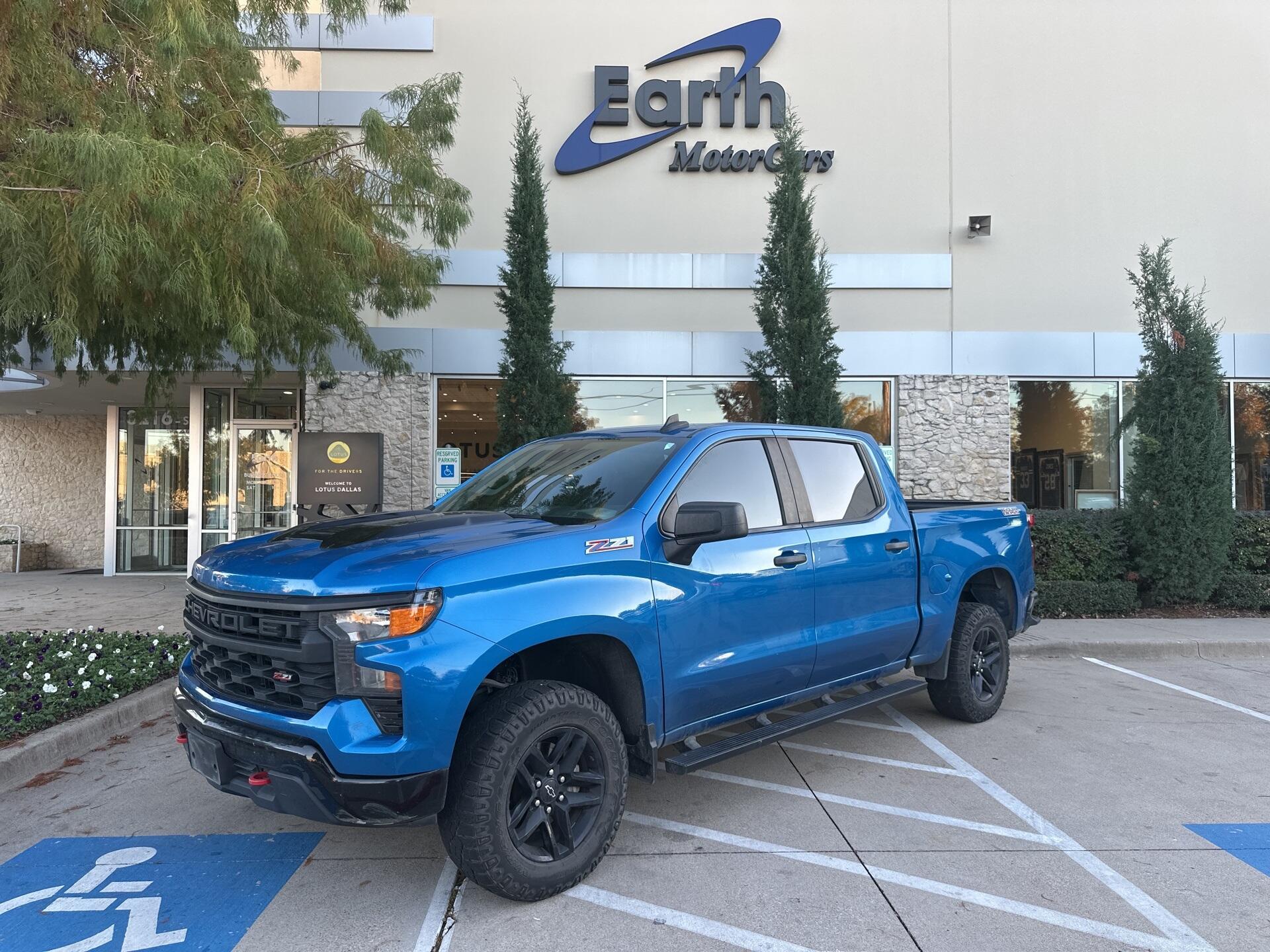 Earth MotorCars is Proud to offer this amazing: 2022 Chevrolet Silverado 1500 Custom Trail Boss 5.3L V8 Dark Essentials Package CARFAX One-Owner. Clean CARFAX. CLEAN AUTOCHECK REPORT, 5.3L ECOTEC3 V8 W/O DFM 1,795.00, GLACIER BLUE METALLIC 395.00, 10-Speed Automatic, 4WD, Black Cloth, 10-Way Power Driver Seat w/Lumbar, 120-Volt Bed Mounted Power Outlet, 120-Volt Instrument Panel Power Outlet, 3.5'' Monochromatic Display Driver Info Center, 4-Wheel Disc Brakes, ABS brakes, Air Conditioning, Auto-Locking Rear Differential, Black Name Plates (LPO), Black Work Step (LPO), Bluetooth For Phone, Chevrolet Connected Access Capable, Color-Keyed Carpeting Floor Covering, Compass, Custom Convenience Package, Dark Essentials Package (LPO), Deep-Tinted Glass, Dual front impact airbags, Dual front side impact airbags, Dual Rear USB Ports (Charge Only), Electric Rear-Window Defogger, Electrical Steering Column Lock, Electronic Cruise Control, EZ Lift Power Lock & Release Tailgate, Front Rubberized Vinyl Floor Mats, HD Rear Vision Camera, Hitch Guidance, LED Cargo Area Lighting, Manual Tilt Wheel Steering Column, OnStar & Chevrolet Connected Services Capable, Performance Red Recovery Hooks, Power Front Windows w/Driver Express Up/Down, Power Front Windows w/Passenger Express Down, Power Rear Windows w/Express Down, Preferred Equipment Group 2CX, Rear 60/40 Folding Bench Seat (Folds Up), Rear Rubberized-Vinyl Floor Mats, Remote Keyless Entry, Remote Vehicle Starter System, SiriusXM Radio, Standard Tailgate, Theft Deterrent System (Unauthorized Entry), Traction control, Trailering Package, Wheels: 18'' x 8.5'' Black Painted Aluminum, Wi-Fi Hot Spot Capable, Wireless Phone Projection.