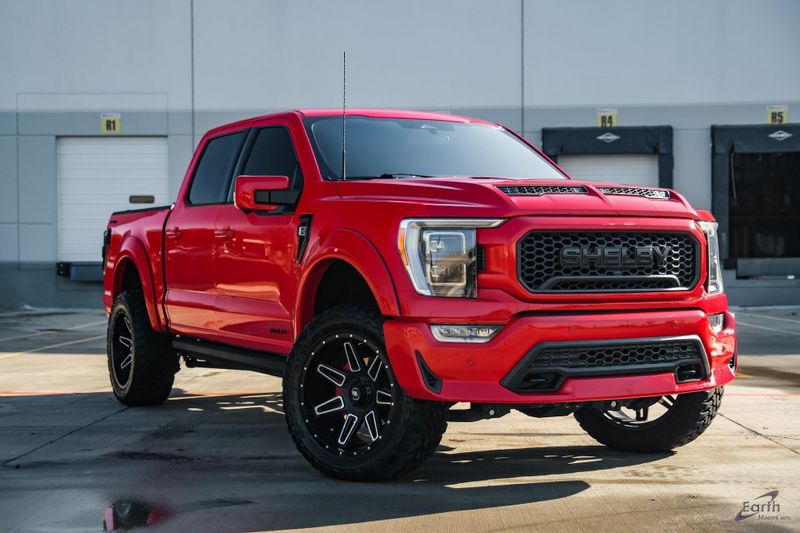 Earth MotorCars is Proud to offer this amazing: 2022 Ford F-150 Lariat 775 HP Shelby Super Snake Shelby Super Snake, SHELBY Tuned BORLA Performance Exhaust, Shelby by FOX suspension system, Shelby by BDS 3'' lift, Carbon fiber aesthetic interior trim kit, Custom Shelby Leather Seats, 4WD, 2nd Row Heated Seats, 360 Degree Camera, 4-Wheel Disc Brakes, 6'' Bright Polished Running Board, 7 Speakers, Accent-Color Angular Step Bars, Adjustable pedals, Air Conditioning, AM/FM radio: SiriusXM with 360L, Auto High-beam Headlights, Auto-dimming Rear-View mirror, Body-Color Front & Rear Bumpers, Box Side Decals, Brake assist, Chrome 2-Bar Grille w/4 Minor Bars, Chrome Door & Tailgate Handles w/Body-Color Bezel, Chrome Single-Tip Exhaust, Chrome Skull Caps on Exterior Mirrors, Class IV Trailer Hitch Receiver, Compass, Connected Built-In Navigation, Dark 2-Bar & 1 Minor Bar Style Grille, Delay-off headlights, Driver door bin, Driver vanity mirror, Dual front side impact airbags, Electronic Locking w/3.73 Axle Ratio, Electronic Stability Control, Emergency communication system: SYNC 4 911 Assist, Equipment Group 502A High, Evasive Steering Assist, Extended Range 36 Gallon Fuel Tank, Exterior Parking Camera Rear, Ford Co-Pilot360 Assist 2.0 (DISC), Front fog lights, Front reading lights, Front wheel independent suspension, Fully automatic headlights, Heated Steering Wheel, Illuminated entry, Integrated Trailer Brake Controller, Intelligent Adaptive Cruise Control w/Stop & Go, Intersection Assist, Lariat Chrome Appearance Package, Lariat Sport Appearance Package, Leather-Trimmed Bucket Seats, LED Projector w/Dynamic Bending Headlamps, Memory seat, Navigation system: Connected Navigation, Onboard 400W Outlet, Pedal memory, Power Glass Sideview Mirr w/Chrome Skull Caps, Power Tilt/Telescoping Steering Column w/Memory, Pro Trailer Backup Assist, Radio: B&O Sound System by Bang & Olufsen, Rain-Sensing Wipers, Remote keyless entry, Security system, Speed Sign Recognition, Steering wheel mounted audio controls, Traction control, Trailer Tow Package, Twin Panel Moonroof, Universal Garage Door Opener, Voltmeter, Wheels: 20'' Gloss Black Painted Aluminum, Wireless Charging Pad.