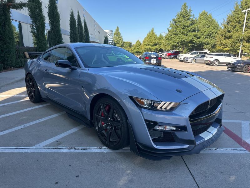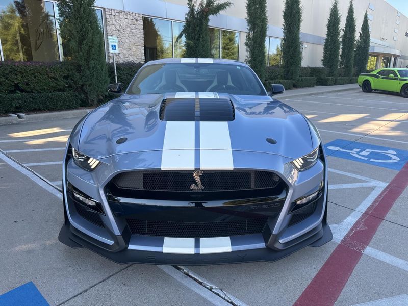 Earth MotorCars is Proud to offer this amazing: 2022 Ford Mustang Shelby GT500 Heritage - Carbon Fiber Track Pack Clean CARFAX. 16 Speakers, 4-Wheel Disc Brakes, ABS brakes, Adaptive suspension, Adjustable Strut Top Mounts, Air Conditioning, Auto-dimming Rear-View mirror, BLIS Blind Spot Information System, Bumpers: body-color, Carbon Fiber Track Pack, Climate Controlled Front Seats, Compass, Driver vanity mirror, Dual front impact airbags, Electronic Stability Control, Exposed Carbon Fiber GT4 Track Wing, Exposed Carbon Fiber Instrument Panel, Exterior Parking Camera Rear, Four wheel independent suspension, Garage door transmitter, GT500 Heritage Edition w/Painted Stripes, Heated Mirrors, High-Intensity Discharge Headlights, Navigation System, Outside temperature display, Painted Over-the-Top Racing Stripes, Passenger door bin, Passenger vanity mirror, Power passenger seat, Radio: B&O Sound System by Bang & Olufsen, RECARO Leather-Trimmed Seats w/Miko Suede, Security system, Speed control, Split folding rear seat, Spoiler, Sport steering wheel, SYNC 3 Communications & Entertainment System, Technology Package, Telescoping steering wheel, Variably intermittent wipers, Ventilated front seats, Voice-Activated Touch-Screen Navigation System, Wheel Locking Kit, Wheels: 20'' Exposed Carbon Fiber.