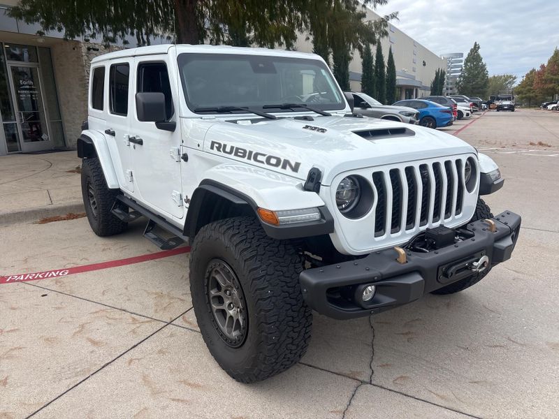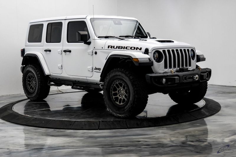 Earth MotorCars is Proud to offer this amazing: 2022 Jeep Wrangler Unlimited Rubicon 392 Xtreme Recon 35'' Tire Package Clean CARFAX. 35'' Tire Rubicon 392 Suspension (DISC), 4-Wheel Disc Brakes, 4.56 Rear Axle Ratio (DISC), 7 & 4 Pin Wiring Harness, 97 MPH Vehicle Max Speed Calibration, ABS brakes, Air Conditioning, Auto High-beam Headlights, Auto-dimming Rear-View mirror, Automatic temperature control, Class II Receiver Hitch, Corning Gorilla Glass, Dual front impact airbags, Dual front side impact airbags, Electronic Stability Control, Freedom Panel Storage Bag, Front Bucket Seats, Fully automatic headlights, Glass rear window, Heated front seats, Illuminated entry, Integrated roll-over protection, Leather Trimmed Bucket Seats, MOPAR Hinge-Gate Reinforcement, Navigation System, ParkView Rear Back-Up Camera, Quick Order Package 27X, Radio: Uconnect 4C Nav w/8.4'' Display, Rear Window Defroster, Rear Window Wiper/Washer, Rubicon 392 Suspension, Security system, Speed control, Steering wheel mounted audio controls, Tachometer, Traction control, Trailer Tow Package, Variably intermittent wipers, Voltmeter, Wheel Flare Extensions, Wheels: 17'' x 8'' Bronze Beadlock Capable (DISC), Xtreme Recon 35'' Tire Package (DISC).