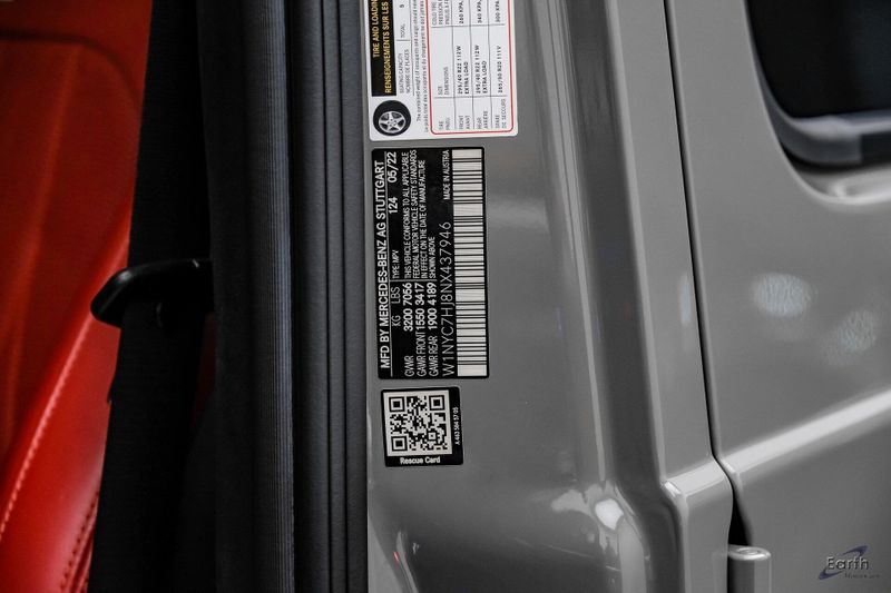 Earth MotorCars is Proud to offer this amazing: 2022 Mercedes-Benz G-Class G 63 AMG 4MATIC Clean CARFAX. 15 Speakers, 4-Wheel Disc Brakes, ABS brakes, Adaptive suspension, Air Conditioning, AMG Night Package, AMG Night Package (P56), Apple CarPlay/Android Auto, Armrests in Exclusive Nappa Leather, Auto-dimming Rear-View mirror, Axle Ratio: TBD, Black Brake Calipers, Black Under Guard Protection, Brush Guard in Black, Burmester Surround Sound System, Drive-Dynamic Multicontour Front Seats w/Massage, Electronic Stability Control, Emergency communication system: Mercedes-Benz Emergency Call Service, ENERGIZING Comfort Control, Exclusive Interior Package, Exclusive Interior Package Plus, Exclusive Nappa Leather Trim, Exterior Mirrors in Obsidian Black, Exterior Parking Camera Rear, Front Ventilated Seats, G manufaktur Front Passenger Grab Handle Badge, G manufaktur Interior Package Plus, Garage door transmitter: HomeLink, Genuine wood console insert, Gunmetal Grey Front Grille, Head restraints memory, Heated Front Seats, Heated rear seats, Illuminated entry, Memory seat, Nappa Leather Trim, Navigation System, Power door mirrors, Power moonroof, Radio data system, Rapid Heating Front Seats, Rear fog lights, Seat Comfort Package, Security system, Spare Wheel Cover in Obsidian Black, Speed control, Speed-sensing steering, Telescoping steering wheel, Turn signal indicator mirrors, Upper & Lower Dashboard in Nappa Leather, Variably intermittent wipers, Wheels: 22'' AMG Matte Black Cross-Spoke Forged.