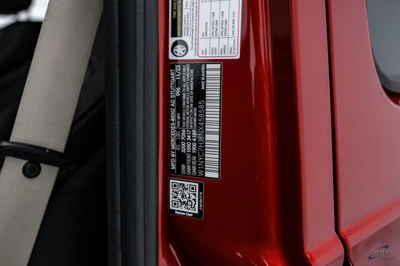 Earth MotorCars is Proud to offer this amazing: 2022 Mercedes-Benz G-Class G 63 AMG Exclusive Interior Package Plus 4MATIC ABS brakes, Active Cruise Control, Adaptive suspension, Air Conditioning, Alloy wheels, Armrests in Exclusive Nappa Leather, Auto High-beam Headlights, Auto-dimming door mirrors, Automatic temperature control, Bodyside moldings, Bumpers: body-color, Burmester Surround Sound System, Compass, Drive-Dynamic Multicontour Front Seats w/Massage, Dual front impact airbags, Dual front side impact airbags, Electronic Stability Control, ENERGIZING Comfort Control, Exclusive Interior Package Plus, Exclusive Nappa Leather Trim, Exterior Parking Camera Rear, Front Bucket Seats, Front Center Armrest, Front Ventilated Seats, G manufaktur Front Passenger Grab Handle Badge, G manufaktur Interior Package Plus, Heated door mirrors, Heated Front Seats, Heated front seats, Heated rear seats, Illuminated entry, Knee airbag, Low tire pressure warning, Navigation System, Power moonroof, Power passenger seat, Rain sensing wipers, Rapid Heating Front Seats, Rear window defroster, Rear window wiper, Remote keyless entry, Seat Comfort Package, Security system, Spare Wheel Cover in Vehicle Color, Split folding rear seat, Steering wheel mounted audio controls, Traction control, Tri-Zone A/C, Upper & Lower Dashboard in Nappa Leather, Wheels: 22'' AMG Polished Forged Monoblock.