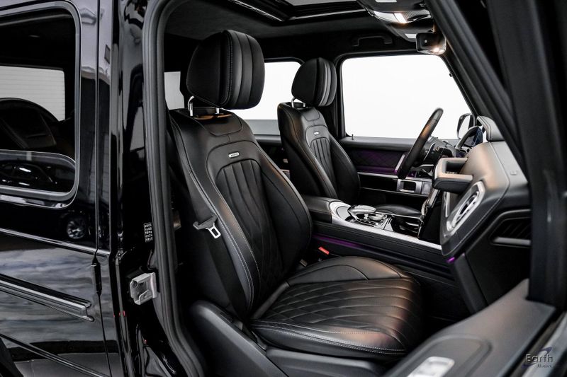Earth MotorCars is Proud to offer this amazing: 2022 Mercedes-Benz G-Class G 63 AMG 4MATIC Exclusive Interior Package Plus CARFAX One-Owner. G manufaktur Black Piano Lacquer Trim, 4-Wheel Disc Brakes, ABS brakes, Adaptive suspension, Air Conditioning, Android Auto, Apple CarPlay, Auto High-beam Headlights, Auto-dimming door mirrors, Automatic temperature control, Brake assist, Burmester Surround Sound System, Delay-off headlights, Dual front impact airbags, Dual front side impact airbags, Electronic Stability Control, Exclusive Interior Package, Exclusive Nappa Leather Trim, Exterior Parking Camera Rear, Front anti-roll bar, Front Bucket Seats, Front wheel independent suspension, G manufaktur Front Passenger Grab Handle Badge, Headlight cleaning, Illuminated entry, Knee airbag, Low tire pressure warning, Navigation System, Power moonroof, Radio: COMAND Online Navigation, Rain sensing wipers, Rear air conditioning, Rear fog lights, Rear side impact airbag, Rear window defroster, Rear window wiper, Remote keyless entry, Security system, SiriusXM Radio, Spare Wheel Cover in Obsidian Black, Speed control, Speed-sensing steering, Steering wheel memory, Steering wheel mounted audio controls, Traction control, Variably intermittent wipers, Wheels: 21'' AMG Matte Black Twin 5-Spoke Alloy.