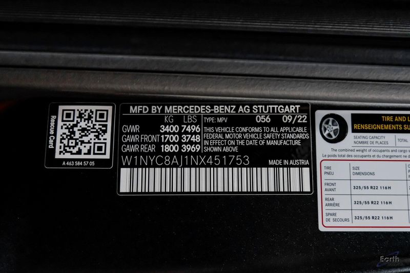 Earth MotorCars is Proud to offer this amazing: 2022 Mercedes-Benz G-Class G 63 AMG 4MATIC Squared $358,935 MSRP! CARFAX One-Owner. AMG Carbon Fiber Trim, 4-Wheel Disc Brakes, ABS brakes, Active Multicontour Front Seats w/Massage, Adaptive suspension, Air Conditioning, AMG Front Grille in Gun Metal Grey, AMG Night Package, AMG Night Package Magno, AMG Night Package Plus, Auto High-beam Headlights, Auto-dimming door mirrors, Auto-dimming Rear-View mirror, Automatic temperature control, Bodyside moldings, Brake assist, Brush Guard in Black, Brush Guard in Night Black Magno, Bumpers: body-color, Dual front impact airbags, Dual front side impact airbags, Electronic Stability Control, ENERGIZING Comfort Control, Exclusive Nappa Leather Trim, Exterior Lettering in Black, Exterior Mirrors Painted in Obsidian Black, Exterior Parking Camera Rear, Front Bucket Seats, Front Grille in Gun Metal Grey, Front Ventilated Seats, G MANUFAKTUR Front Passenger Grab Handle Badge, Heated Front Seats, Illuminated entry, Mercedes-Benz Star in Black, Mirror Housings in Night Black Magno, Power moonroof, Radio: COMAND Online Navigation, Rain sensing wipers, Rapid Heating Front Seats, Rear window defroster, Rear window wiper, Roof in Night Black Magno, Roof Painted in Obsidian Black, Seat Comfort Package, Spare Wheel Cover Painted in Night Black Magno, Steering wheel mounted audio controls, Traction control, Underguard in Black, Underguard in Night Black Magno, Wheel Arch Flares & Fr/Rr Bumpers in Black, Wheel Arch Flares & Fr/Rr Bumpers in Black Magno, Wheels: 9.5J x 22'' AMG Multi-Spoke Black.