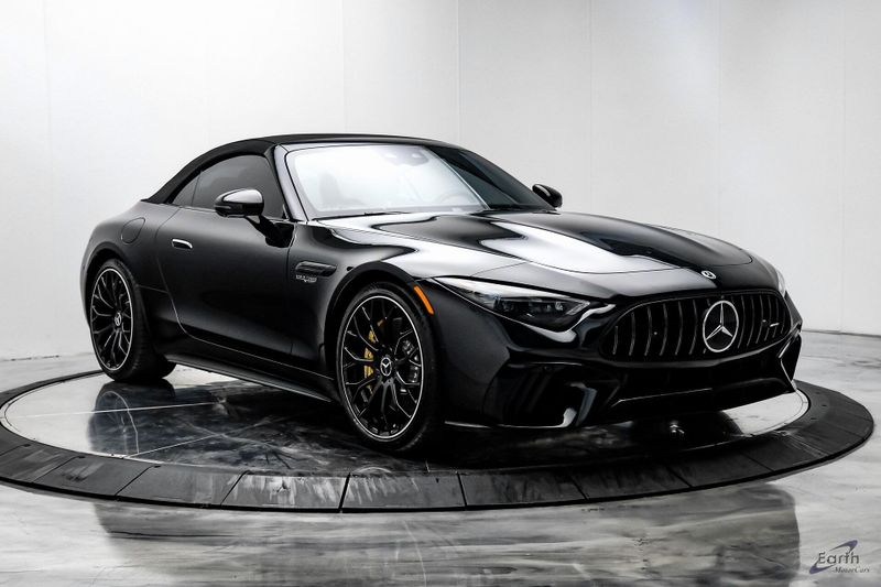 Earth MotorCars is Proud to offer this amazing: 2022 Mercedes-Benz SL-Class SL 63 AMG 4MATIC AMG Carbon Trim Night Package CARFAX One-Owner. Clean CARFAX. Headlamps and Tail Lights Darkened, Black w/Nappa Leather Upholstery, 4-Wheel Disc Brakes, ABS brakes, Air Conditioning, AMG Exterior Carbon Fiber Package, AMG Night Package II, Apple CarPlay, Auto High-beam Headlights, Auto-dimming door mirrors, Auto-dimming Rear-View mirror, Automatic temperature control, Black Microfiber Headliner, Black SoftTop, Bumpers: body-color, Burmester Surround Sound System, Dark Light Package, Driver Assistance Package, Driver vanity mirror, Dual front impact airbags, Dual front side impact airbags, Electronic Stability Control, Exterior Parking Camera Rear, Front anti-roll bar, Front Axle Lift System, Front Bucket Seats, Front Center Armrest, Garage door transmitter: HomeLink, Glass rear window, Heads-Up Display, Heated Front Seats, Heated steering wheel, Illuminated entry, Knee airbag, Low tire pressure warning, Nappa Leather Upholstery, Outside temperature display, Performance Trim Line, Power passenger seat, Rain sensing wipers, Rear window defroster, Security system, Smartphone Integration, Speed control, Tachometer, Telescoping steering wheel, Traction control, Trip computer, Turn signal indicator mirrors, Variably intermittent wipers, Ventilated front seats, Wheels: 21'' AMG Multi-Spoke Y-Design Black.