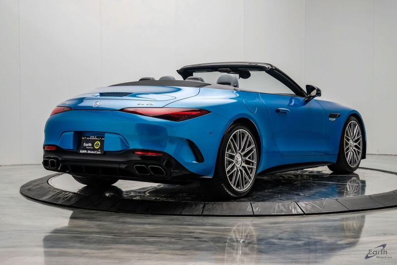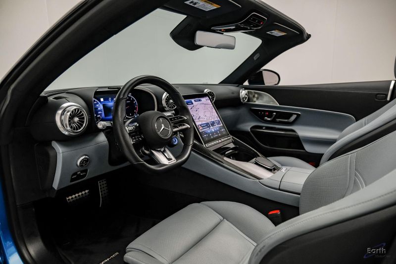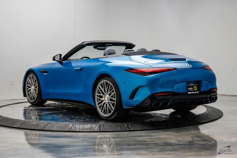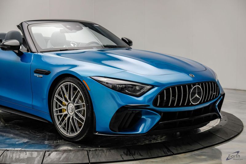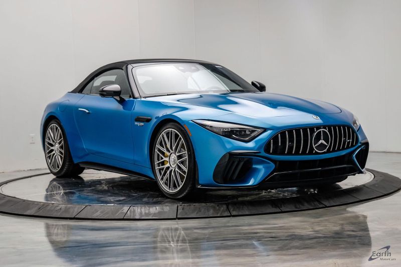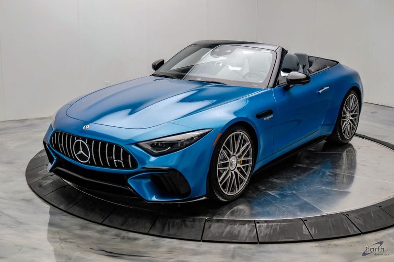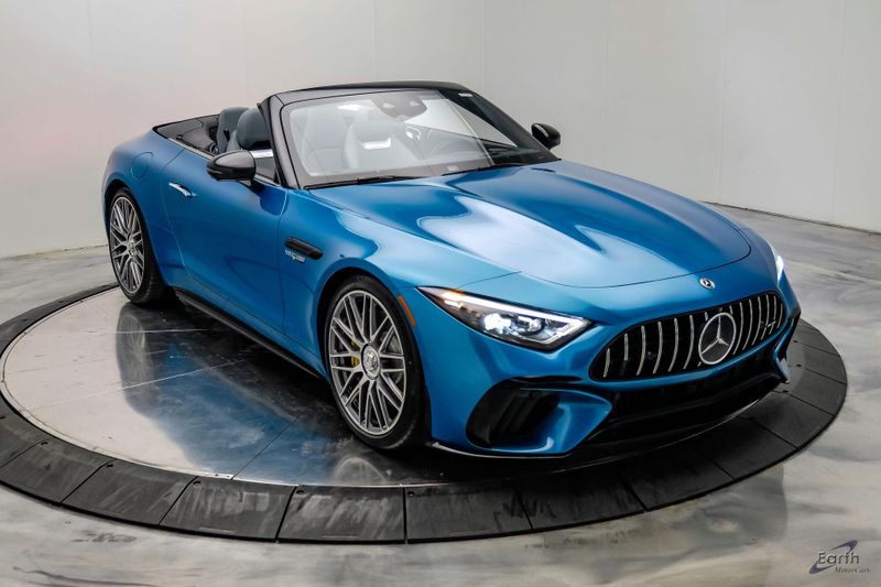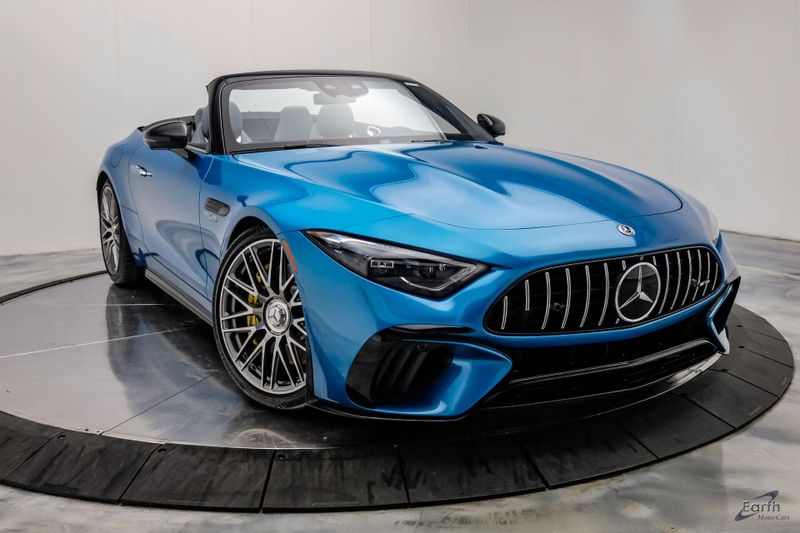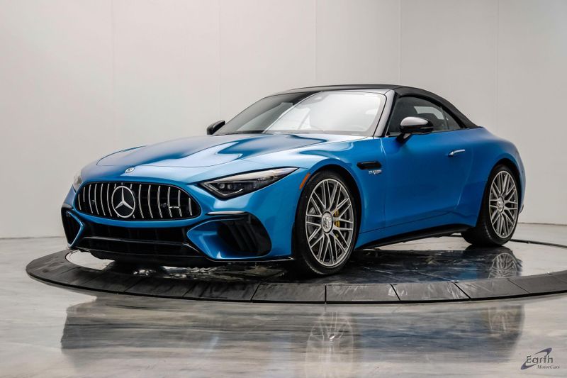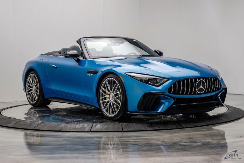 Earth MotorCars is Proud to offer this amazing: 2022 Mercedes-Benz SL-Class SL 63 AMG 4MATIC AMG Aero Pkg Front Lift CLEAN AUTOCHECK REPORT, Hyper Blue Metallic $1,750.00, Performance Trim Line $1,800.00, Sage Gray/Black w/Nappa Leather Upholstery, 4-Wheel Disc Brakes, ABS brakes, Active Multicontour Front Seats w/Massage Feature, Air Conditioning, All-Season Floor Mats (4-Pack), AMG Aerodynamic Package, AMG Exterior Carbon Fiber Package, Auto High-beam Headlights, Auto-dimming door mirrors, Automatic temperature control, Bumpers: body-color, Burmester Surround Sound System, Convertible roof lining, Driver Assistance Package, Dual front impact airbags, Dual front side impact airbags, Electronic Stability Control, Exterior Parking Camera Rear, Four wheel independent suspension, Front Axle Lift System, Front Bucket Seats, Front Center Armrest, Guard 360, Illuminated entry, Nappa Leather Upholstery, Panic alarm, Performance Trim Line, Power convertible roof, Rear window defroster, Security system, Smartphone Integration, Speed control, Steering wheel mounted audio controls, Tachometer, Traction control, Variably intermittent wipers, Wheel Locking Bolts.