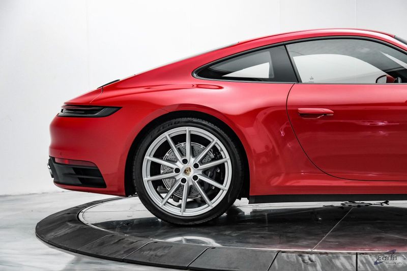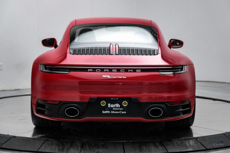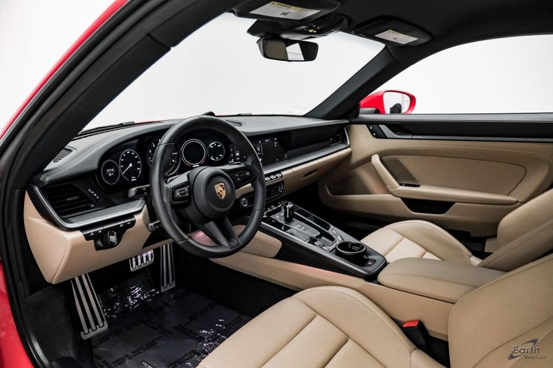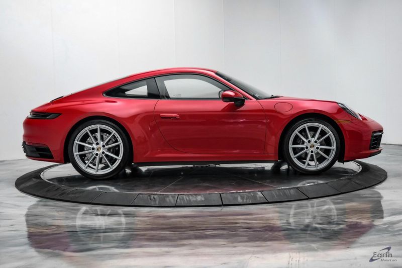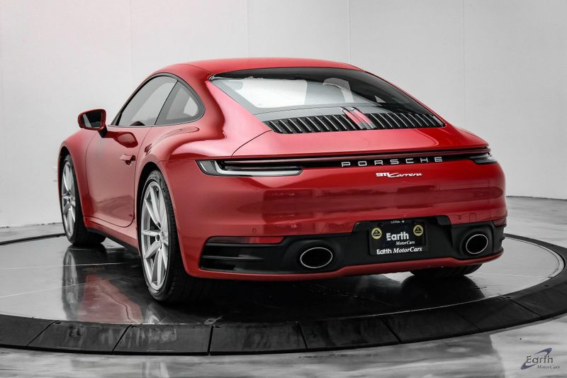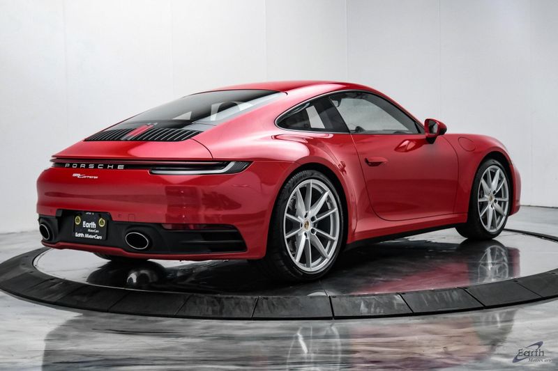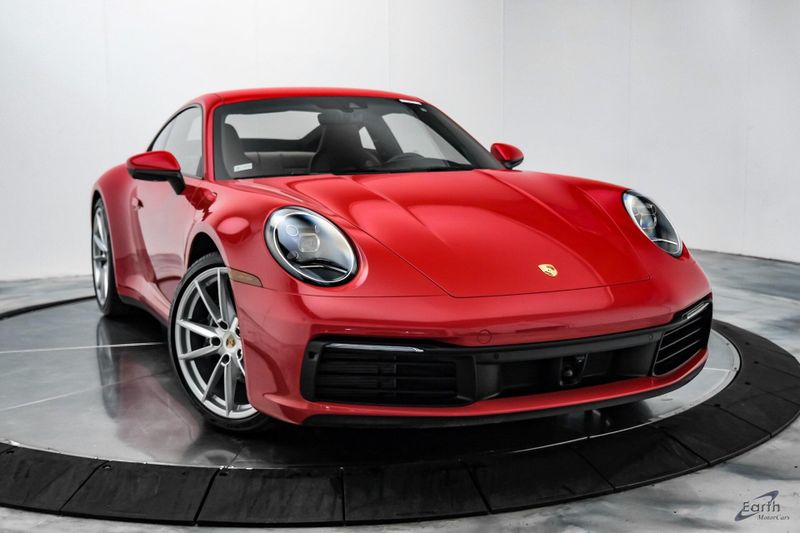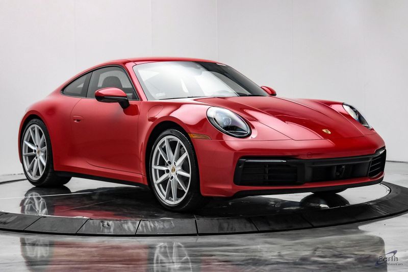 Earth MotorCars is Proud to offer this amazing: 2022 Porsche 911 Carrera Premium Pkg Sport Exhaust Sport Chrono GT Sport Steering Wheel Clean CARFAX. 4-Way Sport Seats, 4-Wheel Disc Brakes, ABS brakes, Adaptive Cruise Control, Air Conditioning, Ambient Lighting, Auto-dimming door mirrors, Auto-dimming Rear-View mirror, Automatic temperature control, BOSE Surround Sound System, Bumpers: body-color, Delay-off headlights, Dual front impact airbags, Dual front side impact airbags, Electronic Stability Control, Exterior Parking Camera Rear, Front Bucket Seats, Front Center Armrest, Fully automatic headlights, GT Sport Steering Wheel, Illuminated entry, Lane Change Assist (LCA), Leather Seat Trim w/Two-Tone Leather Interior, Pedals & Footrest in Aluminum, Porsche Communication Management, Porsche Dynamic Light System Plus (PDLS+), Power Folding Exterior Mirrors, Premium Package, Rain sensing wipers, Rear window defroster, Spoiler, Sport Chrono Package, Sport Exhaust System, Storage Package, Surround View, Tachometer, Telescoping steering wheel, Tilt steering wheel, Trip computer, Variably intermittent wipers, Ventilated Front Seats, Wheel Center Caps w/Colored Porsche Crest, Wheels: 20'' Front/21'' Rear Carrera S.
