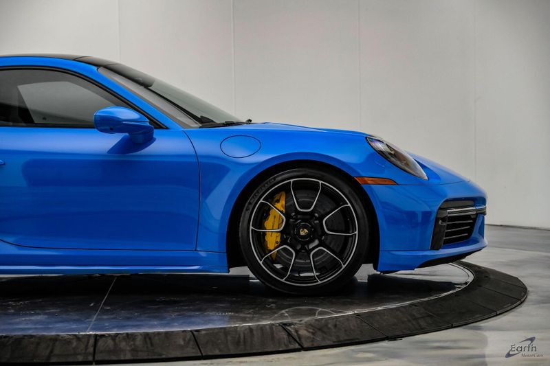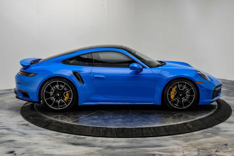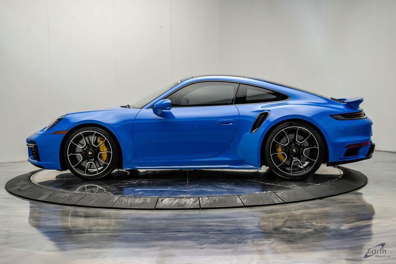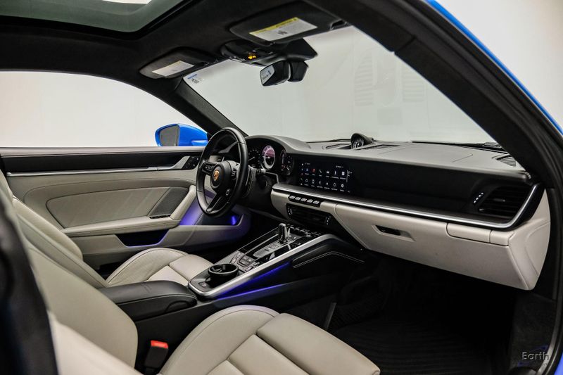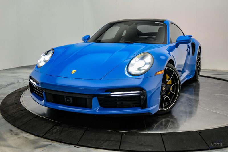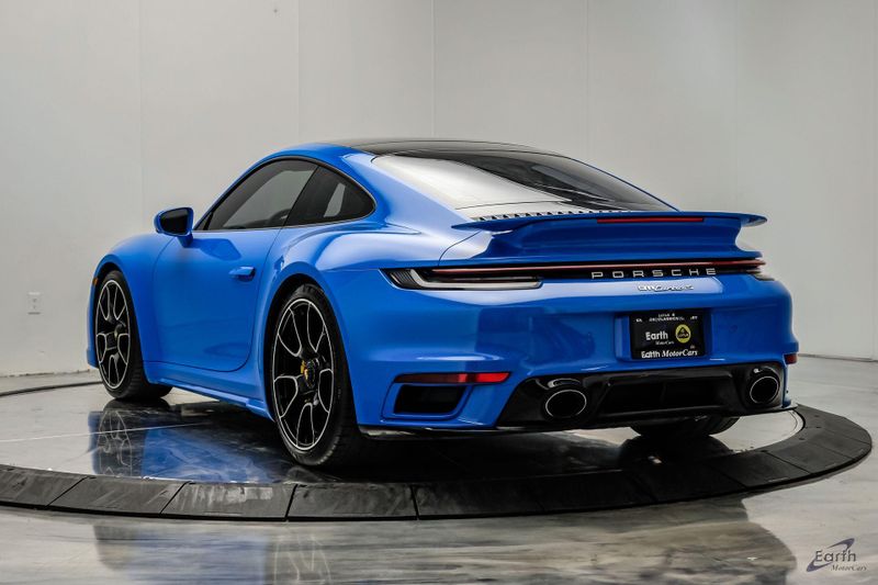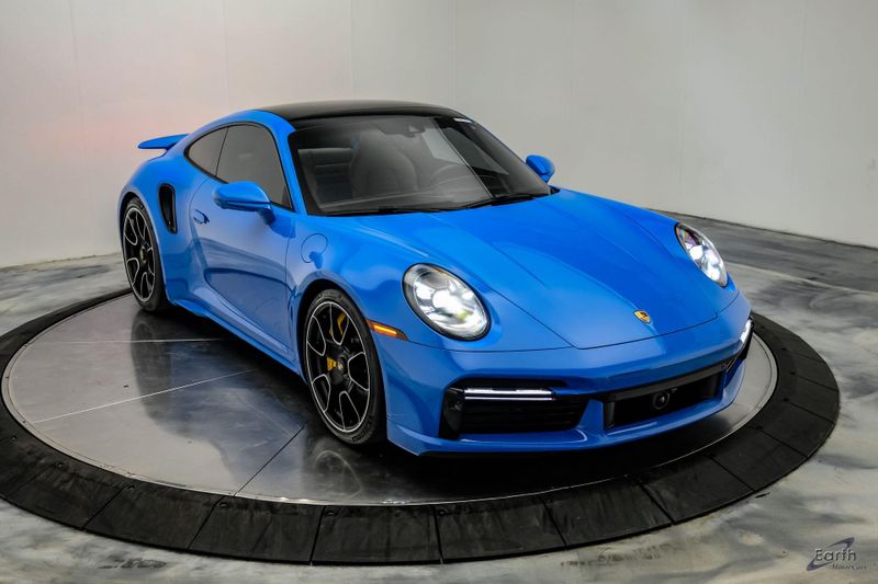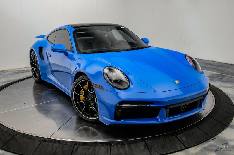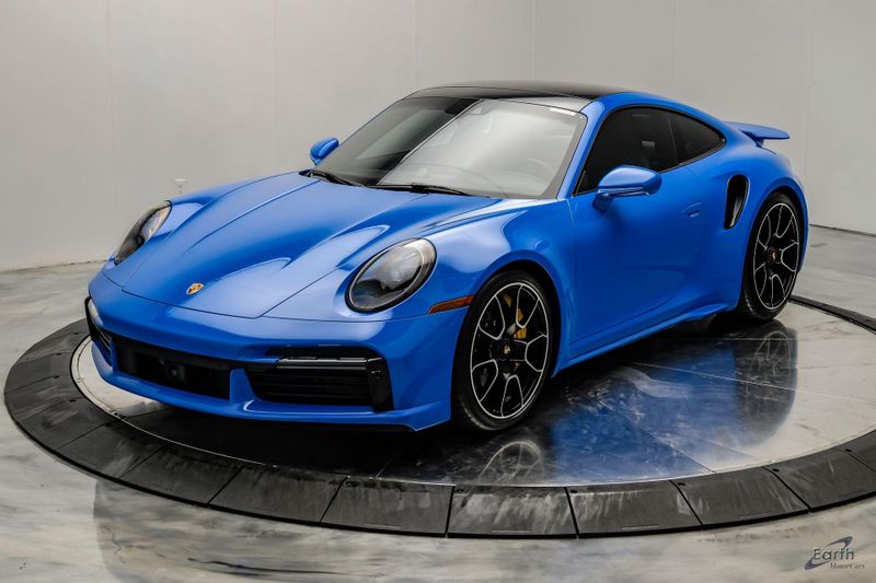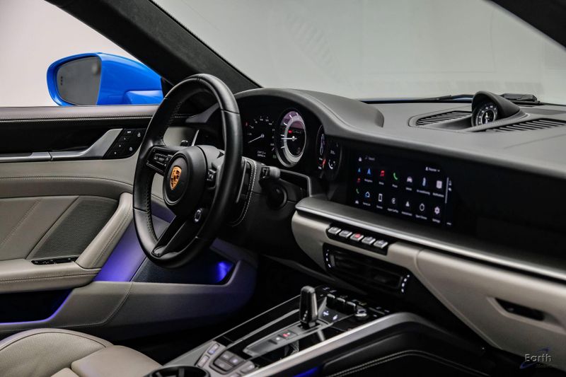 Earth MotorCars is Proud to offer this amazing: 2022 Porsche 911 Turbo S Exclusive Manufaktur Leather Seat Trim with Two-Tone Interior CARFAX One-Owner. Clean CARFAX. CLEAN AUTOCHECK REPORT, Shark Blue $3,270.00, Exclusive Manufaktur Leather Interior $10,680.00, 8-Speed Porsche Doppelkupplung (PDK) Transmission, AWD, 18-Way Adaptive Sport Seats Plus w/Memory Package, 4-Wheel Disc Brakes, ABS brakes, Adaptive suspension, Air Conditioning, Auto-dimming door mirrors, Auto-dimming Rear-View mirror, Automatic temperature control, Dual front impact airbags, Dual front side impact airbags, Electronic Stability Control, Exclusive Manufaktur Leather Interior, Exclusive Manufaktur Lthr Seat Trim w/Two-Tone Interior, Exterior Parking Camera Rear, Four wheel independent suspension, Front Bucket Seats, Front Center Armrest, Fully automatic headlights, Illuminated entry, Navigation system: Porsche Communication Management (PCM), Personalized Floor Mats w/Leather Edging, Porsche Communication Management, Power windows, Radio data system, Rear window defroster, Remote keyless entry, Spoiler, Steering wheel mounted audio controls, Tachometer, Traction control, Trip computer, Variably intermittent wipers, Wheels: 20'' Front/21'' Rear 911 Turbo S, Wireless Apple CarPlay & Wired Android Auto.