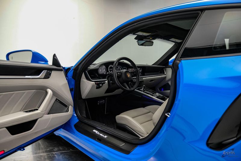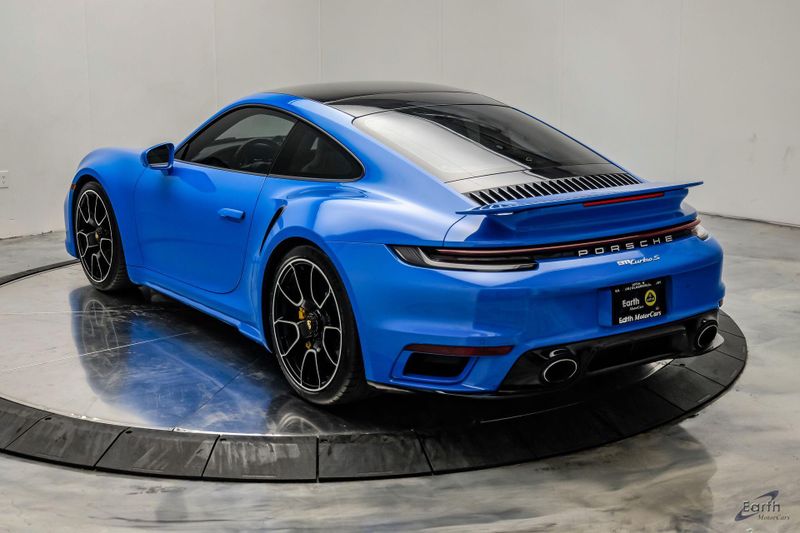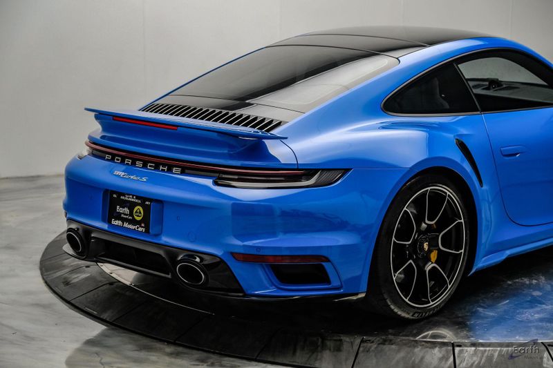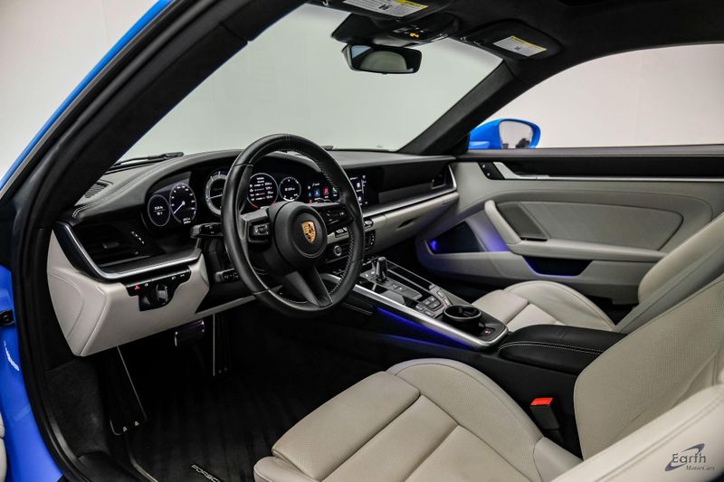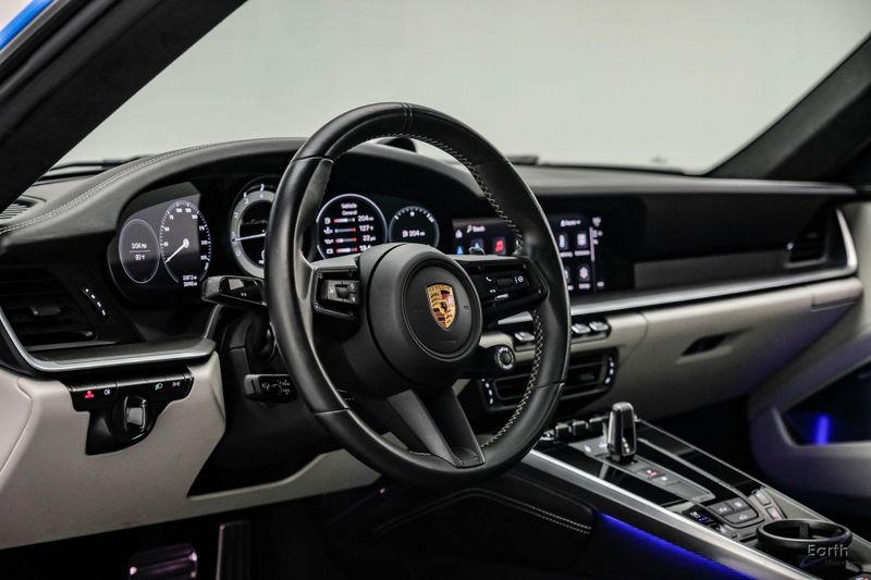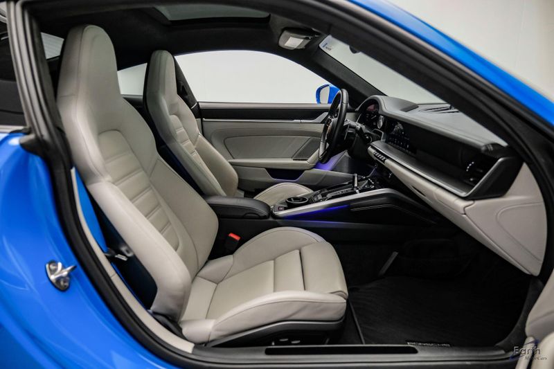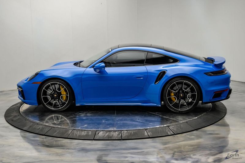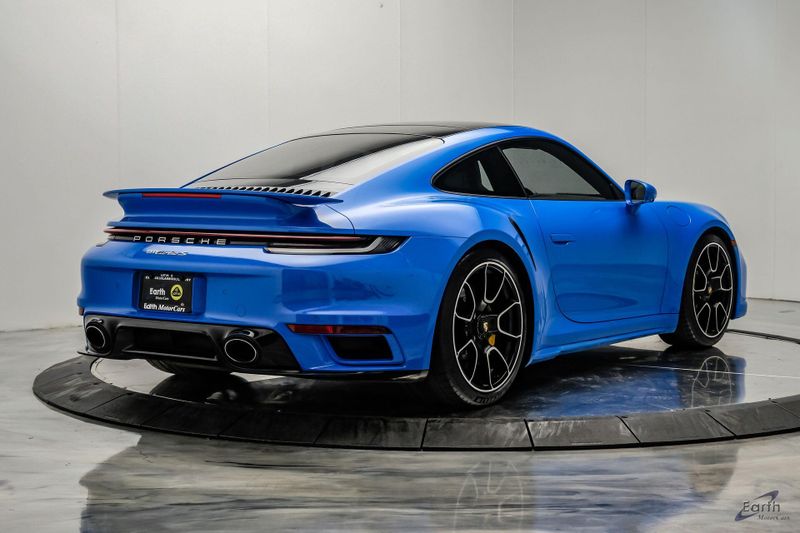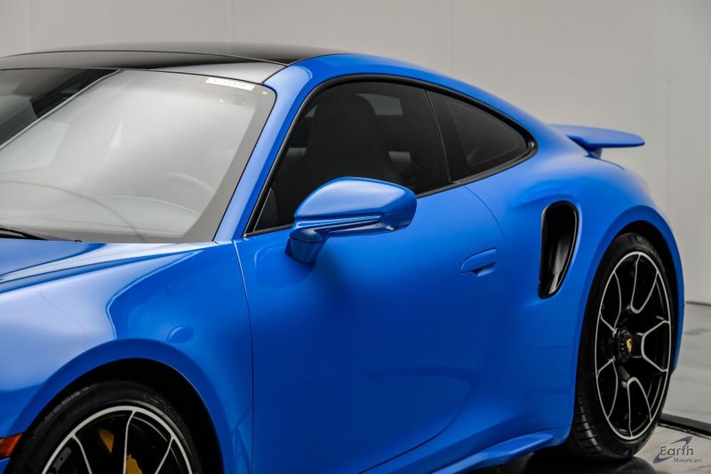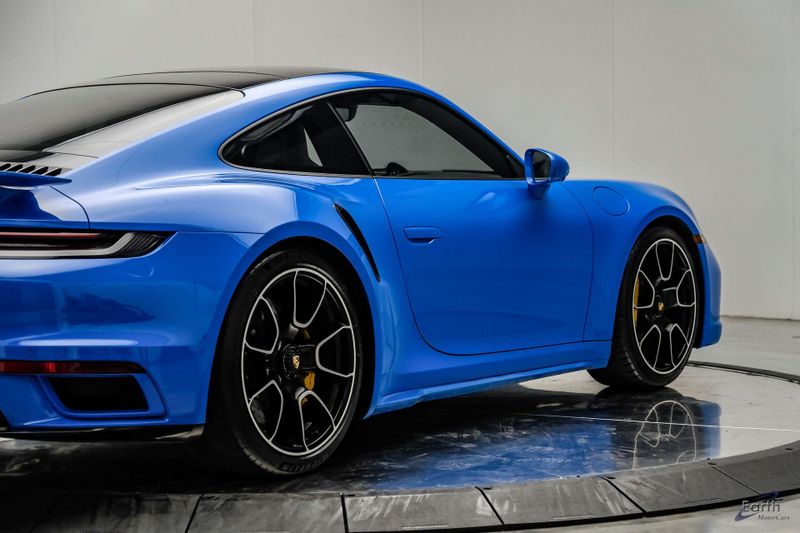 Earth MotorCars is Proud to offer this amazing: 2022 Porsche 911 Turbo S Exclusive Manufaktur Leather Seat Trim with Two-Tone Interior CARFAX One-Owner. Clean CARFAX. CLEAN AUTOCHECK REPORT, Shark Blue $3,270.00, Exclusive Manufaktur Leather Interior $10,680.00, 8-Speed Porsche Doppelkupplung (PDK) Transmission, AWD, 18-Way Adaptive Sport Seats Plus w/Memory Package, 4-Wheel Disc Brakes, ABS brakes, Adaptive suspension, Air Conditioning, Auto-dimming door mirrors, Auto-dimming Rear-View mirror, Automatic temperature control, Dual front impact airbags, Dual front side impact airbags, Electronic Stability Control, Exclusive Manufaktur Leather Interior, Exclusive Manufaktur Lthr Seat Trim w/Two-Tone Interior, Exterior Parking Camera Rear, Four wheel independent suspension, Front Bucket Seats, Front Center Armrest, Fully automatic headlights, Illuminated entry, Navigation system: Porsche Communication Management (PCM), Personalized Floor Mats w/Leather Edging, Porsche Communication Management, Power windows, Radio data system, Rear window defroster, Remote keyless entry, Spoiler, Steering wheel mounted audio controls, Tachometer, Traction control, Trip computer, Variably intermittent wipers, Wheels: 20'' Front/21'' Rear 911 Turbo S, Wireless Apple CarPlay & Wired Android Auto.