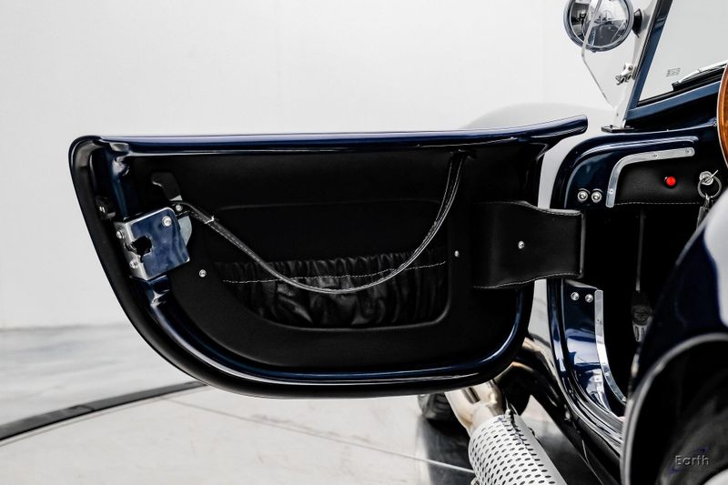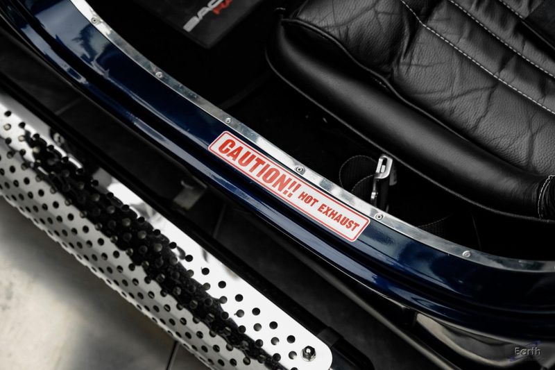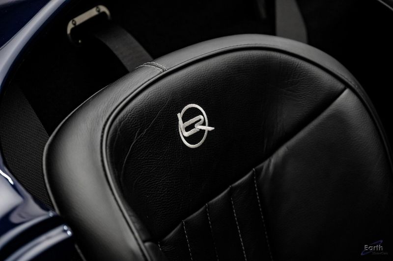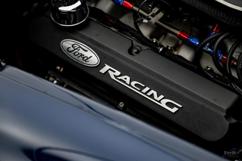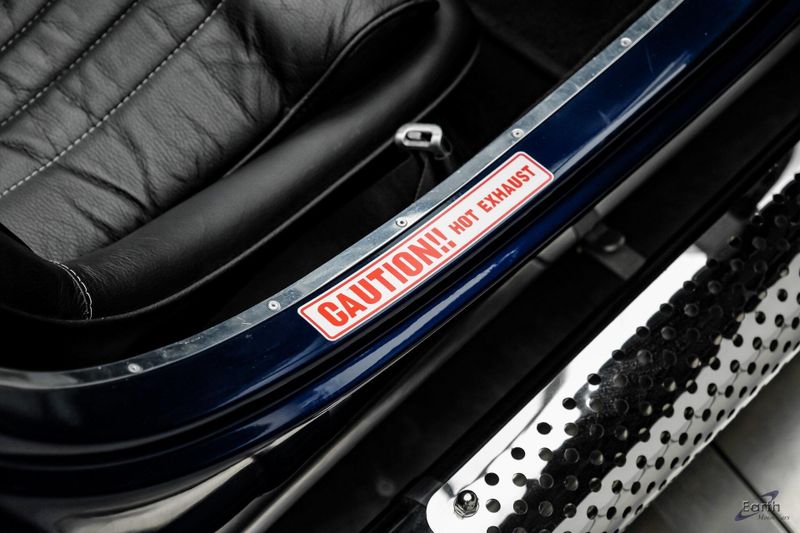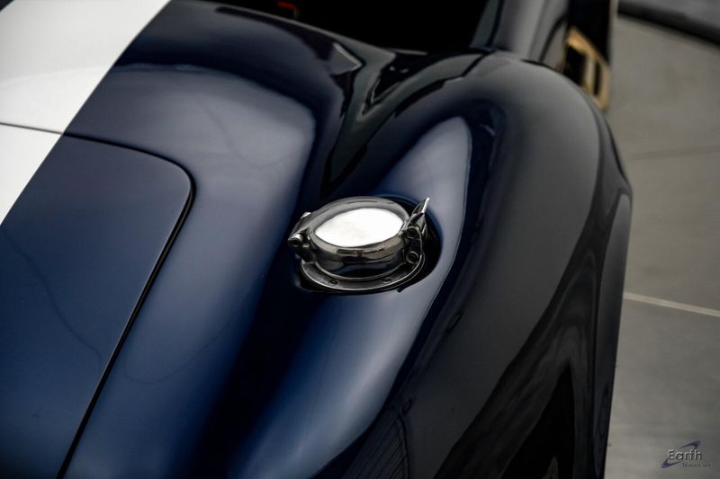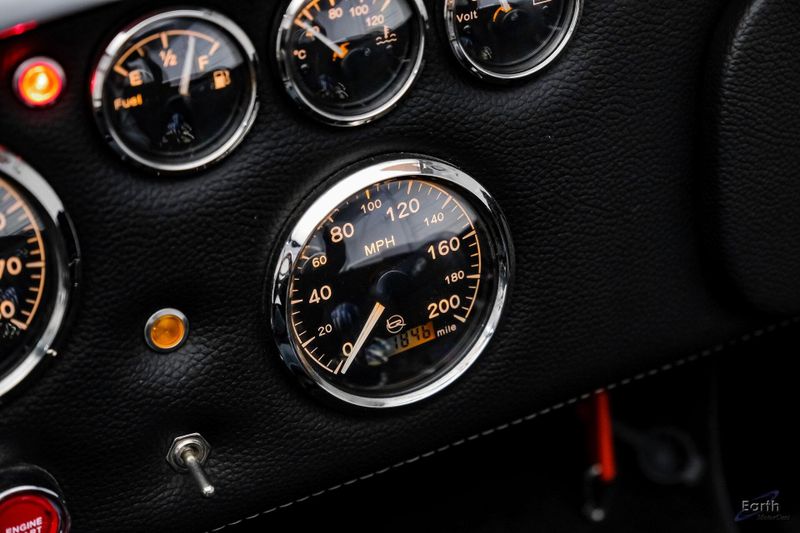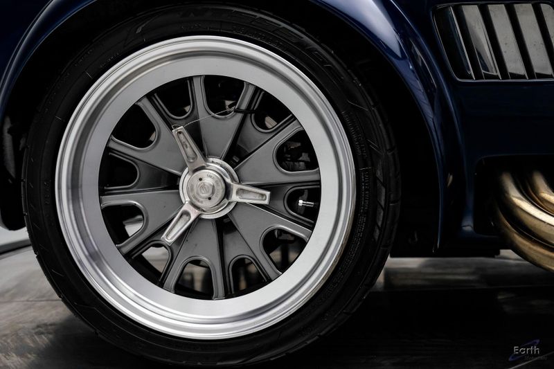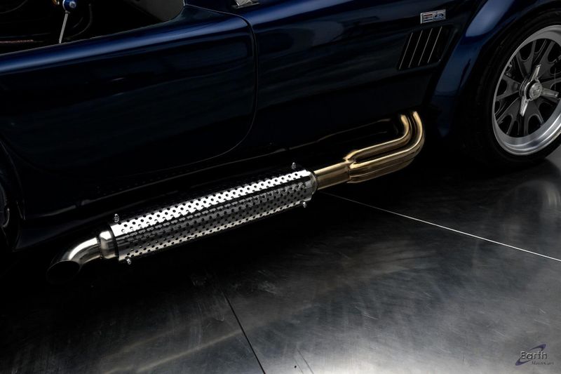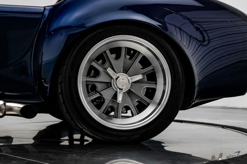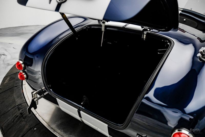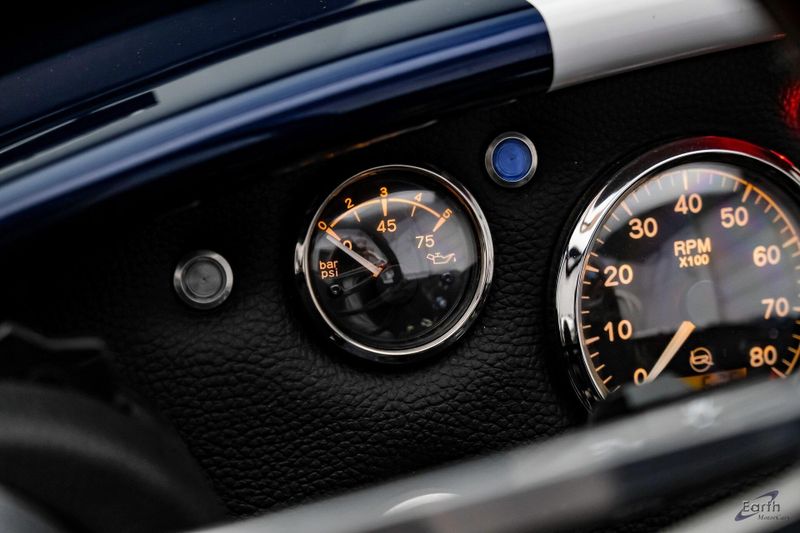 This stunning Shelby Backdraft Cobra presents in Indigo Blue Exterior with White stripes and classic Black leather interior. Classic Trim. Prestige 500hp 427 cu. in. V8, 5 speed manual transmission. Ceramic headers, Chrome engine accessories, 18 Wheels, Chrome side pipes, Cam style seat belts, Raydot Mirror, optional glove box, all new steering column mounted wiper and light controls as well as a traditional wooded steering wheel.
