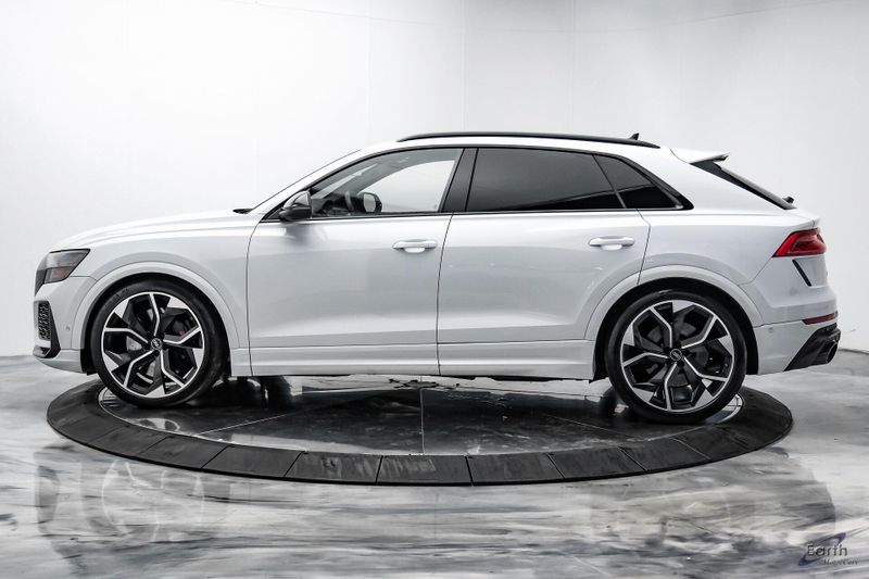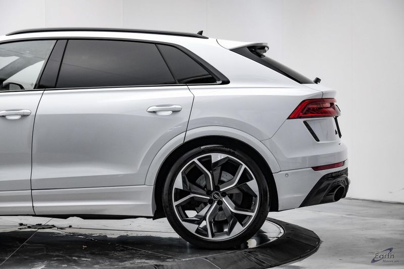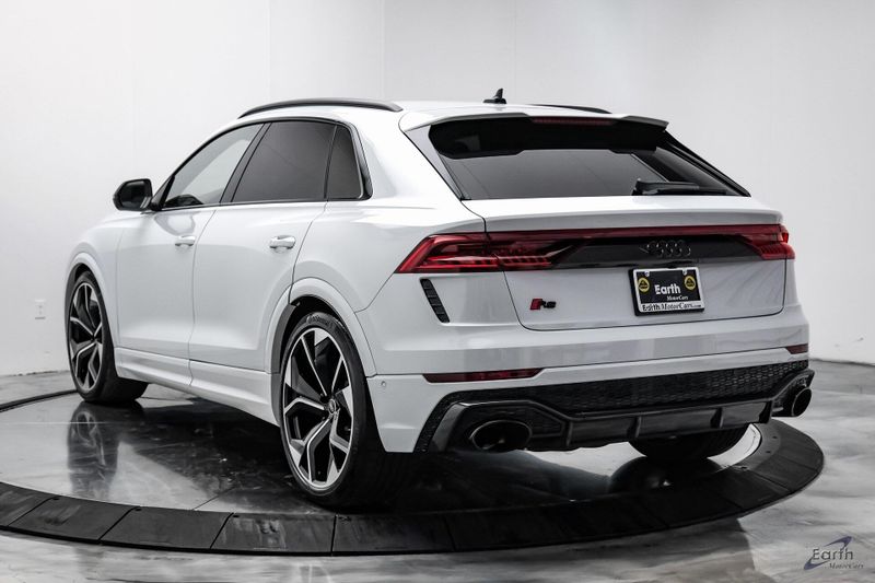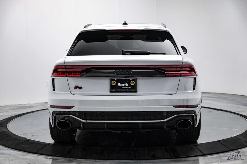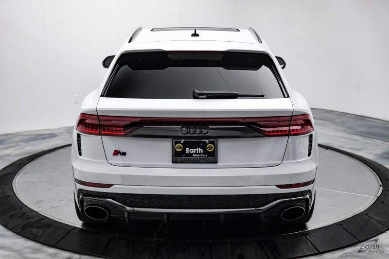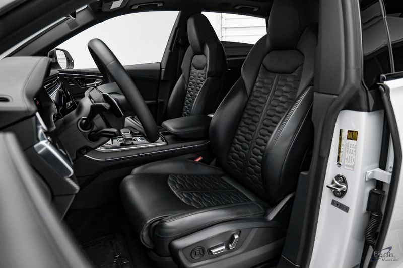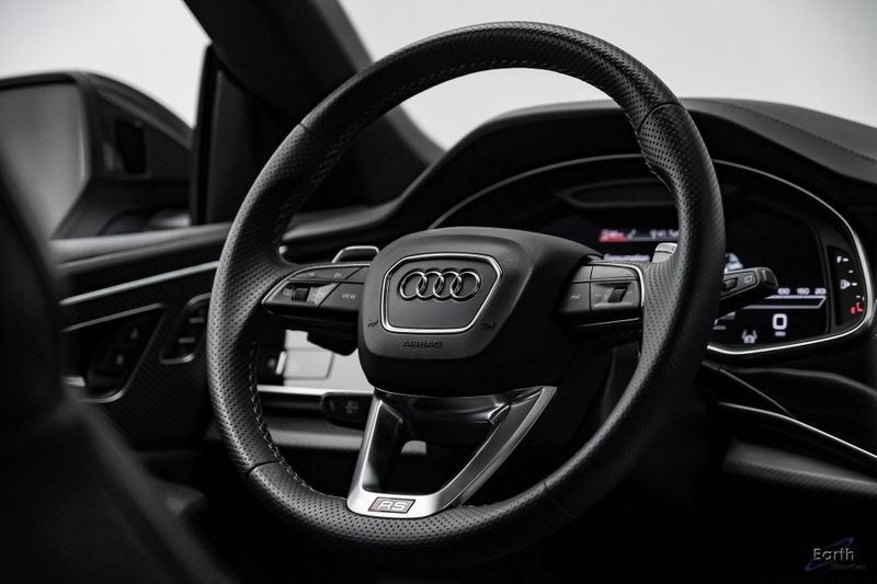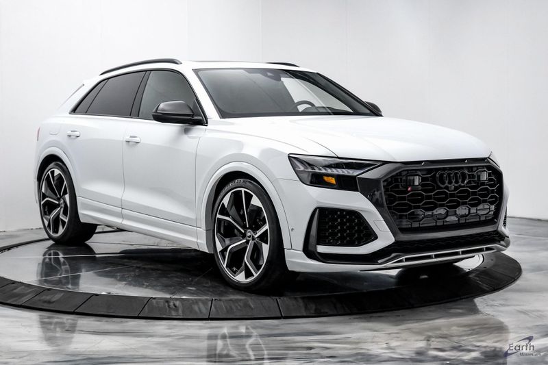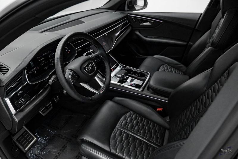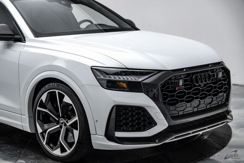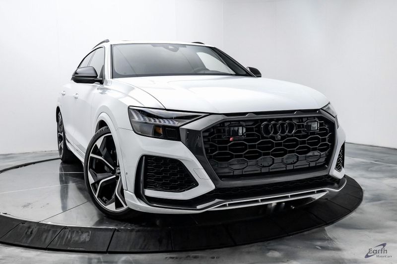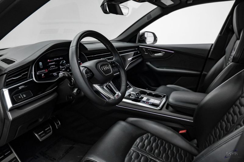 Earth MotorCars is Proud to offer this amazing: 2023 Audi RS Q8 4.0T quattro Carbon Package Black Optic Package Clean CARFAX. 4-Wheel Disc Brakes, ABS brakes, Adaptive suspension, Air Conditioning, Auto High-beam Headlights, Auto-dimming Rear-View mirror, Auto-leveling suspension, Automatic temperature control, Bang & Olufsen Premium Sound System w/3D Sound, Black Mirror Housings, Black Optic Package, Black Roof Rails, Carbon Mask & Front Bumper Inlays, Carbon Mirror Housings, Carbon Optic Package, Carbon Rear Bumper Inlay, Carbon Rear Lighting Strip, Dual front impact airbags, Dual front side impact airbags, Electronic Stability Control, Exterior Parking Camera Rear, Four wheel independent suspension, Front Bucket Seats, Front Center Armrest, Fully automatic headlights, Heated front seats, Illuminated entry, Navigation system: Audi MMI Navigation plus with Touch Response, Panic alarm, Passenger vanity mirror, Power Liftgate, Power moonroof: Panoramic, Radio data system, Rain sensing wipers, Rear air conditioning, Rear window wiper, Security system, Speed-sensing steering, Sport Exhaust System w/Black Tips, Steering wheel memory, Steering wheel mounted audio controls, Tachometer, Telescoping steering wheel, Tilt steering wheel, Traction control, Variably intermittent wipers, Ventilated front seats, Wheels: 23'' Audi Sport 5 Y-Spoke Rotor Design.
