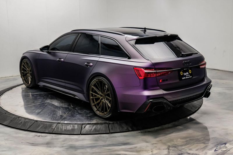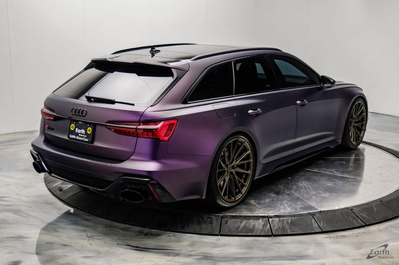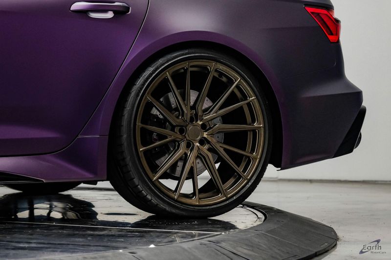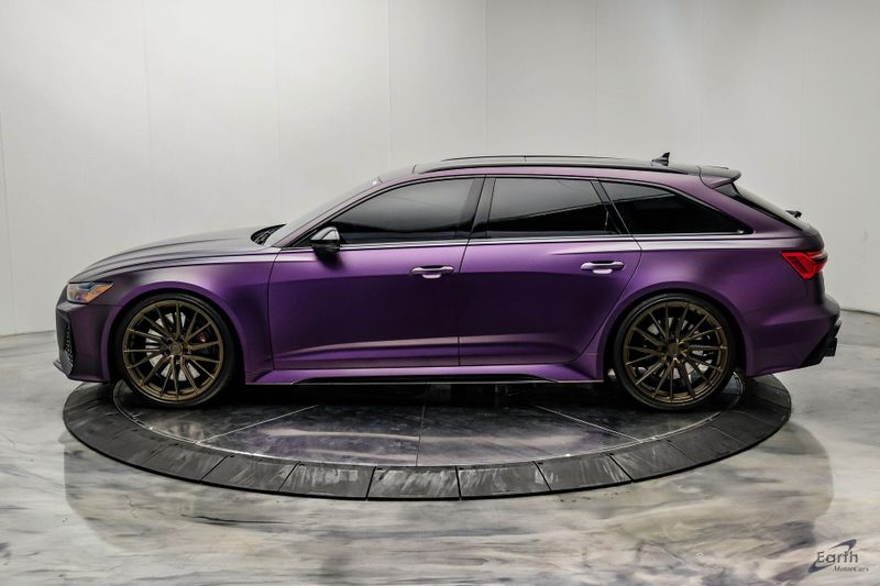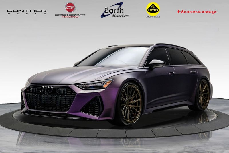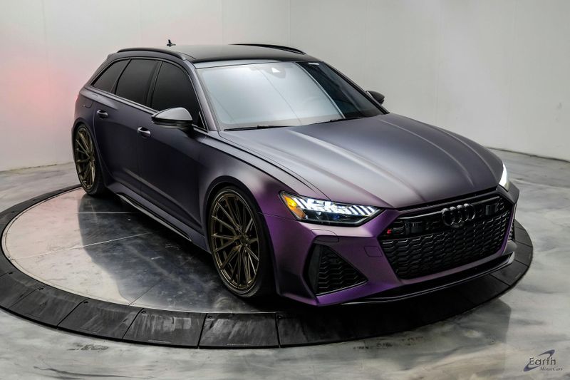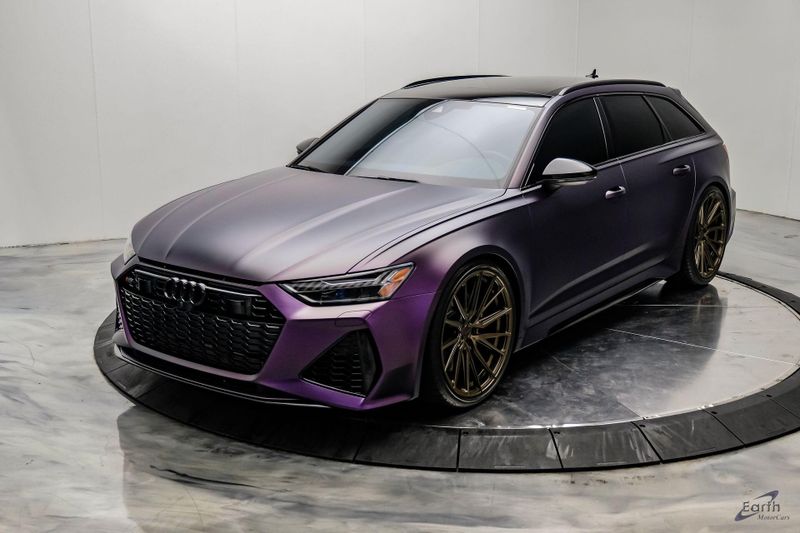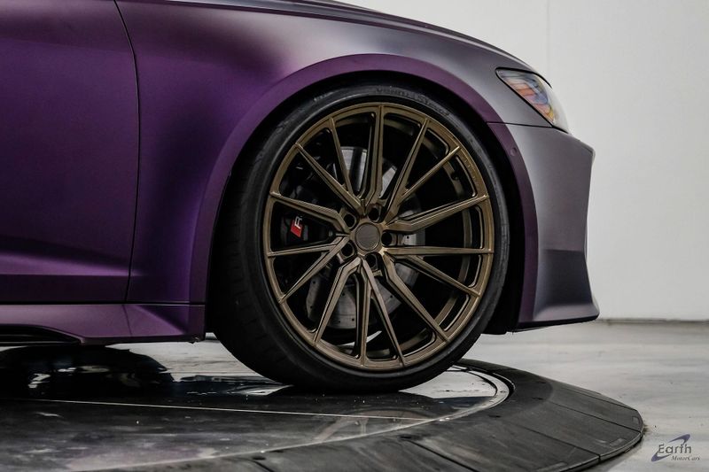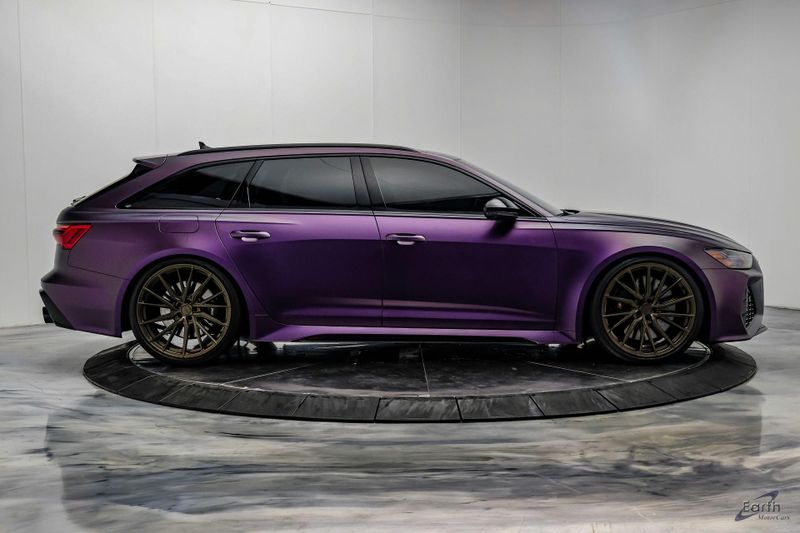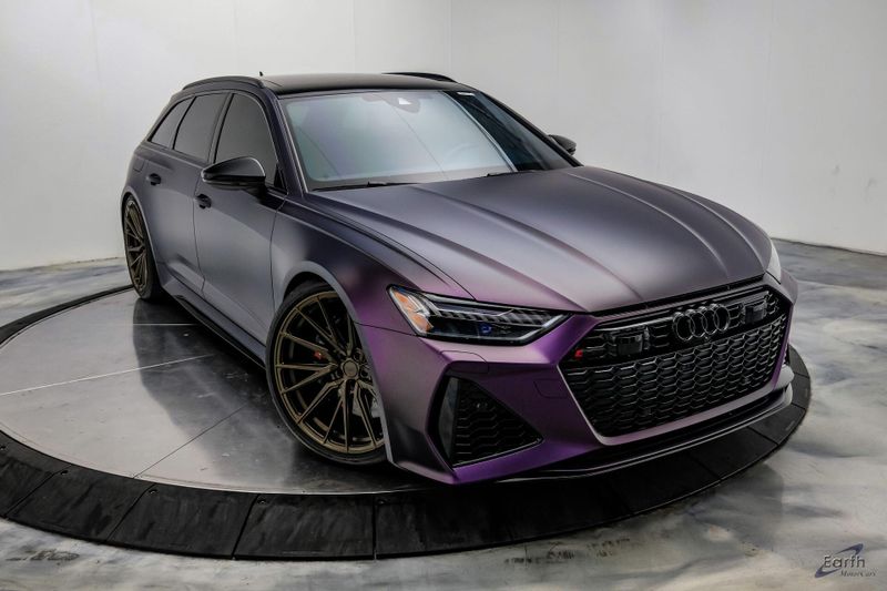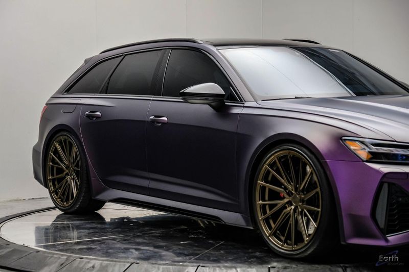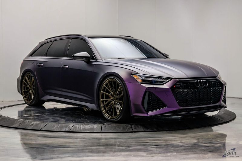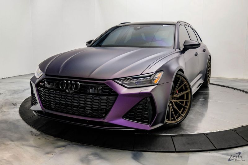Earth MotorCars is Proud to offer this amazing: 2023 Audi RS 6 4.2 Quattro Black Optic Package Driver Assist Sport Exhaust CARFAX One-Owner. CLEAN AUTOCHECK REPORT, Stage 1 Unitronic Tune, Full Exhaust, Purple Haze Wrap, Bronze Wheels, Original Paint Color: Daytona Gray Pearl Effect, 4-Wheel Disc Brakes, ABS brakes, Adaptive Cruise Assist w/Lane Guidance, Air Conditioning, Audi Side Assist, Auto High-beam Headlights, Auto tilt-away steering wheel, Automatic temperature control, Bang & Olufsen Premium Sound System w/3D Sound, Black Exterior Mirror Housings, Black Optic Package, Black Roof Rails, Bumpers: body-color, Driver Assistance Package, Dual front impact airbags, Dual front side impact airbags, Electronic Stability Control, Four wheel independent suspension, Front Bucket Seats, High-Gloss Black Exterior Elements, Intersection Assist, Knee airbag, Navigation system: MMI Navigation plus, Power Liftgate, Power moonroof, Radio data system, Radio: Audi MMI Nav Plus w/MMI Touch Response, Rear air conditioning, Rear window defroster, Rear window wiper, Remote keyless entry, Sport Exhaust, Sport steering wheel, Steering wheel mounted audio controls, Tachometer, Traction control, Traffic Sign Recognition, Variably intermittent wipers, Wheels: 22'' Gloss Black 5-V-Spoke Trapezoid Design.