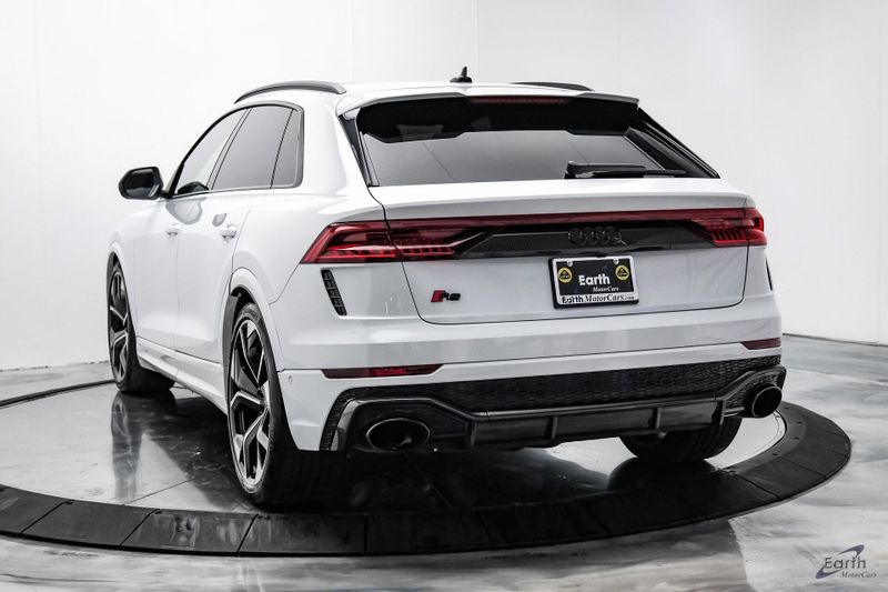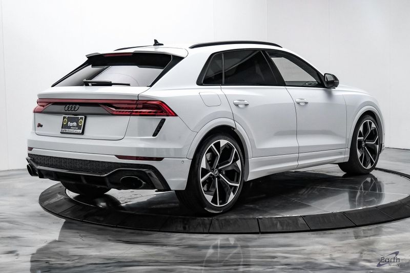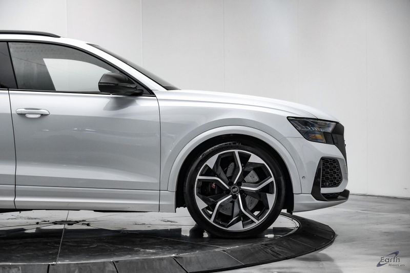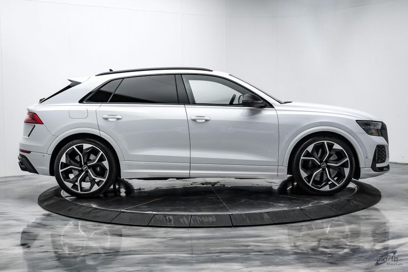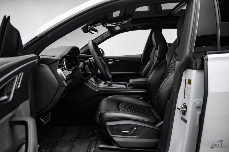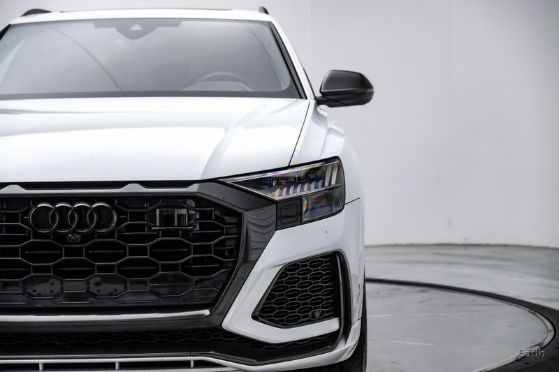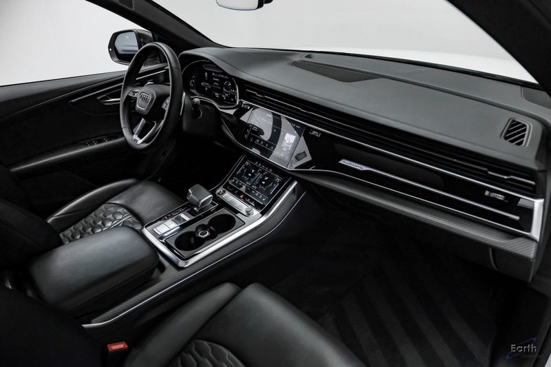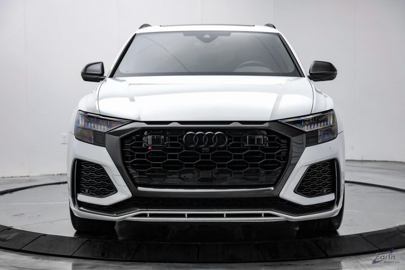 Earth MotorCars is Proud to offer this amazing: 2023 Audi RS Q8 4.0T quattro Carbon Package Black Optic Package Clean CARFAX. 4-Wheel Disc Brakes, ABS brakes, Adaptive suspension, Air Conditioning, Auto High-beam Headlights, Auto-dimming Rear-View mirror, Auto-leveling suspension, Automatic temperature control, Bang & Olufsen Premium Sound System w/3D Sound, Black Mirror Housings, Black Optic Package, Black Roof Rails, Carbon Mask & Front Bumper Inlays, Carbon Mirror Housings, Carbon Optic Package, Carbon Rear Bumper Inlay, Carbon Rear Lighting Strip, Dual front impact airbags, Dual front side impact airbags, Electronic Stability Control, Exterior Parking Camera Rear, Four wheel independent suspension, Front Bucket Seats, Front Center Armrest, Fully automatic headlights, Heated front seats, Illuminated entry, Navigation system: Audi MMI Navigation plus with Touch Response, Panic alarm, Passenger vanity mirror, Power Liftgate, Power moonroof: Panoramic, Radio data system, Rain sensing wipers, Rear air conditioning, Rear window wiper, Security system, Speed-sensing steering, Sport Exhaust System w/Black Tips, Steering wheel memory, Steering wheel mounted audio controls, Tachometer, Telescoping steering wheel, Tilt steering wheel, Traction control, Variably intermittent wipers, Ventilated front seats, Wheels: 23'' Audi Sport 5 Y-Spoke Rotor Design.