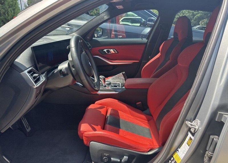 Earth MotorCars is Proud to offer this amazing: 2023 BMW M3 Competition Executive Driving Assist Carbon Fiber Trim M Sport Seats Clean CARFAX. 4-Wheel Disc Brakes, ABS brakes, Active Driving Assistant Pro, Air Conditioning, Apple CarPlay & Android Auto Compatibility, Auto High-beam Headlights, Auto-dimming door mirrors, Automatic temperature control, BMW Head Up Display, Carbon Fiber Trim, Connected Package Pro, Drive Recorder, Driving Assistance Professional Package, Dual front impact airbags, Dual front side impact airbags, Electronic Stability Control, Executive Package, Extended Traffic Jam Assistant, Exterior Parking Camera Rear, Front Bucket Seats, harman/kardon Surround Sound System, Heated Front Seats, Heated Steering Wheel, Icon Adaptive LED Headlights w/Laserlight, Illuminated entry, Lumbar Support, M Compound Brakes w/Red Calipers, M Shadowline Lights, M Sport Seats, Parking Assistance Package, Parking Assistant Plus, Power Front Seats, Power Tailgate, Rain sensing wipers, Rear window defroster, Remote Engine Start, Remote keyless entry, SensaTec Dashboard, SiriusXM Satellite Radio w/1 Year Subscription, Speed control, Speed-sensing steering, Speed-Sensitive Wipers, Spoiler, Steering wheel mounted audio controls, Traction control, Variably intermittent wipers, Wheels: 19''x9.5'' Fr. & 20''x10.5'' Rr M Black, Wireless Device Charging.