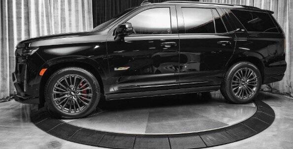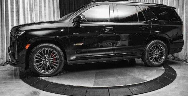 Earth MotorCars is Proud to offer this amazing: 2023 Cadillac Escalade V-Series Super Cruise 22 HUD Night Vision Pano Roof CARFAX One-Owner. AWD, Jet Black Leather, 16.9'' Diagonal OLED Infotainment Screen, 4-Way Power Driver Lumbar Seat Adjuster, 4-Wheel Disc Brakes, 8-Way Power Driver Seat Adjuster, 8-Way Power Front Passenger Seat Adjuster, ABS brakes, Active Noise Cancellation, Adaptive Cruise Control, Air Conditioning, Air Ride Adaptive Suspension, AKG Studio Reference 36-Speaker Audio System, Auto High-beam Headlights, Auto tilt-away steering wheel, Auto-dimming door mirrors, Automatic Seat Belt Tightening, Automatic temperature control, Body-Color Door Handles, Brake assist, Bumpers: body-color, Door auto-latch, Door Lock & Latch Shields, Dual front impact airbags, Dual front side impact airbags, Electronic Limited-Slip Differential, Enhanced Automatic Emergency Braking, Enhanced Automatic Parking Assist, Exterior Parking Camera Rear, Floor Console w/Covered Storage, Front Auxiliary 12-volt Power Outlet, Front Bucket Seats, Front Center Armrest w/Storage, Full Semi-Aniline Leather Seat Trim, Glass Breakage Sensor, Heads-Up Display, Heated & Ventilated Driver & Front Passenger Seats, Hitch Guidance w/Hitch View, Illuminated entry, Illuminating Front & Rear Sill Plates, Integrated Trailer Brake Controller, Night vision lights, Outside temperature display, Panic alarm, Platinum Interior Trim, Power Liftgate, Power Lumbar Massage Driver Seat, Power Lumbar Massage Front Passenger Seat, Power Panoramic Tilt-Sliding Sunroof, Power-Retractable Assist Steps, Preferred Equipment Group 1SD, Rain sensing wipers, Rear air conditioning, Rear Camera Mirror, Rear Camera Mirror Washer, Rear Cross Traffic Alert, Rear Seat Entertainment System, Rear window defroster, Rear window wiper, Reconfigurable Full-Color Head-Up Display, Reverse Automatic Braking, Security system, Smart Trailer Integration Indicator, Soft Closing Front & Rear Doors, Super Cruise, Theft-Deterrent Alarm System, Touring Package, Traction control, Trailer Side Blind Zone Alert, Tri-Zone A/C, Vehicle Inclination Sensor, Vehicle Interior Movement Sensor, Wheels: 22'' 18-Spoke Alloy, Wireless Apple CarPlay/Wireless Android Auto.