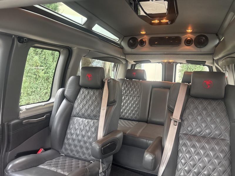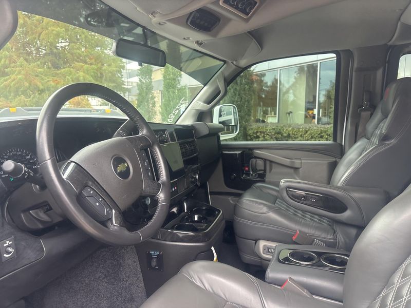 Earth MotorCars is Proud to offer this amazing: 2023 Chevrolet Express 2500 Explorer High Top CARFAX One-Owner. SPORT ROOF WITH SKYLIGHTS, LARGE FLAT SCREEN TV, DVD & WIRELESS HEADPHONE, INTEGRATION LED LIGHTING IN ROOF, LEATHER DIMOND STITCH SEATS, 20'' WHEELS, CONVENIENCE PACKAGE, CARGO CREW VAN PACKAGE, DEEP TINTED GLASS, HD TRAILERING EQUIPMENT, 150 Amp Alternator, 20-Inch Explorer Limited SE Wheels, 4-Wheel Disc Brakes, 6-Way Power Driver Seat Adjuster, 6-Way Power Front Passenger Seat Adjuster, ABS brakes, Air Conditioning, Bluetooth For Phone, Chrome Appearance Package, Chrome Grille, Dual front impact airbags, Dual front side impact airbags, Electronic Stability Control, Exterior Parking Camera Rear, Front & Rear Chrome Bumpers w/Step-Pad, Front Bucket Seats, Fully automatic headlights, Heated door mirrors, Heavy-Duty Rear Locking Differential, Heavy-Duty Trailering Equipment, Leather-Wrapped Steering Wheel, Low tire pressure warning, Power steering, Power windows, Rear Air, Rear Auxiliary Heater, Rear Park Assist, Remote Vehicle Starter System, Side Blind Zone Alert, Steering Wheel Mounted Audio Controls, Swing-Out Rear Side Door Window Glass, Traction control.