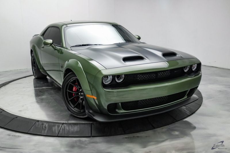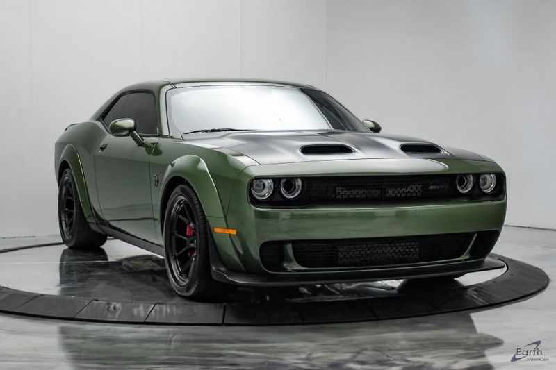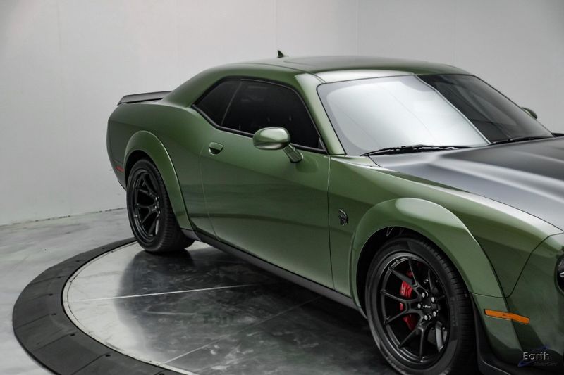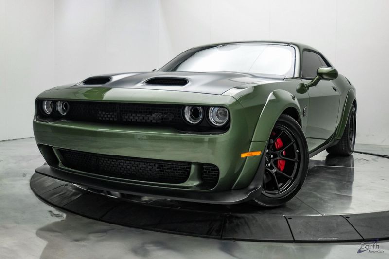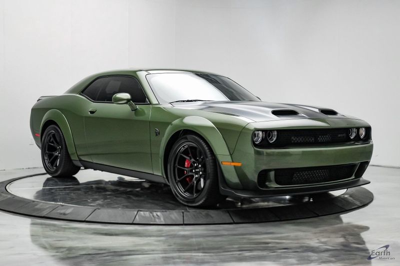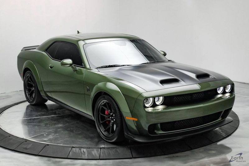 Earth MotorCars is Proud to offer this amazing: 2023 Dodge Challenger SRT Hellcat Widebody Jailbreak 6 SPEED MANUAL CARFAX One-Owner. Clean CARFAX. 18 Speakers Premium Audio System, 4-Wheel Disc Brakes, 6 Speakers, ABS brakes, Air Conditioning, Alloy wheels, Anti-whiplash front head restraints, Black Brake Calipers, Black Exterior Badging, Black Seat Belts, Blind Spot & Cross Path Detection, Body Color Exterior Mirrors, Bumpers: body-color, Compass, Delay-off headlights, Driver Convenience Group, Driver vanity mirror, Electronic Stability Control, Emergency communication system: SiriusXM Guardian, Exterior Mirrors w/Heating Element, For Details, Visit DriveUconnect.com, Garage door transmitter, Google Android Auto, GPS Antenna Input, GPS Navigation, harman/kardon Audio Group w/Subwoofer, harman/kardon GreenEdge Amp, Heated door mirrors, Heated Front Seats, Heated front seats, Heated Steering Wheel, Hellcat Logo Laguna Leather Seat, High-Intensity Discharge Headlamps, Illuminated entry, Jailbreak IP Badge, Laguna Leather Package (DISC), Low tire pressure warning, Painted Black Satin Hood, ParkView Rear Back-Up Camera, Power Multi-Function Foldaway Mirrors, Power Sunroof, Power Tilt/Telescope Steering Column, Premium Laguna Door Trim Panel, Premium-Stitched Dash Panel, Quick Order Package 26C Hellcat Widebody Jailbreak, Radio data system, Radio: Uconnect 4C w/8.4'' Display, Radio/Driver Seat/Mirrors Memory, Real Carbon Fiber Interior Accents, Remote keyless entry, Security system, SiriusXM Radio Service, Spoiler, SRT Grille Badge, SRT Hellcat Logo Houndstooth Seats, SRT Spoiler Badge, Suede Headliner, Surround Sound, Telescoping steering wheel, Traction control, Tri-Zone A/C, Trunk Mounted Subwoofer, USB Host Flip, Variably intermittent wipers, Ventilated Front Seats, Wheels: 20'' x 11.0'' Lightweight Low?Gloss Black Wheels, Widebody Competition Suspension, Widebody Fender Flares.