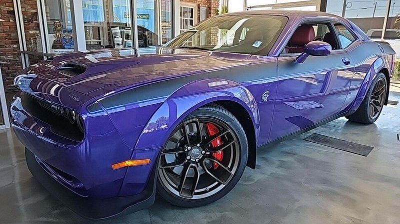 Earth MotorCars is Proud to offer this amazing: 2023 Dodge Challenger SRT Hellcat Widebody Laguna Leather HK Sound 6-Speed Manual! CARFAX One-Owner. Clean CARFAX. Plum Crazy Exterior Paint, Black / Demonic Red Seats, 1-Yr SiriusXM Guardian Trial, 18 Speakers Premium Audio System, 4-Wheel Disc Brakes, 4G LTE Wi-Fi Hot Spot, 5-Year SiriusXM Traffic Service, 5-Year SiriusXM Travel Link Service, 8.4'' Touchscreen Display, ABS brakes, Air Conditioning, All Radio Equipped Vehicles, All VP4R Radios, Apple CarPlay, Automatic temperature control, Black Seat Belts, Blind Spot & Cross Path Detection, Body Color Exterior Mirrors, Compass Gauge, Driver Convenience Group, Dual front impact airbags, Dual front side impact airbags, Exterior Mirrors w/Heating Element, For Details, Visit DriveUconnect.com, For More Info, Call 800-643-2112, Front Bucket Seats, Front Center Armrest, Google Android Auto, GPS Antenna Input, GPS Navigation, harman/kardon Audio Group w/Subwoofer, harman/kardon GreenEdge Amp, HD Radio, Heated Front Seats, Heated Steering Wheel, Hellcat Logo Laguna Leather Seat, High-Intensity Discharge Headlamps, Illuminated entry, Integrated Center Stack Radio, Integrated Voice Command w/Bluetooth, Jailbreak IP Badge, Laguna Leather Package (DISC), Media Hub (2 USB, AUX), ParkView Rear Back-Up Camera, Power Multi-Function Foldaway Mirrors, Power Tilt/Telescope Steering Column, Premium Laguna Door Trim Panel, Premium-Stitched Dash Panel, Quick Order Package 25C Hellcat Widebody Jailbreak, Radio: Uconnect 4C Nav w/8.4'' Display, Radio/Driver Seat/Mirrors Memory, Rear window defroster, Red LED Alcantara Steering Wheel, Shark Fin Antenna, SiriusXM Radio Service, SiriusXM Satellite Radio, SiriusXM Traffic Plus, SiriusXM Travel Link, Steering wheel mounted audio controls, Surround Sound, Trunk Mounted Subwoofer, USB Host Flip, Variably intermittent wipers, Ventilated Front Seats, Wheels: 20'' x 11.0'' Devil's Rim Granite, Widebody Competition Suspension, Widebody Fender Flares.