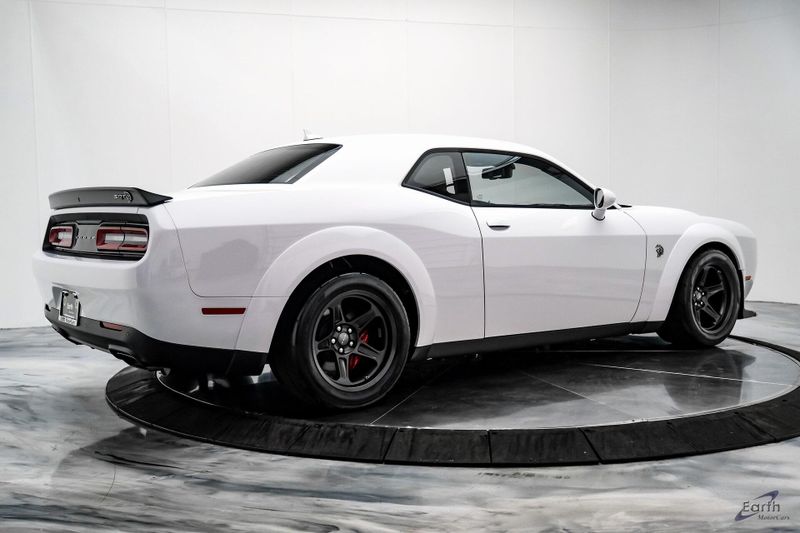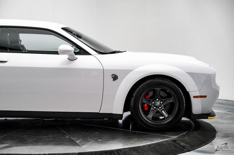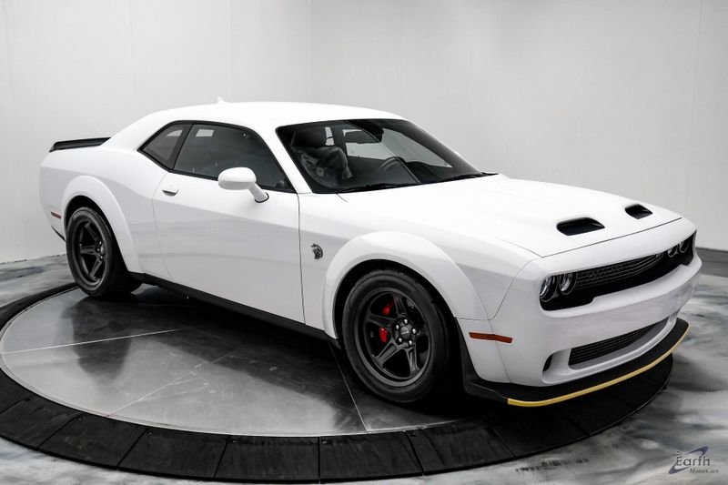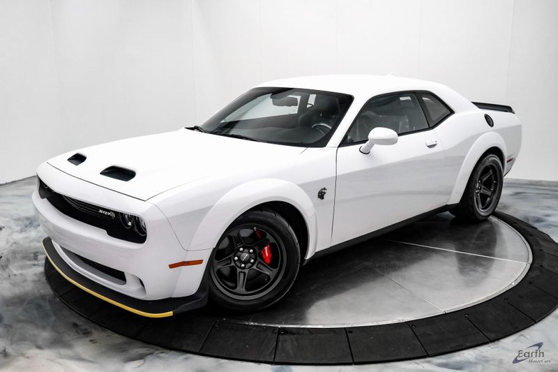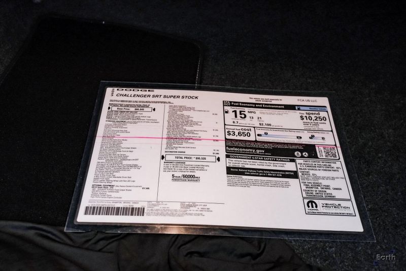 Earth MotorCars is Proud to offer this amazing: 2023 Dodge Challenger SRT Super Stock Last Call Clean CARFAX. 1 Year NMCA/NHRA Membership, 220 MPH Primary Speedometer, 3.09 Rear Axle Ratio, 4-Wheel Disc Brakes, 6 Speakers, ABS brakes, Adaptive suspension, Air Conditioning, AM/FM radio: SiriusXM, Automatic temperature control, Black Brake Calipers, Blind Spot & Cross Path Detection, Body Color Exterior Mirrors, Brembo 4-Piston Fixed Caliper Brakes, Bumpers: body-color, Dark Engine Turn Interior Accents, Delay-off headlights, Driver Convenience Group, Electronic Stability Control, Exterior Mirrors w/Heating Element, Four wheel independent suspension, Front Bucket Seats, Garage door transmitter, GPS Antenna Input, Heated door mirrors, Heated Front Seats, Heated Steering Wheel, Hellcat Logo Laguna Leather Seat, Hellcat Logo Nappa/Alcantara Seat, High Performance Engine Controller, High-Intensity Discharge Headlamps, Laguna Leather Package (DISC), Low tire pressure warning, ParkView Rear Back-Up Camera, Plus Package, Power Multi-Function Foldaway Mirrors, Power Tilt/Telescope Steering Column, Premium Laguna Door Trim Panel, Premium-Stitched Dash Panel, Quick Order Package 27S SRT Super Stock (DISC), Radio: Uconnect 4C w/8.4'' Display, Radio/Driver Seat/Mirrors Memory, Rear Seat Belt Delete, Redeye Badging, Remote keyless entry, SiriusXM Radio Service, Speed control, Spoiler, SRT Power Chiller, Suede Door Trim Panel w/Map Pocket, Super Stock Suspension, Variably intermittent wipers, Ventilated Front Seats, Wheels: 18'' x 11.0'' Aluminum (DISC), Wheels: 20'' x 9.5'' Low Gloss Black Drag, Widebody Fender Flares.