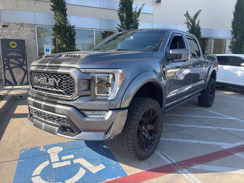 Earth MotorCars is Proud to offer this amazing: 2023 Ford F-150 Lariat Sport Package Shelby 5.0L Super Snake 755HP CARFAX One-Owner. CLEAN AUTOCHECK REPORT, 5.0L Coyote V8 with Whipple Supercharger, Ford Racing Blue powder-coated Whipple supercharger, 775 HP, 10-speed automatic, Oversized carbon fiber intake tube, high-flow air filter, and SHELBY tuned BORLA performance exhaust with black tips, Performance aluminum heat exchanger, 22-inch Shelby-engraved alloy wheels, Dual-intake ''Ram Air'' Shelby Super Snake hood, Full body rally stripes, honeycomb racing grille, fender flares, and functional fender vents, Painted lockable hard tonneau cover with liner, Custom two-tone leather seats with Shelby snake logos, Carbon fiber interior package, Billet racing sport pedals, 4WD, 2nd Row Heated Seats, 360 Degree Camera, 4-Wheel Disc Brakes, ABS brakes, Accent-Color Angular Step Bars, Air Conditioning, Automatic temperature control, Body-Color Front & Rear Bumpers, Box Side Decals, Chrome Single-Tip Exhaust, Class IV Trailer Hitch Receiver, Compass, Connected Built-In Navigation, Dark 2-Bar & 1 Minor Bar Style Grille, Dual front impact airbags, Dual front side impact airbags, Electronic Locking w/3.73 Axle Ratio, Electronic Stability Control, Equipment Group 502A High, Evasive Steering Assist, Extended Range 36 Gallon Fuel Tank, Ford Co-Pilot360 Assist 2.0, Fully automatic headlights, GVWR: 7,050 lbs Payload Package, Heated door mirrors, Illuminated entry, Integrated Trailer Brake Controller, Intelligent Adaptive Cruise Control w/Stop & Go, Intersection Assist, Lariat Sport Appearance Package, LED Projector w/Dynamic Bending Headlamps, Low tire pressure warning, Power Tilt/Telescoping Steering Column w/Memory, Radio: B&O Unleashed Sound System by Bang & Olufsen, Rain-Sensing Wipers, Remote keyless entry, Speed control, Speed Sign Recognition, Steering wheel mounted audio controls, Traction control, Trailer Tow Package, Twin Panel Moonroof, Wheel Well Liner, Wheels: 20'' Chrome-Like PVD, Wireless Charging Pad.
