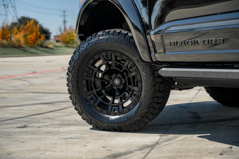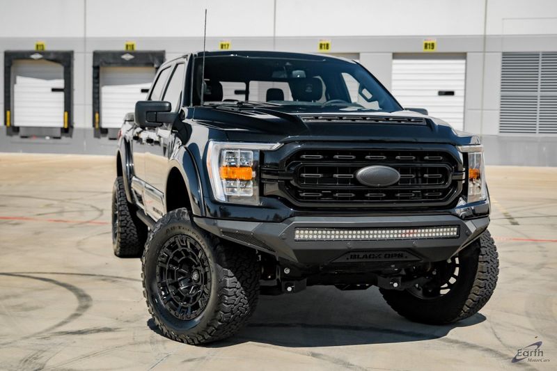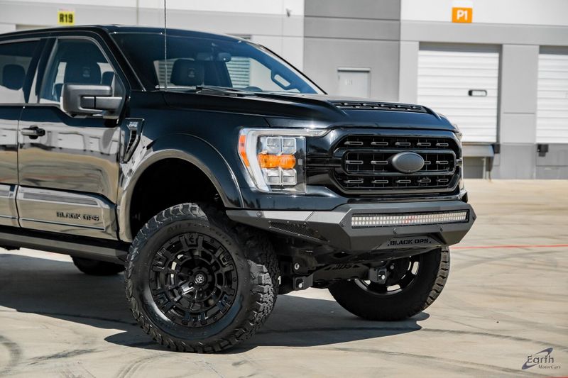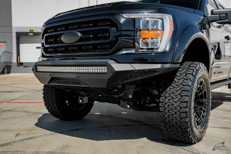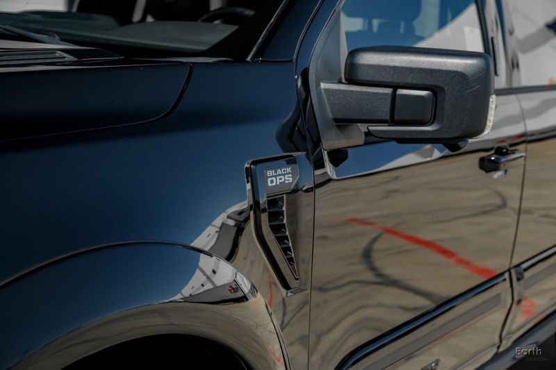 Earth MotorCars is Proud to offer this amazing: 2023 Ford F-150 4x4 Black Ops Tons Of Options! 34-Miles! 3.5L V6 ECOBOOST, 360-DEGREE CAMERA PACKAGE, Exterior Features FOX 2.0 Performance Series Tuned Shocks 20'' Stealth Black Tuscany Black Ops Wheels BFGoodrich K02 325/60R20 Tires Tuscany Suspension Lift by BDS Front End Alignment Tire Sensors Recalibrated Speedometer Recalibrated by Tuscany XL Power Boards with Rock Guards and Lights Black Powder Coated Dual Tip Performance Exhaust Painted Body Color Door Cladding with Black Ops Logos Painted Body Color Functional Front Fender Vents Painted Body Color Fender Flares Painted Body Color Rear Bumper Caps Black Ops Replacement Front Bumper with 40'' and 2 6'' LED Lights (LED Lights for Off Road Use Only) Painted Replacement Grille Body Color Black Ford Ovals Black Factory Badging (No Exterier Chrome) Painted Body Color Ram Air Hood (Full Replacement) Painted Body Color Tonneau Cover with Carpet Liner Carpet Bed Rug Bedliner Black Ops by Tuscany 3D Exterior Badging, Interior Features Factory Leather Seats with Black Ops American Flag Embroidered Patches in Headrests (N/A for Chassis with Enhanced Sound System) Black Ops Embroidered Carpet Floor Mats Carbon Fiber Trim Limited Edition Numbered Plate Deep Tinted Windows, 4WD, 10-Way Power Driver & Passenger Seats, 2-Bar Style Grille w/Chrome 2 Minor Bars, 4x4 FX4 Off-Road Bodyside Decal, 8'' Productivity Screen in Instrument Cluster, ABS brakes, Accent-Color Step Bars, Air Conditioning, Auto High-beam Headlights, Auto-Dimming Rear-View Mirror, Black 2-Bar Style Grille w/Black Surround/Accents, Body-Color Door & Tailgate Handles, Body-Color Front & Rear Bumpers, Box Side Decals, Bright Polished Step Bars, Chrome Door & Tailgate Handles w/Body-Color Bezel, Chrome Single-Tip Exhaust, Class IV Trailer Hitch Receiver, Compass, Dual front impact airbags, Dual front side impact airbags, Dual Zone Electronic Automatic Temperature Control, Electronic Locking w/3.55 Axle Ratio, Electronic Stability Control, Equipment Group 302A High, Exterior Parking Camera Rear, FX4 Off-Road Package, Heated door mirrors, Heated Front Seats, Hill Descent Control, Illuminated entry, Integrated Trailer Brake Controller, Intelligent Access w/Push Button Start, LED Reflector Headlamps, LED Sideview Mirror Spotlights, Low tire pressure warning, Monotube Rear Shocks, Off-Road Tuned Front Shock Absorbers, Onboard 400W Outlet, Power Glass Heated Sideview Mirrors, Power-Sliding Rear Window, Radio: B&O Sound System by Bang & Olufsen, Rear Under-Seat Storage, Remote keyless entry, Remote Start System w/Remote Tailgate Release, Rock Crawl Mode, SecuriCode Drivers Side Keyless-Entry Keypad, SYNC 4 w/Enhanced Voice Recognition, Traction control, Trailer Tow Package, Unique Sport Cloth 40/Console/40 Front-Seats, Wheel Well Liner, Wheels: 18'' 6-Spoke Machined Aluminum, Wheels: 18'' Chrome-Like PVD, Wrapped Steering Wheel, XLT Chrome Appearance Package, XLT Sport Appearance Package, Zone Lighting.