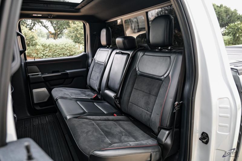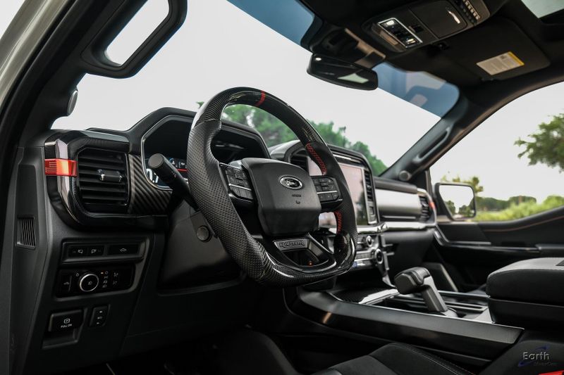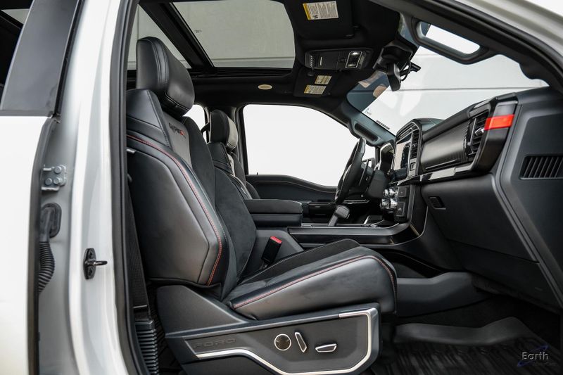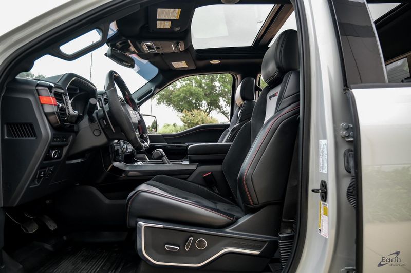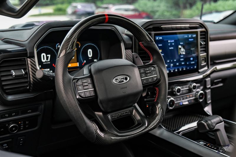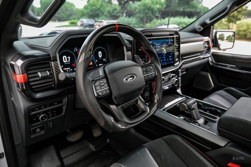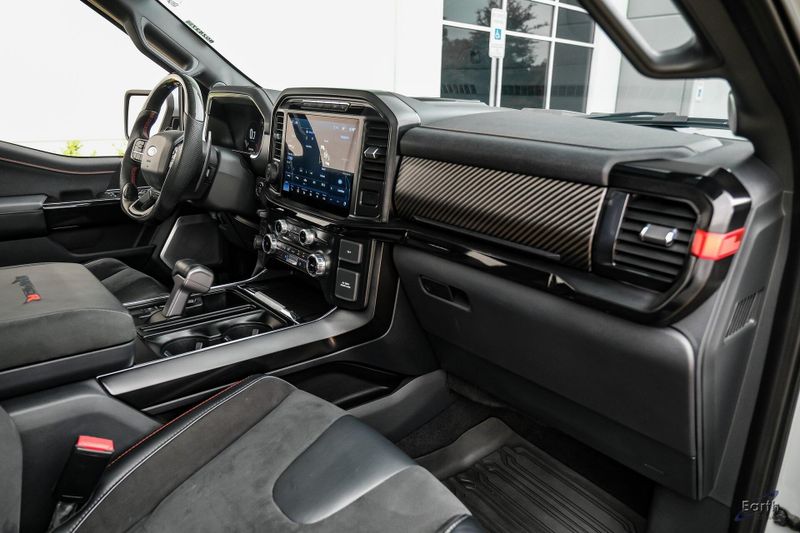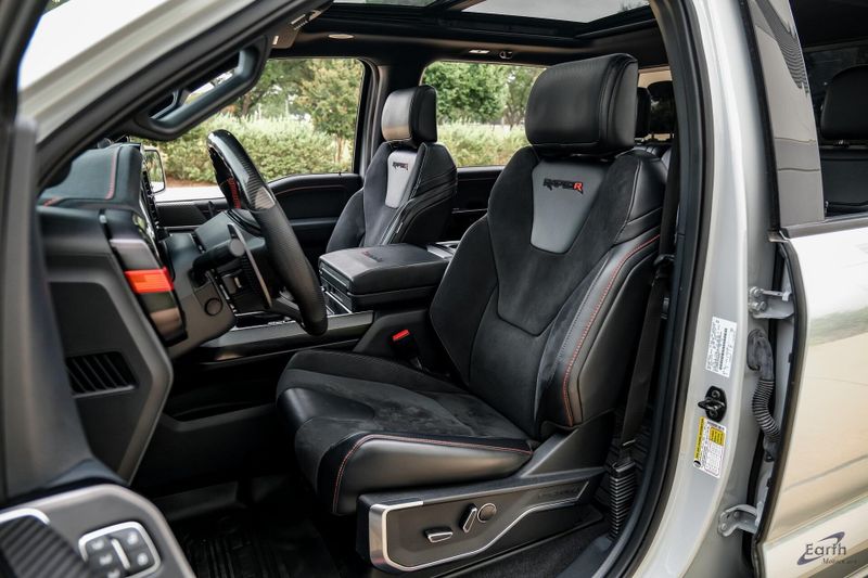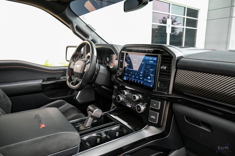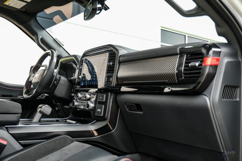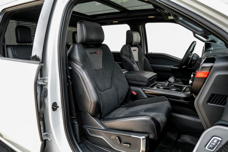 Earth MotorCars is Proud to offer this amazing: 2023 Ford F-150 Raptor R Twin Panel Moonroof & Power Tailgate Clean CARFAX. 4WD, Adaptive suspension, Adjustable pedals, Air Conditioning, Auto High-beam Headlights, Auto-dimming door mirrors, Auto-dimming Rear-View mirror, Automatic temperature control, Black Exterior Accents, Brake assist, Bumpers: body-color, Carbon Fiber Interior Appliques, Code Orange Stitching Doors & Instrument Panel, Code Orange Tow Hooks, Driver vanity mirror, Dual front impact airbags, Dual front side impact airbags, Electronic Locking w/4.10 Axle Ratio, Engine Block Heater, Equipment Group 802A Raptor R, Exterior Parking Camera Rear, Front Bucket Seats, Front Center Armrest, Fully automatic headlights, GVWR: 7,450 lbs Payload Package, Heated front seats, Heated rear seats, Illuminated entry, Interior Code Orange Raptor R Badging, Lane Departure Warning System, Outside temperature display, Panic alarm, Partitioned Lockable Fold-Flat Storage, Passenger vanity mirror, Power Tailgate, Radio: B&O Unleashed Sound System by Bang & Olufsen, Rain sensing wipers, Raptor R Badge Tailgate Applique, Raptor R Exterior Graphics, Rear window defroster, Recaro Black w/Orange Stitching Front Seats, Remote keyless entry, Security system, Speed control, Speed-sensing steering, Steering Wheel Heat Removal (DISC), Steering wheel mounted audio controls, SYNC 4 w/Enhanced Voice Recognition, Tachometer, Telescoping steering wheel, Traction control, Trip computer, Twin Panel Moonroof, Unique Hood Vent w/R Badge, Unique Raptor R Grille w/R Badge, Variably intermittent wipers, Wheels: Unique 17'' Forged Aluminum Bead-Lock Capable.