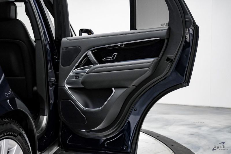 Earth MotorCars is Proud to offer this amazing: 2023 Land Rover Range Rover SE Gloss Grand Black Veneer Black Contrast Roof Heated Steering Wheel, Ebony/Ebony w/Perforated Windsor Leather Seat Trim, 20-Way Heated/Ventilated Electric Fr Bucket Seats, 4-Wheel Disc Brakes, ABS brakes, Adaptive suspension, Air Conditioning, Auto High-beam Headlights, Auto-dimming door mirrors, Auto-dimming Rear-View mirror, Auto-leveling suspension, Automatic temperature control, Black Brake Calipers, Black Contrast Roof, Brake assist, Bumpers: body-color, Delay-off headlights, Dual front impact airbags, Dual front side impact airbags, Ebony Morzine Headlining, Electronic Stability Control, Exterior Parking Camera Rear, Four wheel independent suspension, Front Bucket Seats, Front Center Armrest w/Storage, Fully automatic headlights, Gloss Grand Black Veneer Trim Finisher, Head restraints memory, Illuminated entry, Low tire pressure warning, Panic alarm, Perforated Windsor Leather Seat Trim, Power moonroof, Premium audio system: Meridian, Radio: Meridian Sound System, Rain sensing wipers, Rear air conditioning, Rear window wiper, Remote keyless entry, Security system, Speed control, Speed-sensing steering, Speed-Sensitive Wipers, Steering wheel mounted audio controls, Tachometer, Telescoping steering wheel, Tilt steering wheel, Traction control, Trip computer, Turn signal indicator mirrors, Variably intermittent wipers, Weather band radio, Wheel Protection Pack, Wheels: 21''.
