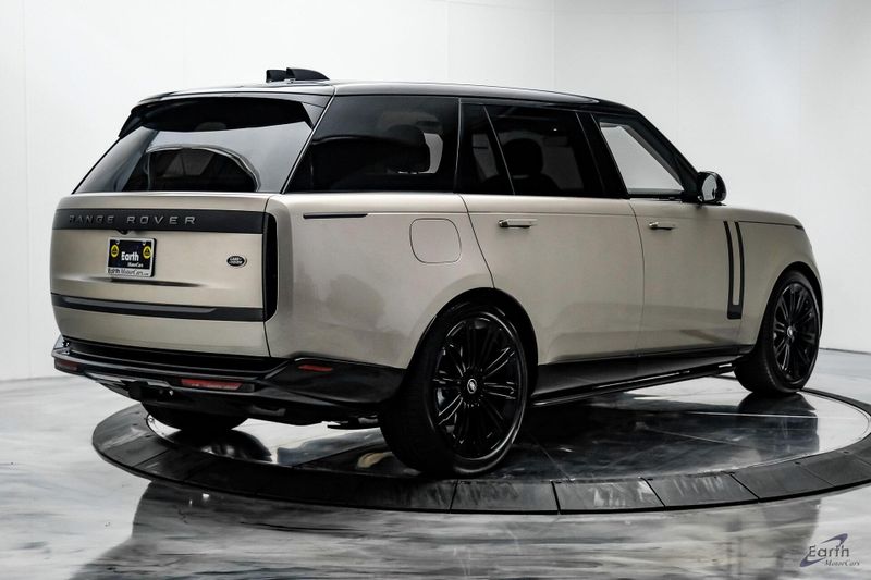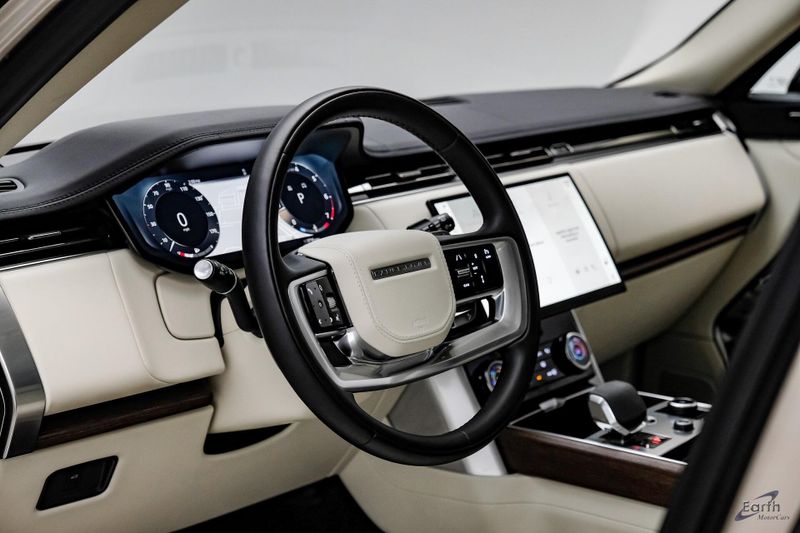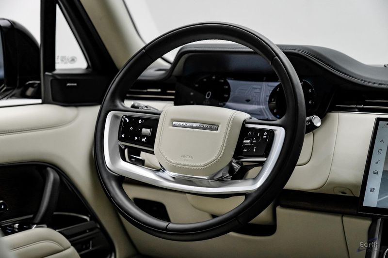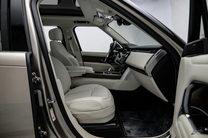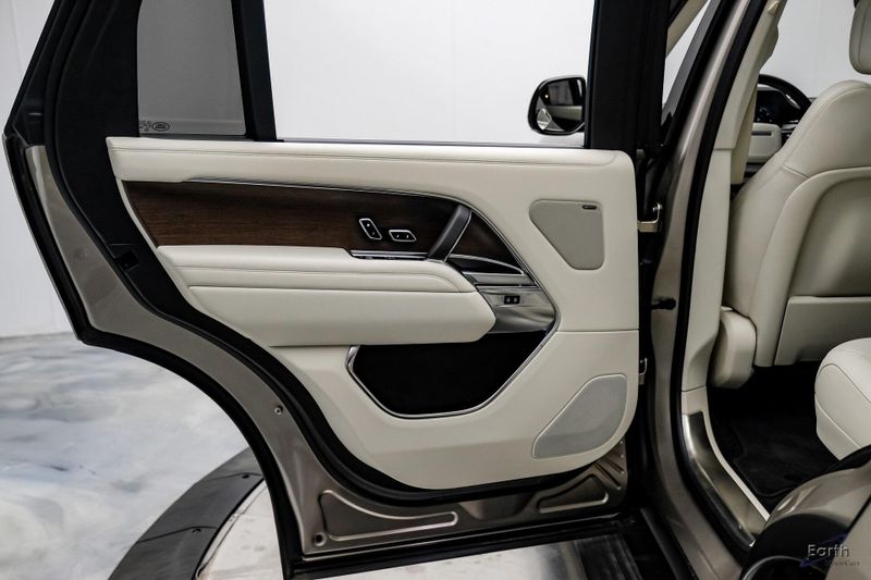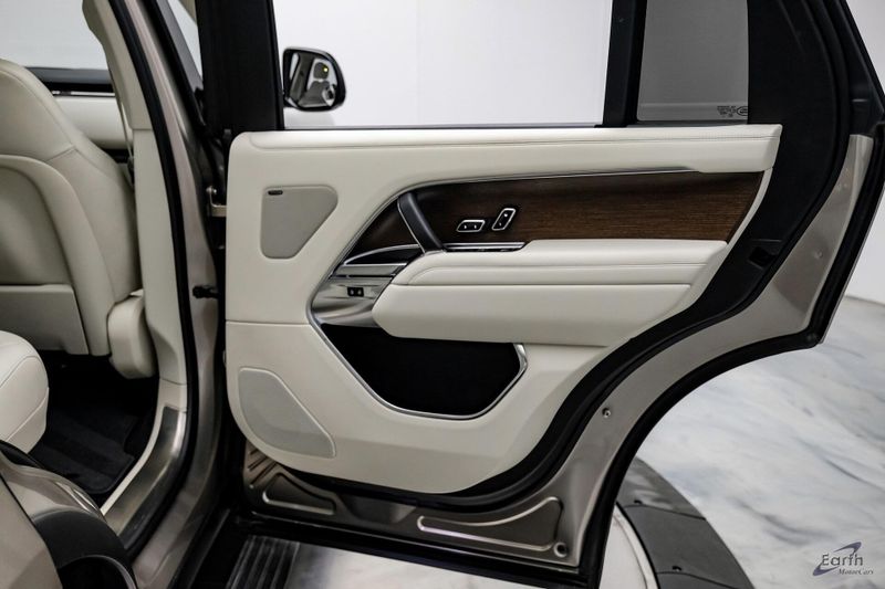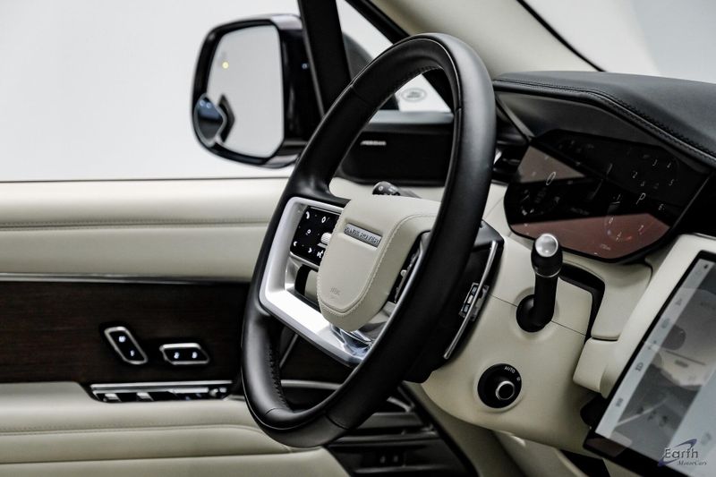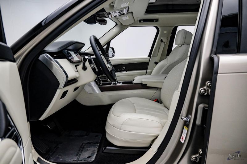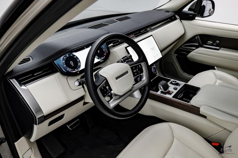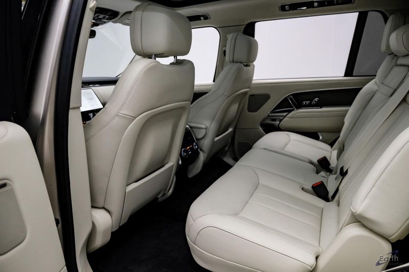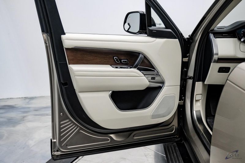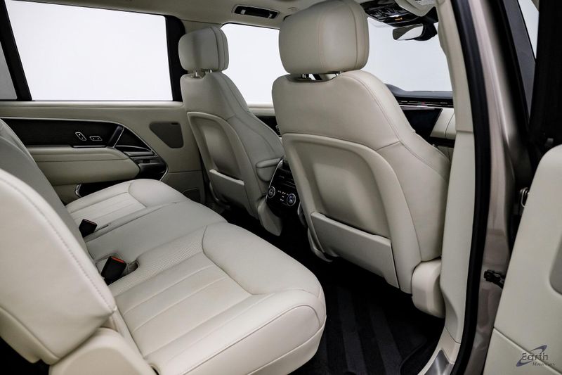 Earth MotorCars is Proud to offer this amazing: 2023 Land Rover Range Rover SE LWB 7 Passenger Clean CARFAX. Deployable Side Steps, Perlino/Perlino w/Perforated Semi-Aniline Leather Seat Trim, 20-Way Heated Electric Front Bucket Seats, 3.6 Axle Ratio, 3rd row seats: split-bench, 4-Wheel Disc Brakes, Adaptive suspension, Anti-whiplash front head restraints, Auto High-beam Headlights, Auto tilt-away steering wheel, Auto-dimming door mirrors, Bumpers: body-color, Delay-off headlights, Driver door bin, Driver vanity mirror, Driver's Seat Mounted Armrest, Electronic Stability Control, Exterior Parking Camera Rear, Front Bucket Seats, Front fog lights, Front reading lights, Garage door transmitter: HomeLink, Genuine wood console insert, Head restraints memory, Heated front seats, Heated rear seats, Leather Shift Knob, Memory seat, Navigation system: Pivi Pro Connected Navigation, Outside temperature display, Overhead console, Passenger door bin, Passenger seat mounted armrest, Power adjustable front head restraints, Power door mirrors, Power moonroof, Power steering, Power windows, Rear fog lights, Security system, Shadow Exterior Pack, Speed control, Steering wheel mounted A/C controls, Telescoping steering wheel, Tilt steering wheel, Turn signal indicator mirrors, Variably intermittent wipers, Wheels: 23'' Gloss Black (Style 1075).