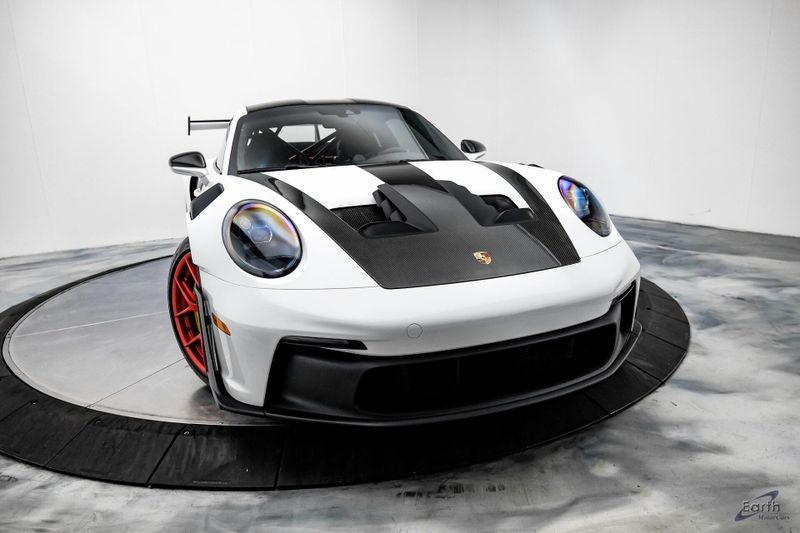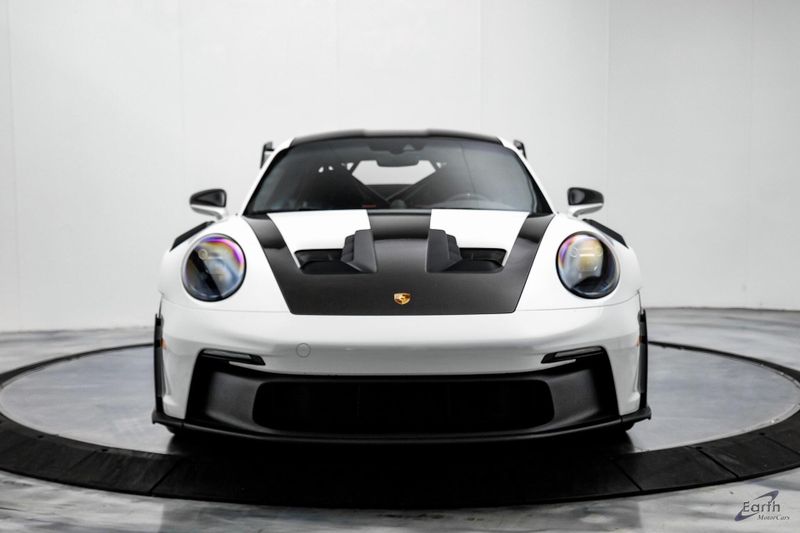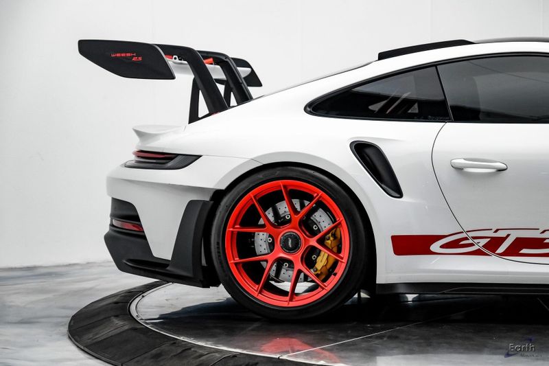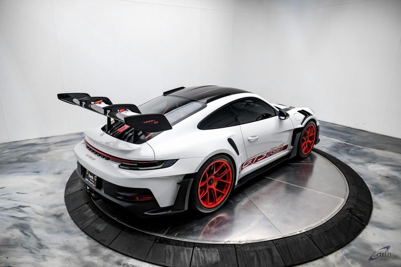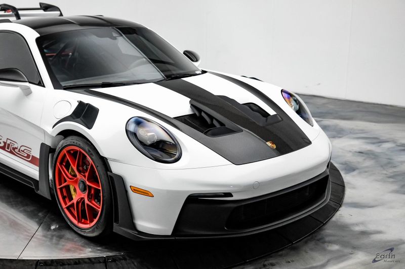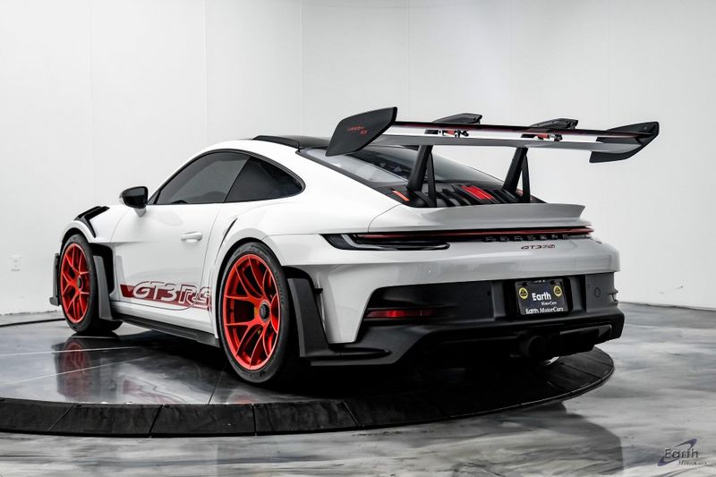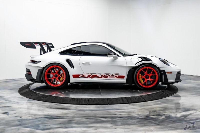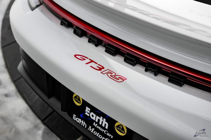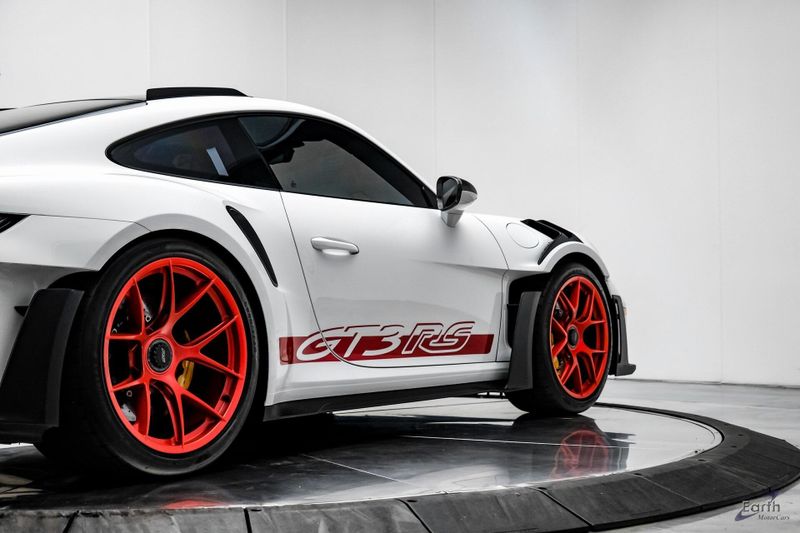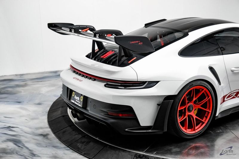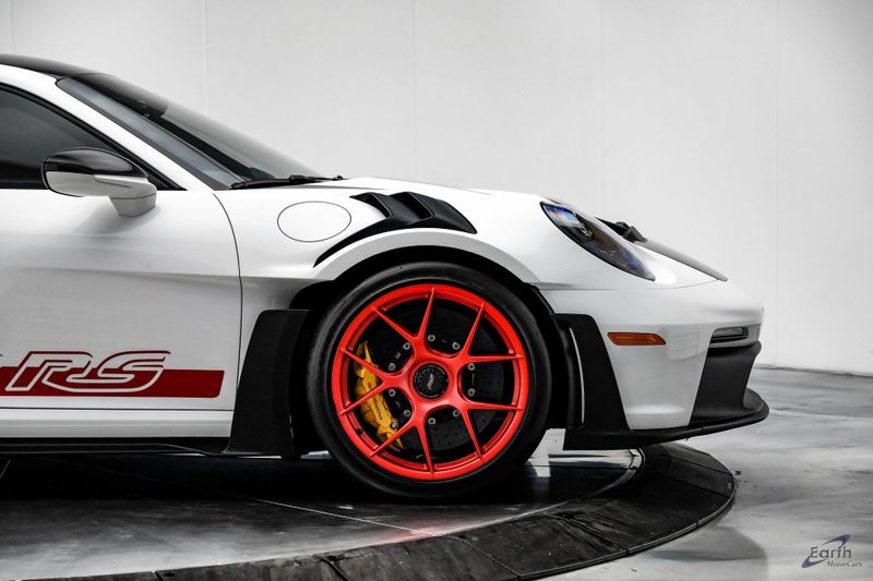 Earth MotorCars is Proud to offer this amazing: 2023 Porsche 911 GT3 RS WEISSACH -Carbon Buckets - PCCB Clean CARFAX. Park Assist, 4-Wheel Disc Brakes, 8 Speakers, Adaptive suspension, Air Conditioning, Alloy wheels, Automatic temperature control, BOSE Surround Sound System, Brake assist, Bumpers: body-color, Chrono Stopwatch Dial in Guards Red, Driver door bin, Driver vanity mirror, Dual front side impact airbags, Exterior Mirror Upper Housing in Carbon Fiber, Exterior Parking Camera Rear, Fire Extinguisher, Front anti-roll bar, Front Axle Lift System, Front Bucket Seats, Front Center Armrest, Front reading lights, Full Bucket Seats, Garage door transmitter: HomeLink, Heated door mirrors, Leather/Race-Tex Seat Trim, LED Headlights in Black w/PDLS, Navigation system: Porsche Communication Management (PCM), Outside temperature display, Overhead console, Porsche Ceramic Composite Brakes (PCCB) in Yellow, Porsche Communication Management, Power door mirrors, Power passenger seat, Power steering, Rear fog lights, Seat Belts in Guards Red, Security system, Smoking Package, Speed control, Spoiler, Steering wheel mounted audio controls, Tachometer, Tilt steering wheel, Traction control, Weissach Package, Wheels: 20'' Fr/21'' Rr GT3 RS Forged Ltwt Magnesium.