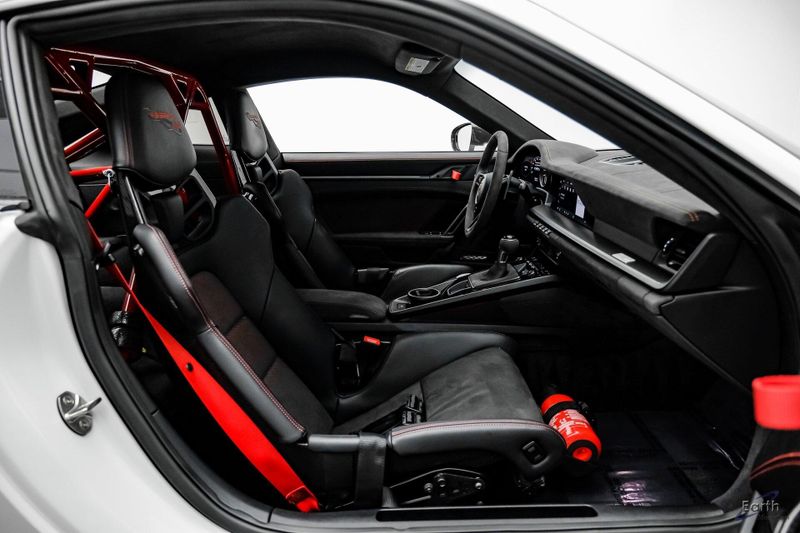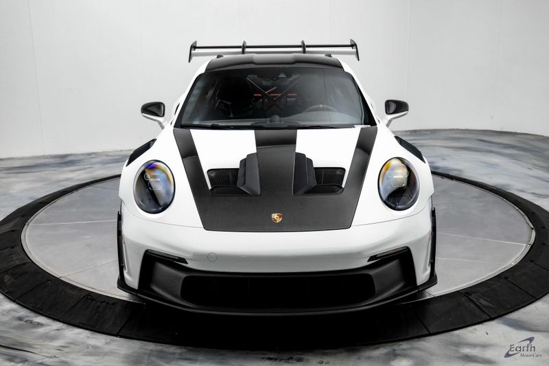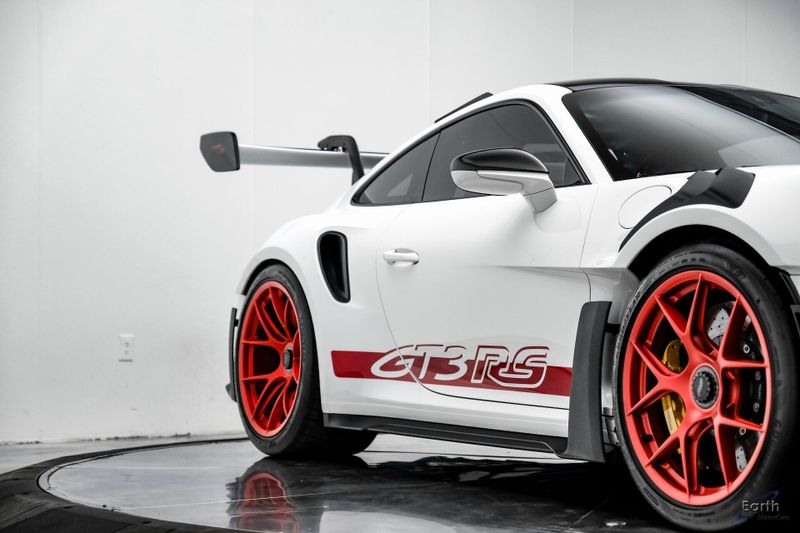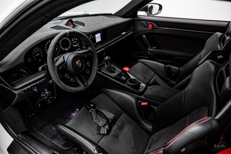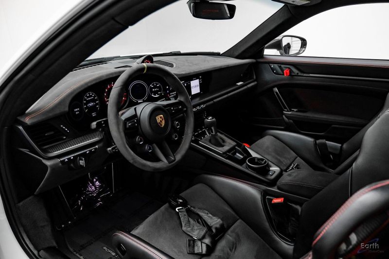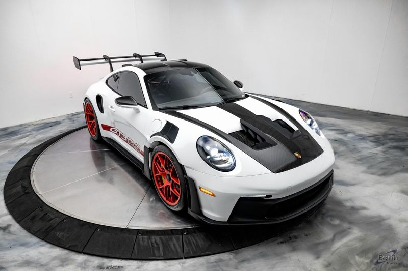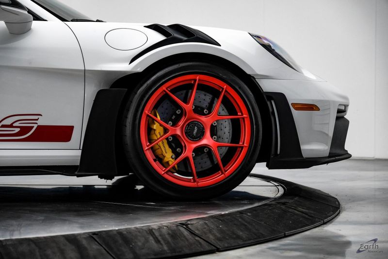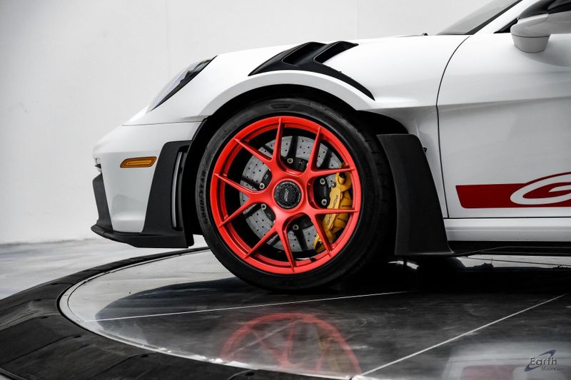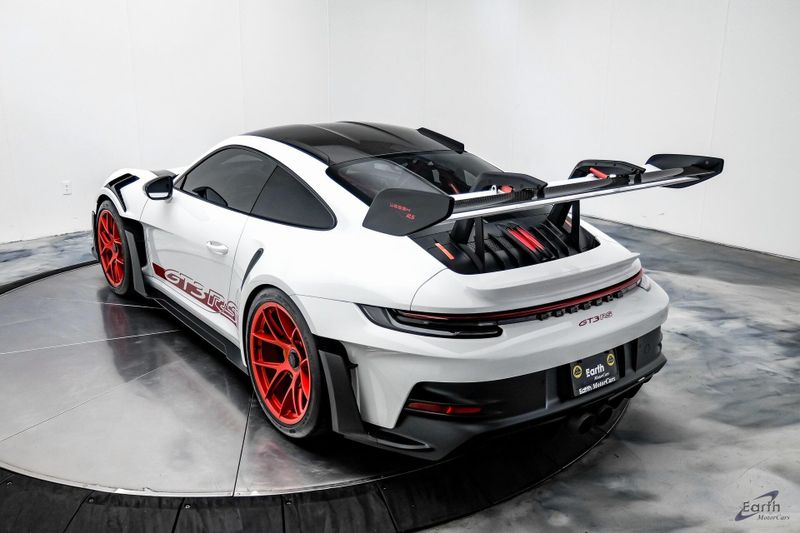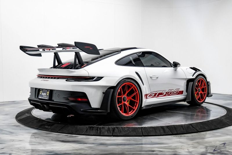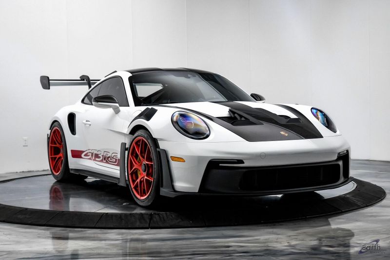 Earth MotorCars is Proud to offer this amazing: 2023 Porsche 911 GT3 RS WEISSACH -Carbon Buckets - PCCB Clean CARFAX. Park Assist, 4-Wheel Disc Brakes, 8 Speakers, Adaptive suspension, Air Conditioning, Alloy wheels, Automatic temperature control, BOSE Surround Sound System, Brake assist, Bumpers: body-color, Chrono Stopwatch Dial in Guards Red, Driver door bin, Driver vanity mirror, Dual front side impact airbags, Exterior Mirror Upper Housing in Carbon Fiber, Exterior Parking Camera Rear, Fire Extinguisher, Front anti-roll bar, Front Axle Lift System, Front Bucket Seats, Front Center Armrest, Front reading lights, Full Bucket Seats, Garage door transmitter: HomeLink, Heated door mirrors, Leather/Race-Tex Seat Trim, LED Headlights in Black w/PDLS, Navigation system: Porsche Communication Management (PCM), Outside temperature display, Overhead console, Porsche Ceramic Composite Brakes (PCCB) in Yellow, Porsche Communication Management, Power door mirrors, Power passenger seat, Power steering, Rear fog lights, Seat Belts in Guards Red, Security system, Smoking Package, Speed control, Spoiler, Steering wheel mounted audio controls, Tachometer, Tilt steering wheel, Traction control, Weissach Package, Wheels: 20'' Fr/21'' Rr GT3 RS Forged Ltwt Magnesium.